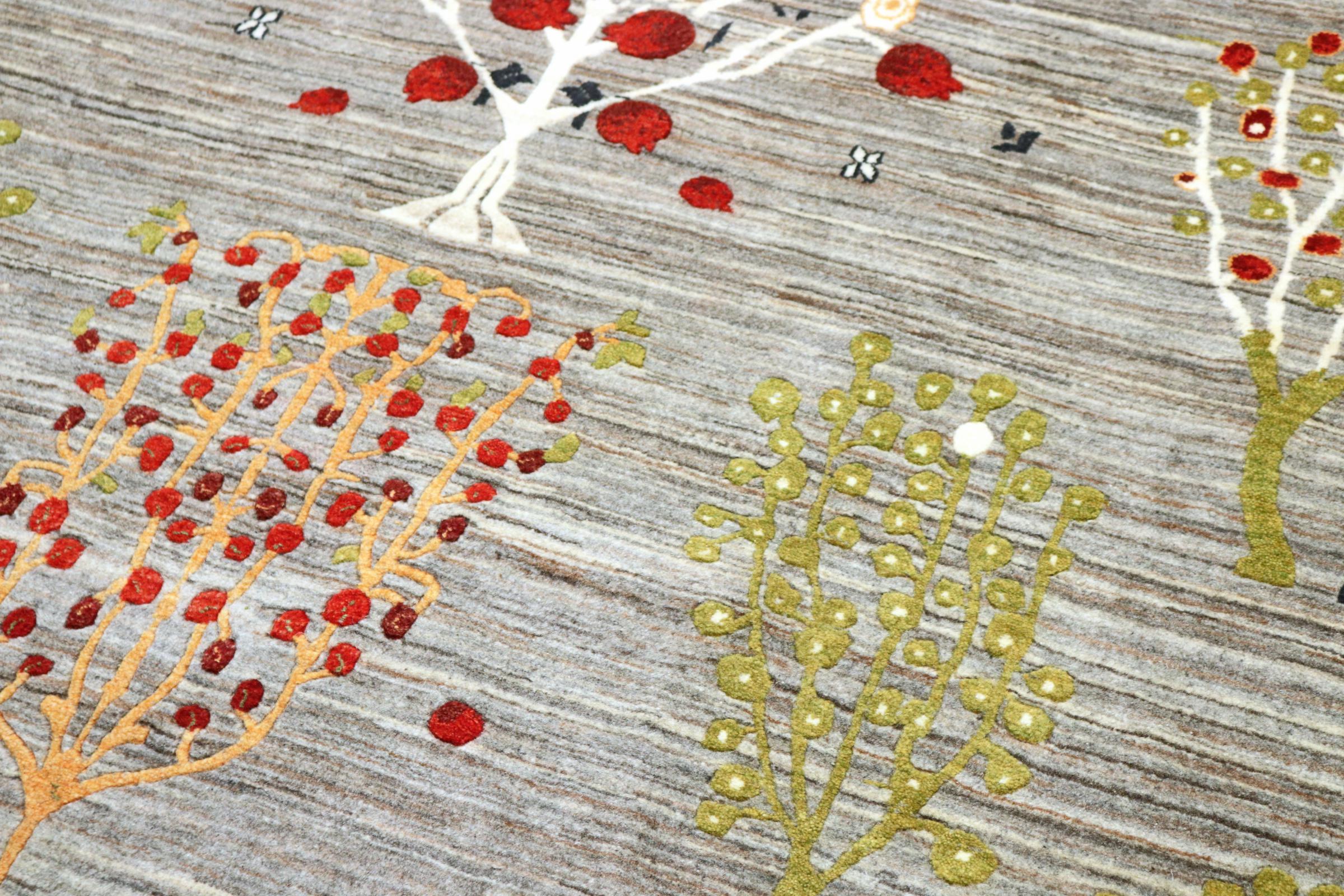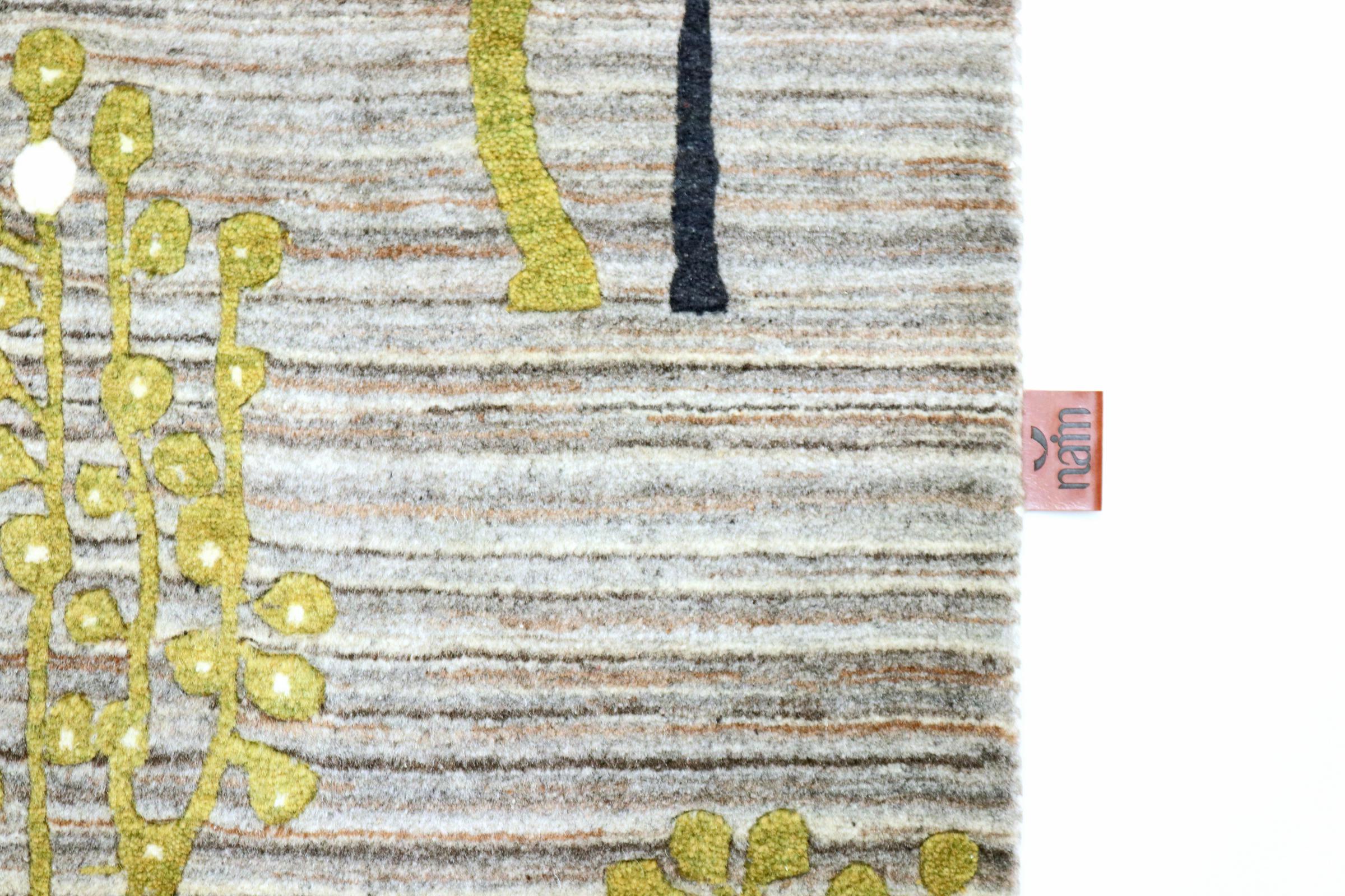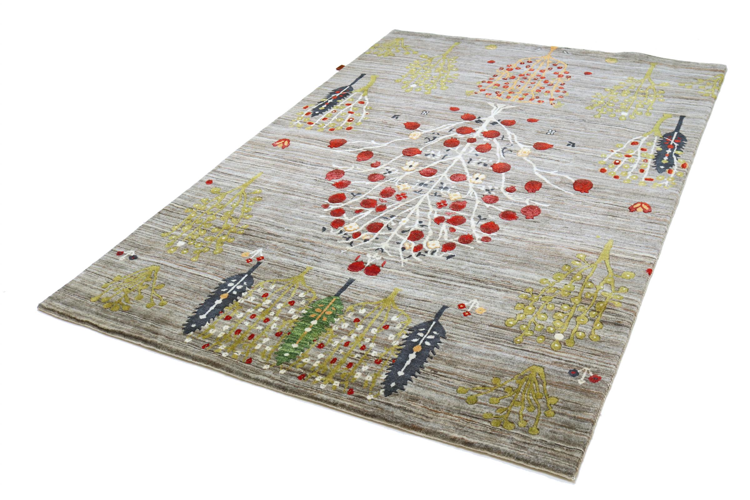 Dette smukke Gabbeh-tæppe blev håndknyttet i Indien. Indiske Gabbeh-tæpper er lavet af blød fåruld, er behagelige på fødderne og har varmeisolerende egenskaber. De fleste af deres design er enkle og tidløst moderne. De blev inspireret af nomadiske folk, der lader meget enkle motiver fra deres omgivelser passere ind i tæpperne. Indiske Gabbeh-tæpper matcher ikke helt kvaliteten på en persisk Gabbeh, men de har et meget godt pris-ydelsesforhold. Dette gør dem ideelle som et håndknyttet tæppe på indgangsniveau.