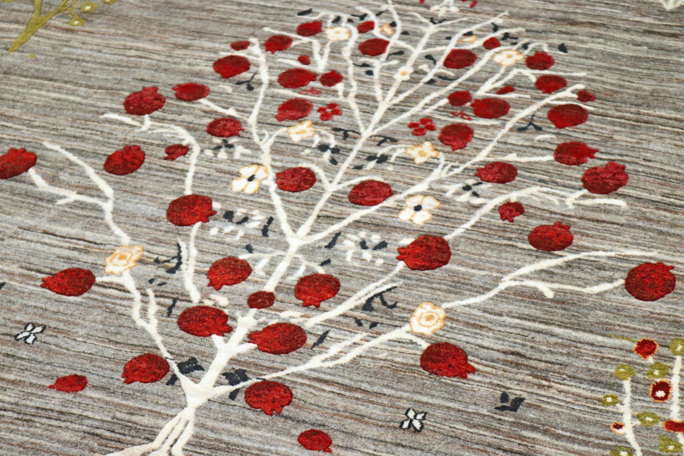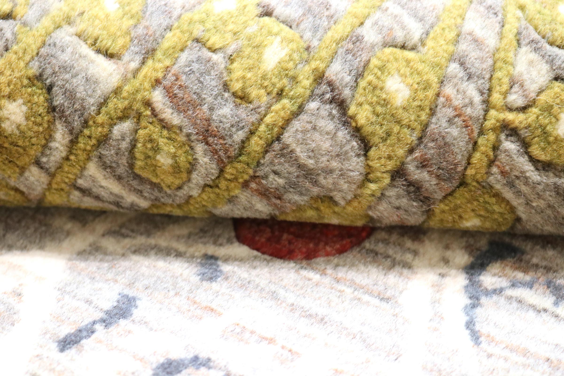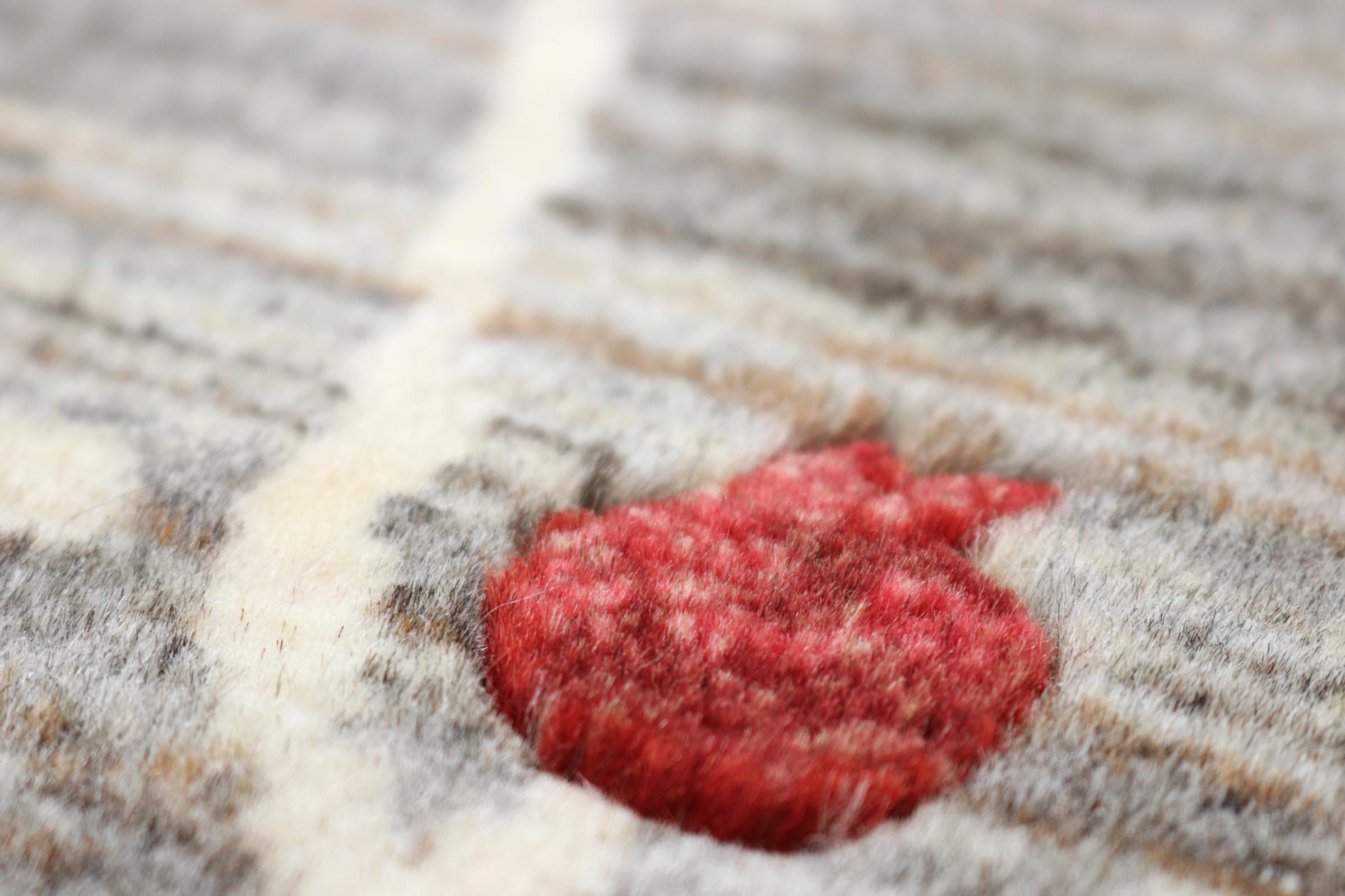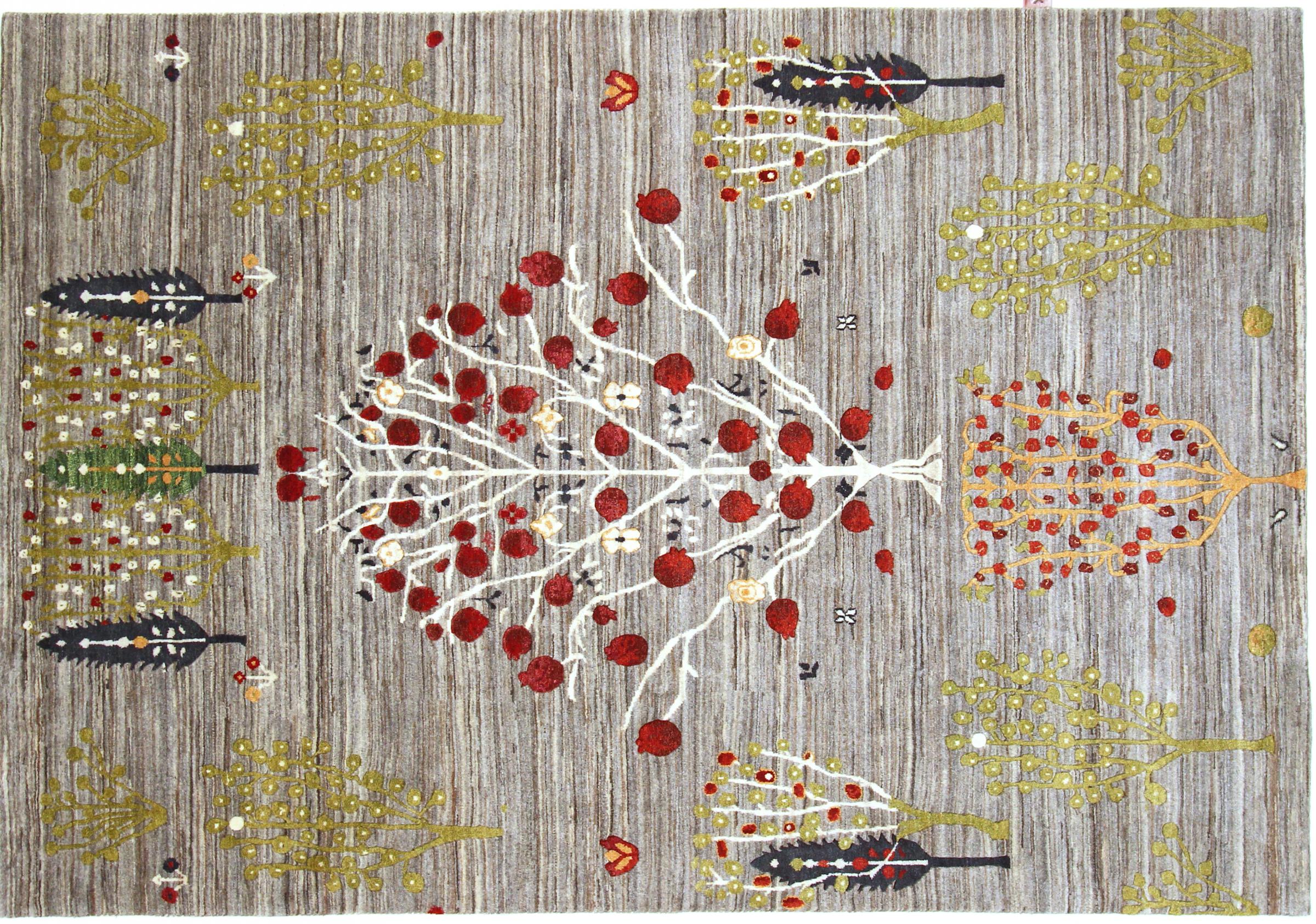 Dette smukke Gabbeh-tæppe blev håndknyttet i Indien. Indiske Gabbeh-tæpper er lavet af blød fåruld, er behagelige på fødderne og har varmeisolerende egenskaber. De fleste af deres design er enkle og tidløst moderne. De blev inspireret af nomadiske folk, der lader meget enkle motiver fra deres omgivelser passere ind i tæpperne. Indiske Gabbeh-tæpper matcher ikke helt kvaliteten på en persisk Gabbeh, men de har et meget godt pris-ydelsesforhold. Dette gør dem ideelle som et håndknyttet tæppe på indgangsniveau.