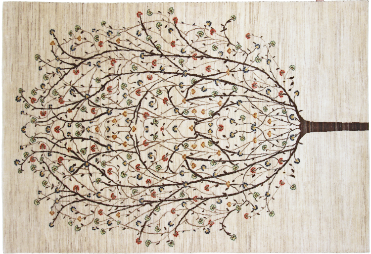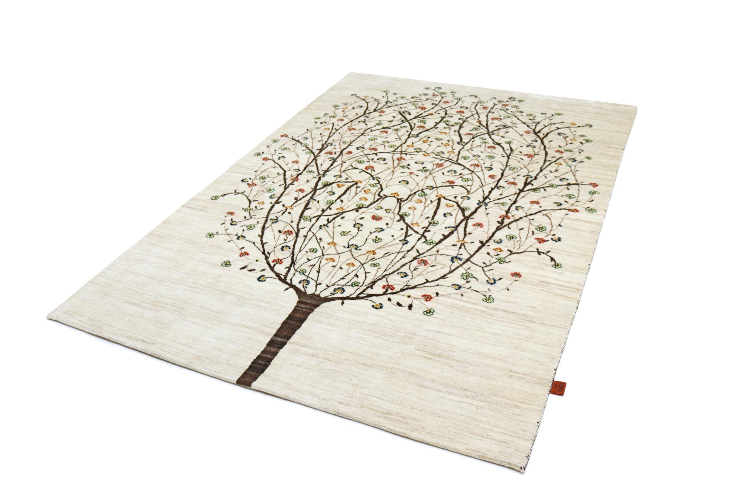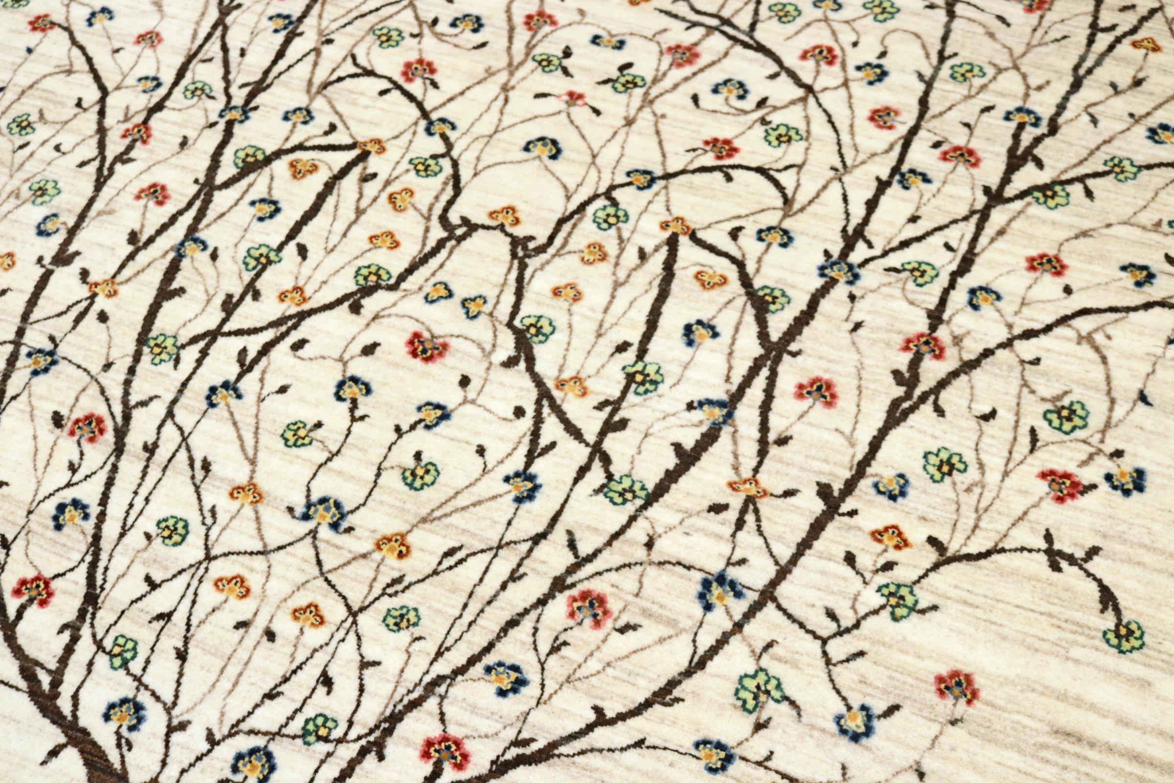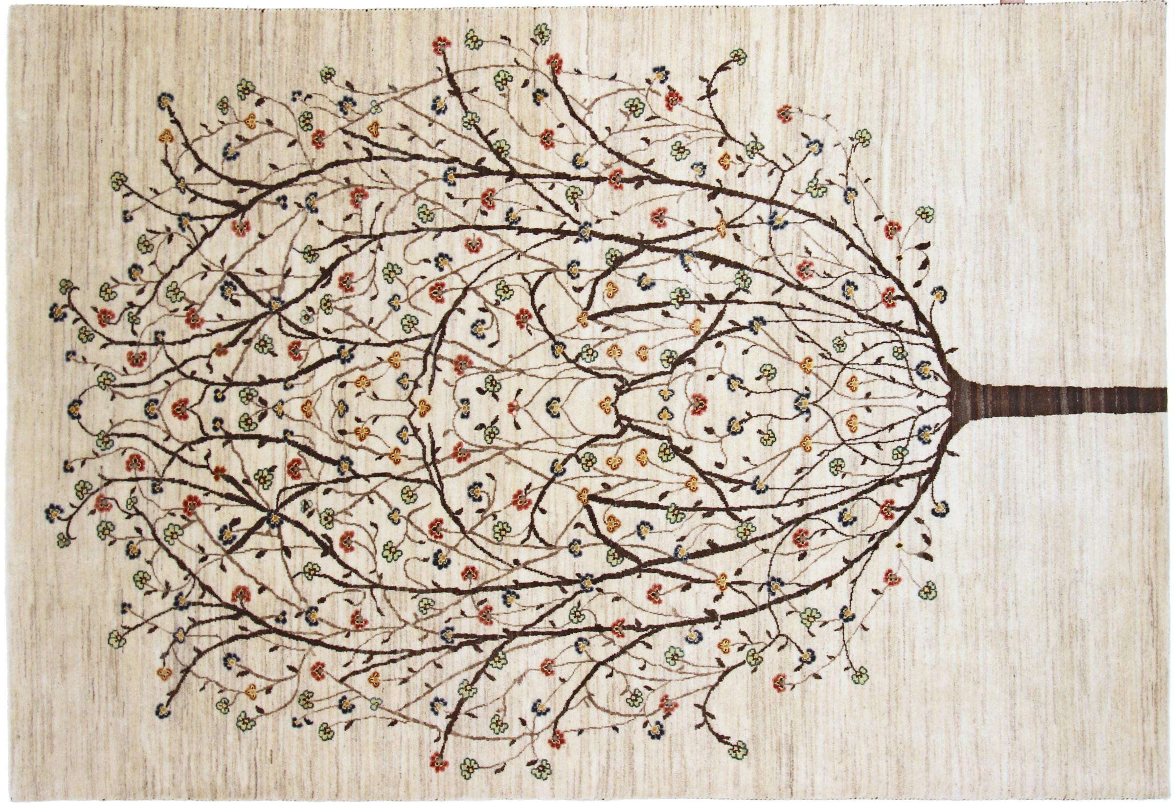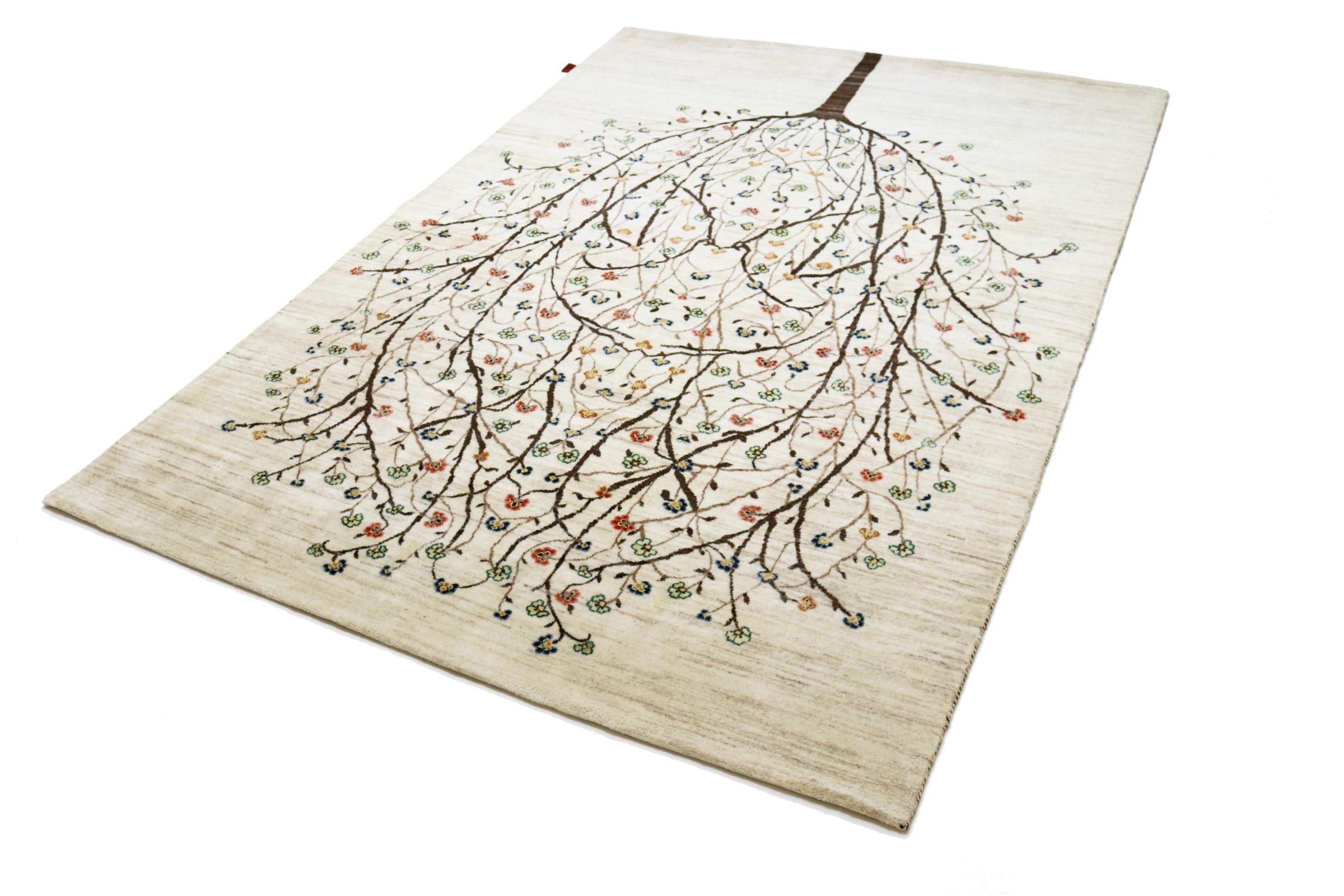 Dette smukke Gabbeh-tæppe blev håndknyttet i Indien. Indiske Gabbeh-tæpper er lavet af blød fåruld, er behagelige på fødderne og har varmeisolerende egenskaber. De fleste af deres design er enkle og tidløst moderne. De blev inspireret af nomadiske folk, der lader meget enkle motiver fra deres omgivelser passere ind i tæpperne. Indiske Gabbeh-tæpper matcher ikke helt kvaliteten på en persisk Gabbeh, men de har et meget godt pris-ydelsesforhold. Dette gør dem ideelle som et håndknyttet tæppe på indgangsniveau.