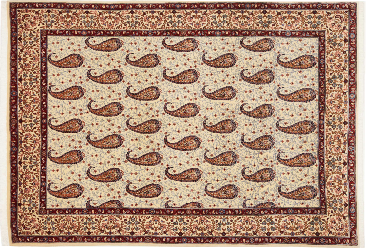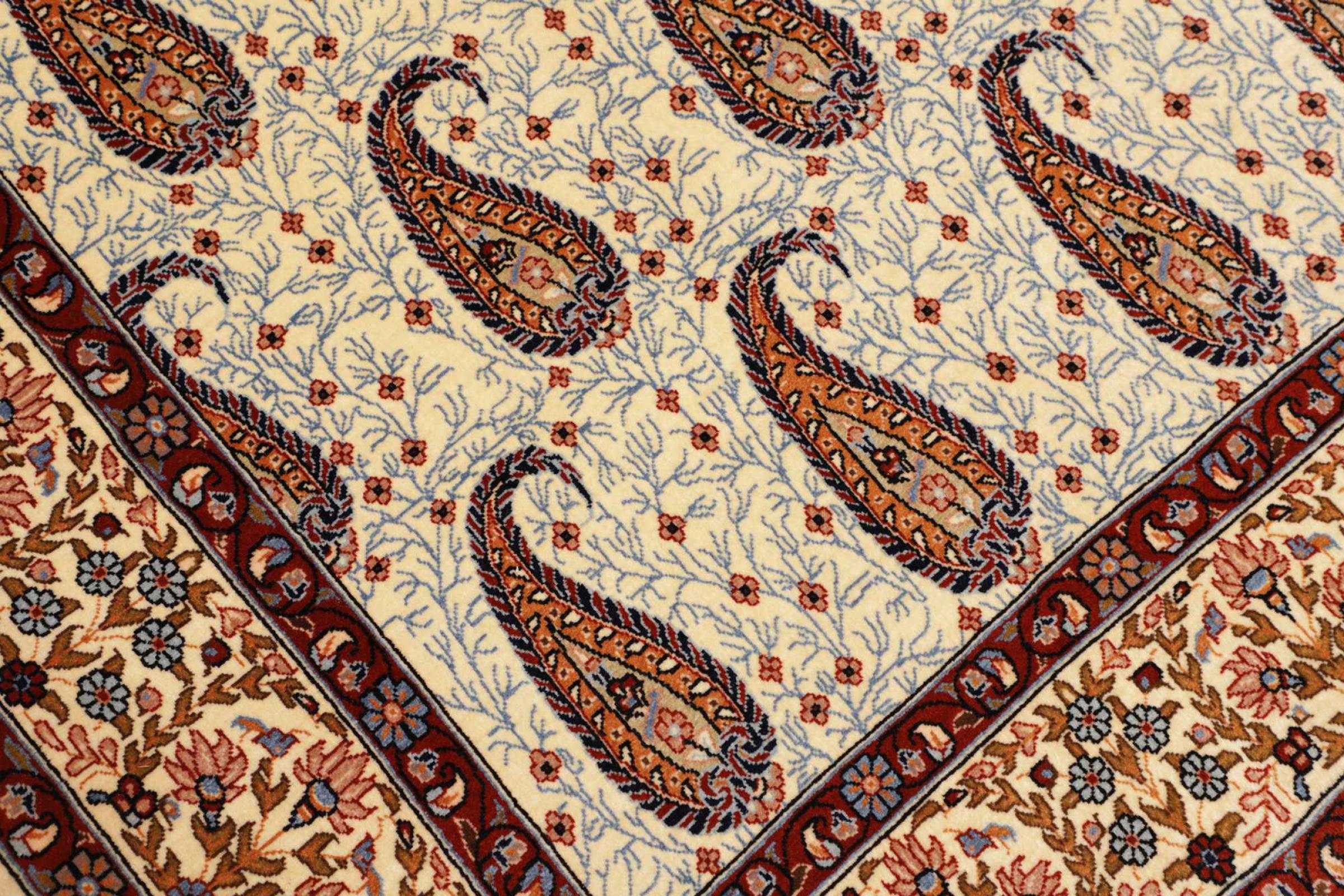 Dette Isfahan tæppe er højeste kunst. Forarbejdningen er vidunderligt og derudover dekoreret med de smukkeste mønstre. Denne persisk tæppe, hånknyttet af det fineste garn, kommer fra Isfahan, den smukkeste by i Iran. Det kunne ikke være bedre.