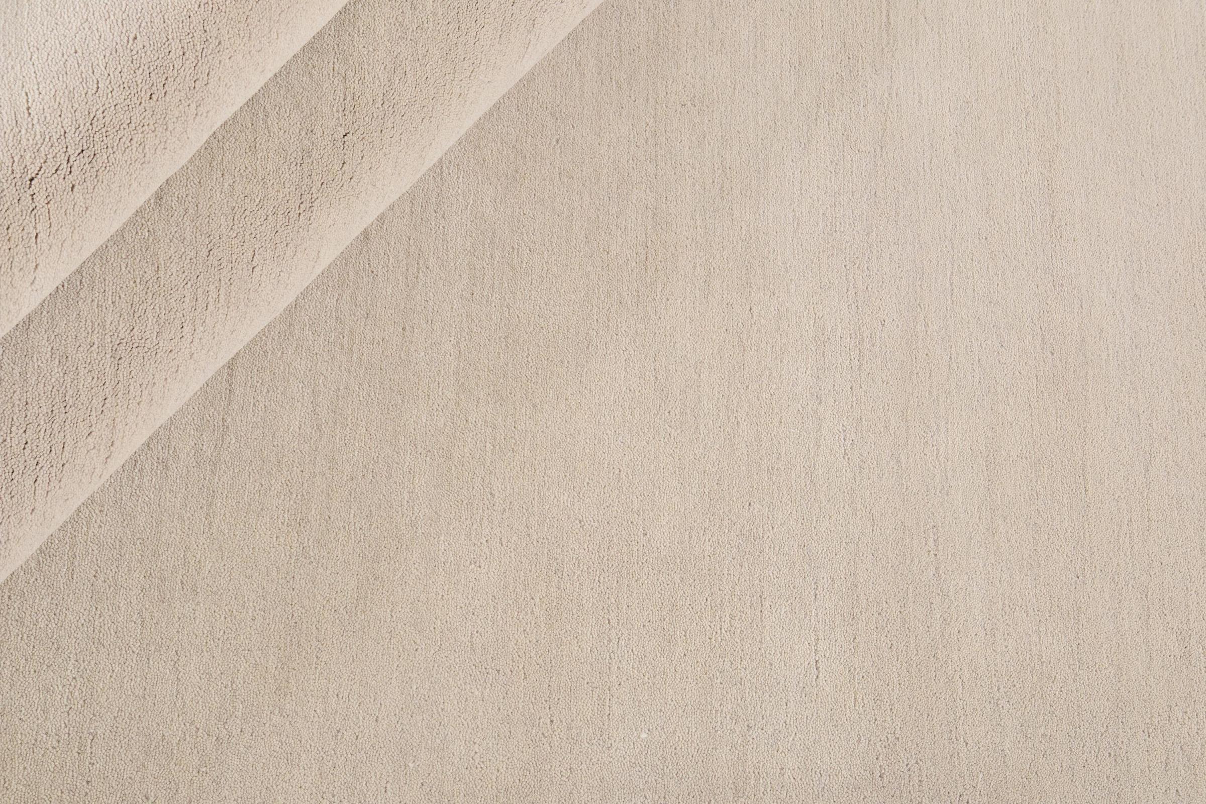Dette originale håndknyttede orientalske tæppe i skandinavisk design lavet af ren uld / 100 % højkvalitets viskose repræsenterer på vidunderlig vis funktionalitet i en enkel, meget elegant form. Dens overflade skinner ikke kun delvist som silke, men dens farve blander sig altid glat ind i rummet.