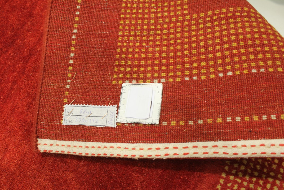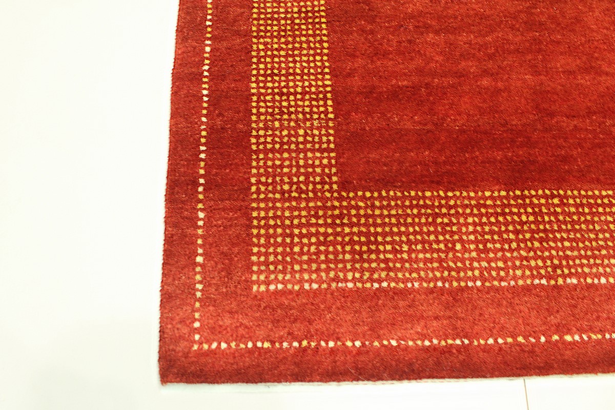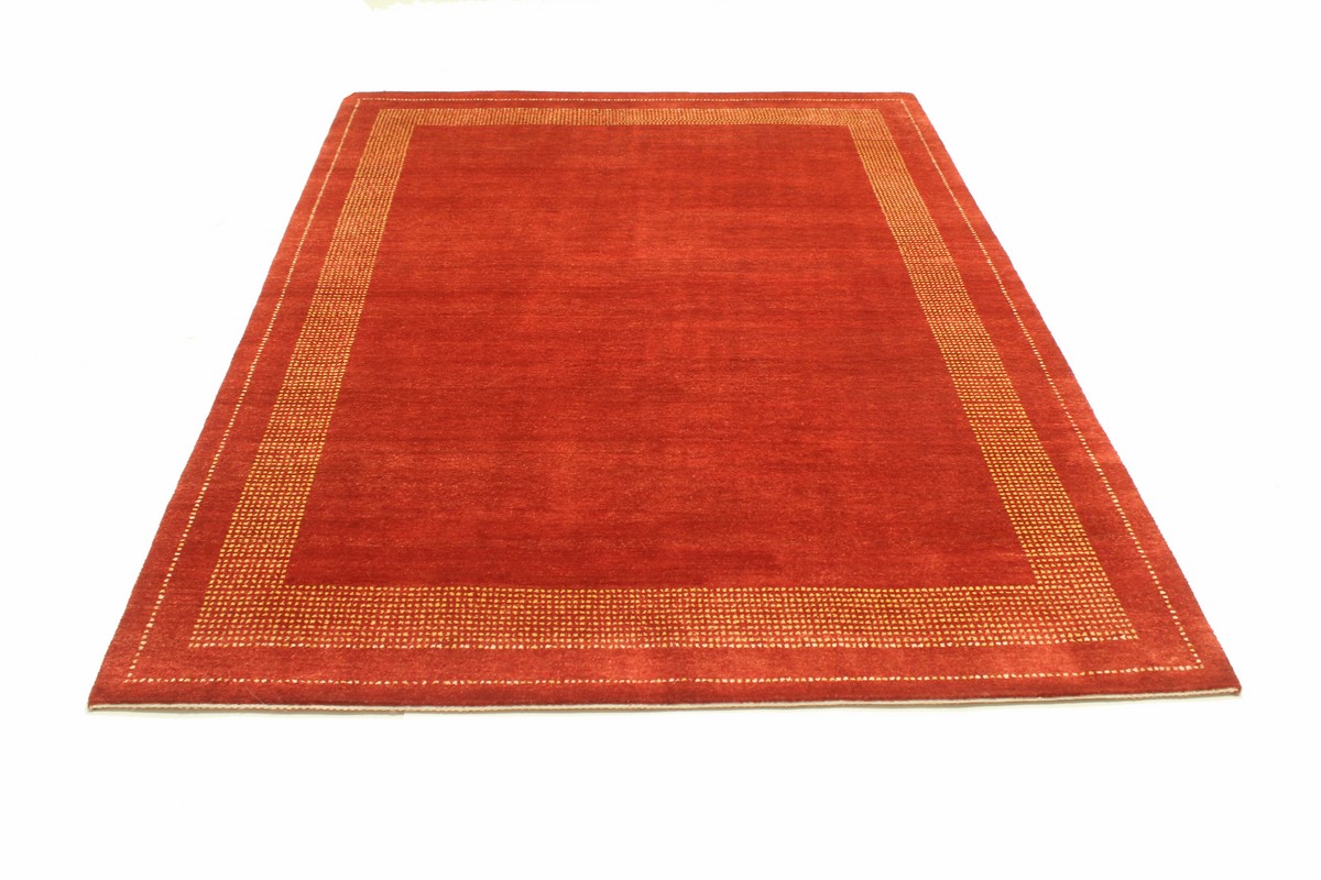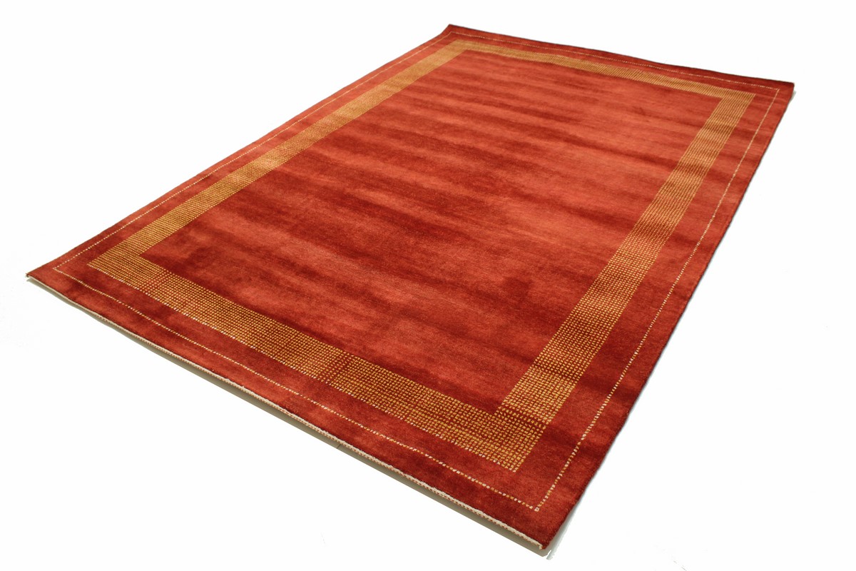 Dette smukke Gabbeh-tæppe blev håndknyttet i Indien. Indiske Gabbeh-tæpper er lavet af blød fåruld, er behagelige på fødderne og har varmeisolerende egenskaber. De fleste af deres design er enkle og tidløst moderne. De blev inspireret af nomadiske folk, der lader meget enkle motiver fra deres omgivelser passere ind i tæpperne. Indiske Gabbeh-tæpper matcher ikke helt kvaliteten på en persisk Gabbeh, men de har et meget godt pris-ydelsesforhold. Dette gør dem ideelle som et håndknyttet tæppe på indgangsniveau.