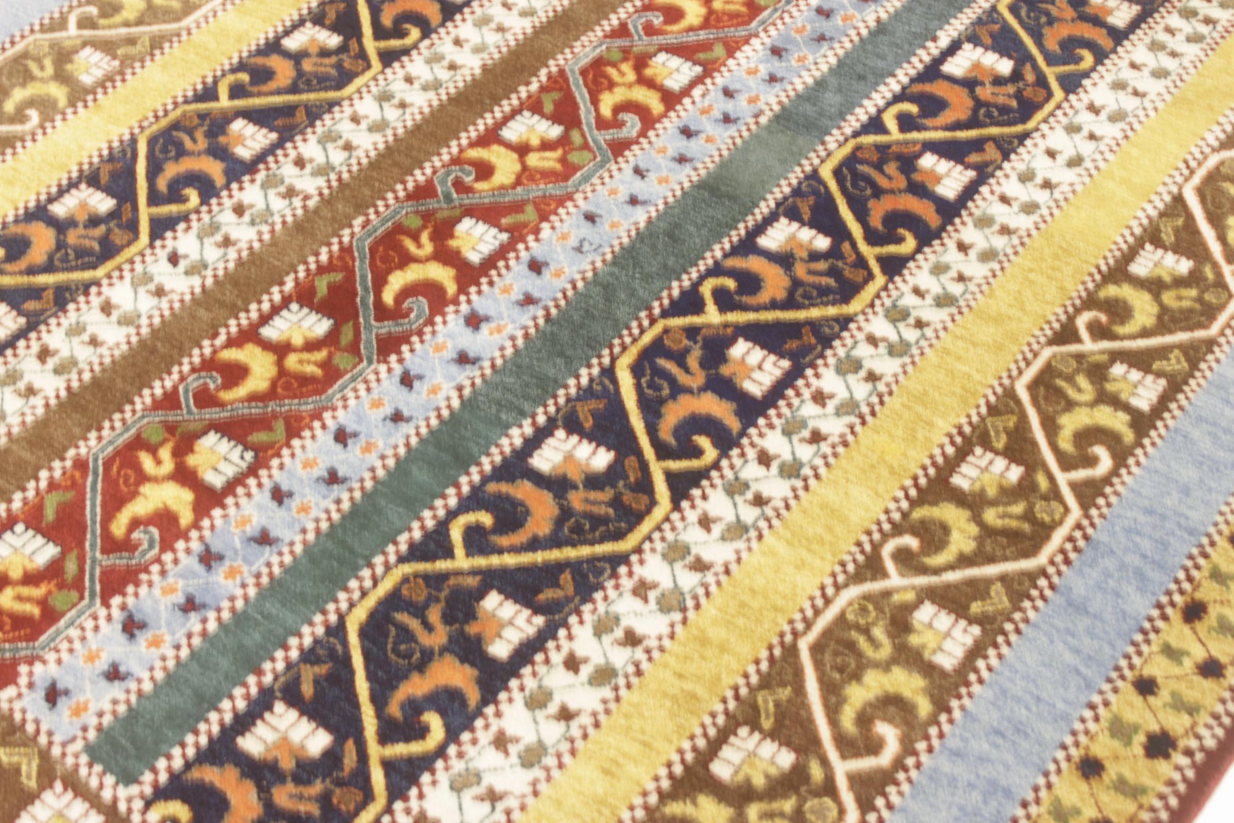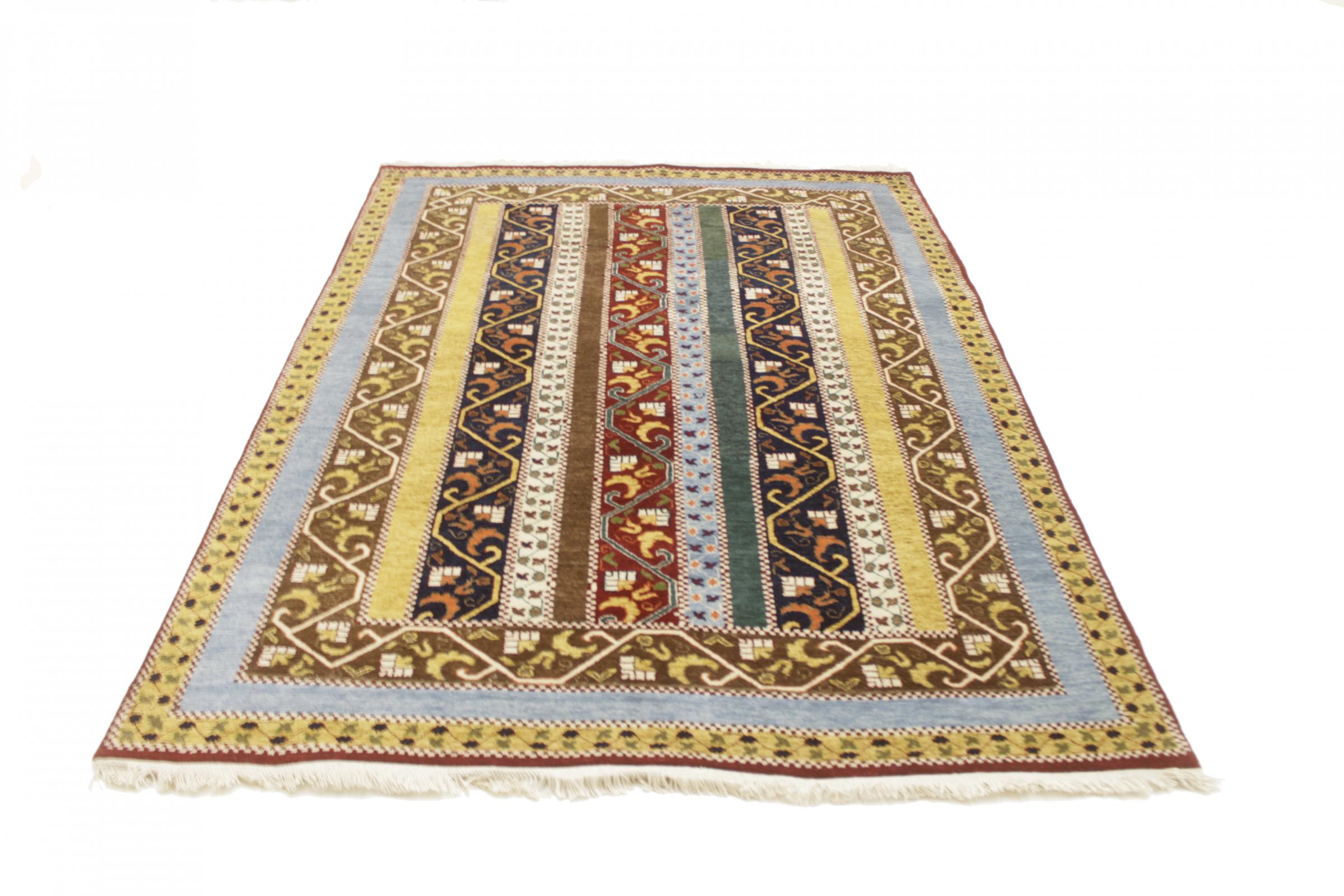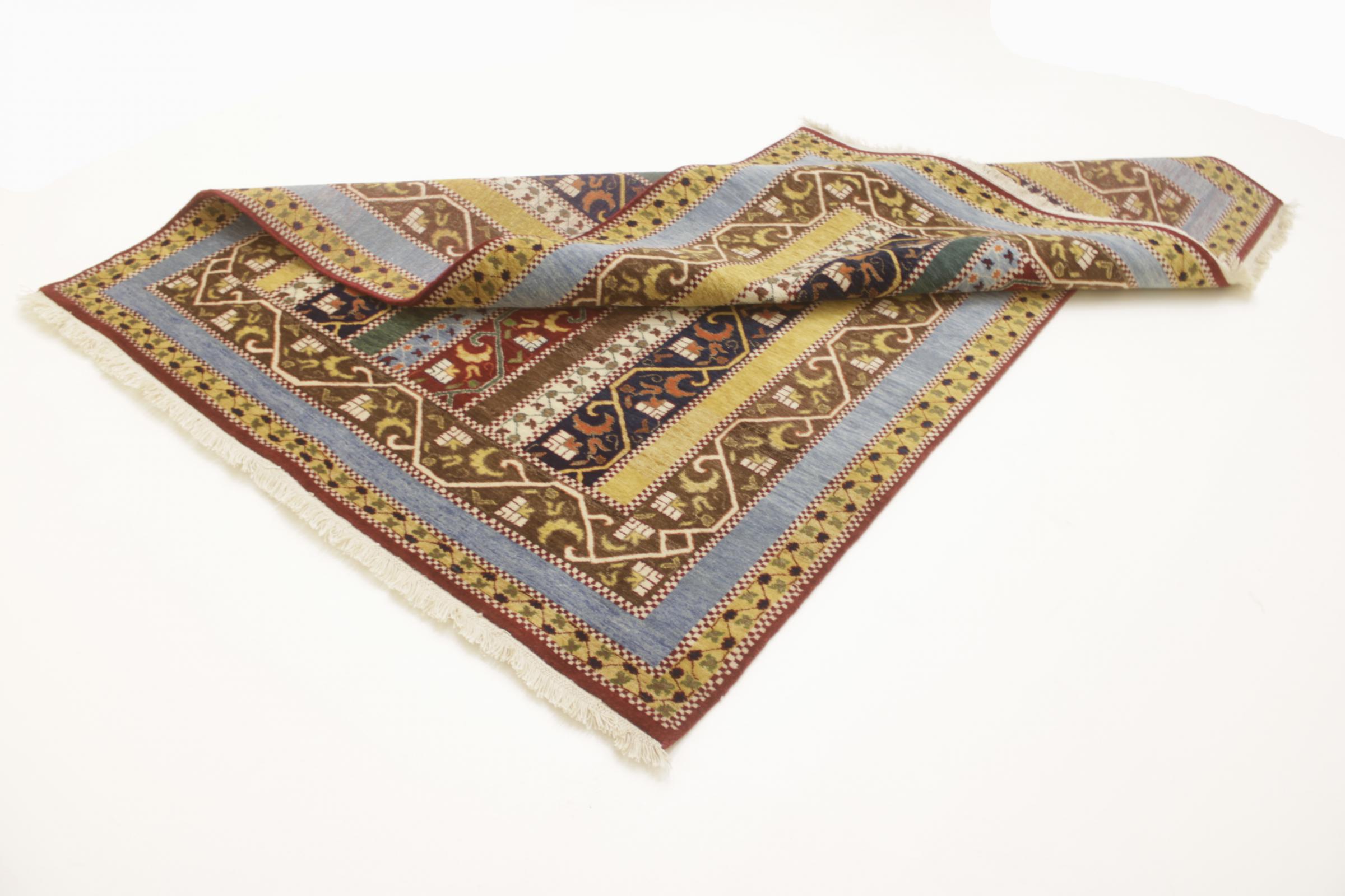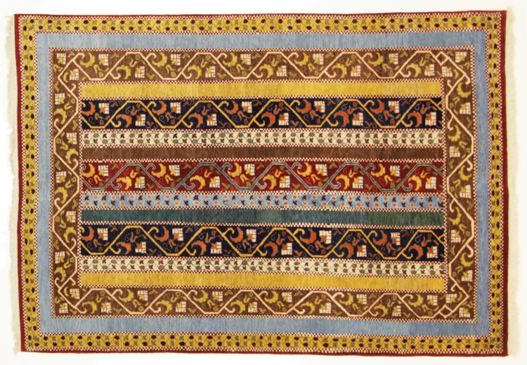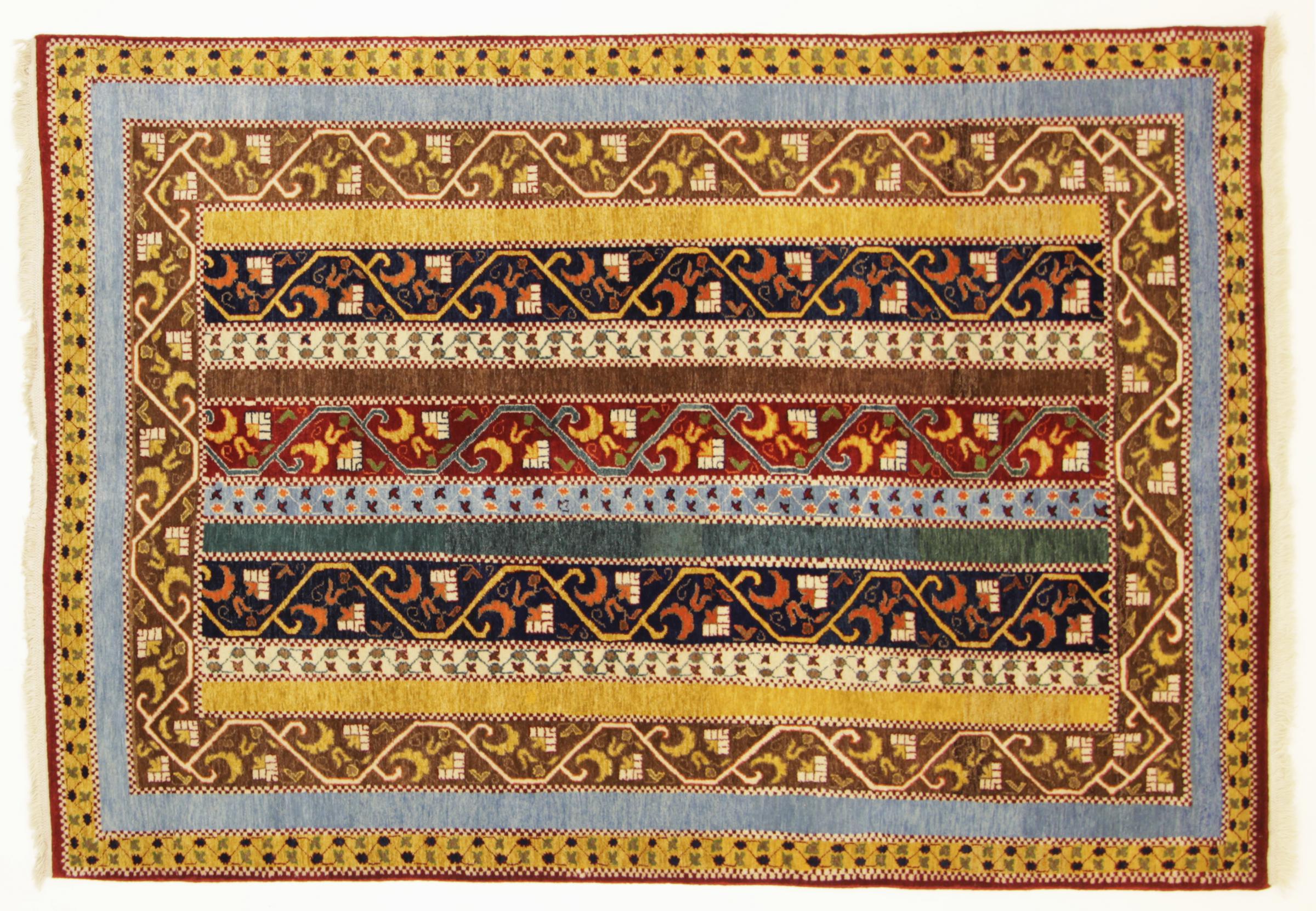 Dette smukke Gabbeh-tæppe blev håndknyttet i Indien. Indiske Gabbeh-tæpper er lavet af blød fåruld, er behagelige på fødderne og har varmeisolerende egenskaber. De fleste af deres design er enkle og tidløst moderne. De blev inspireret af nomadiske folk, der lader meget enkle motiver fra deres omgivelser passere ind i tæpperne. Indiske Gabbeh-tæpper matcher ikke helt kvaliteten på en persisk Gabbeh, men de har et meget godt pris-ydelsesforhold. Dette gør dem ideelle som et håndknyttet tæppe på indgangsniveau.
