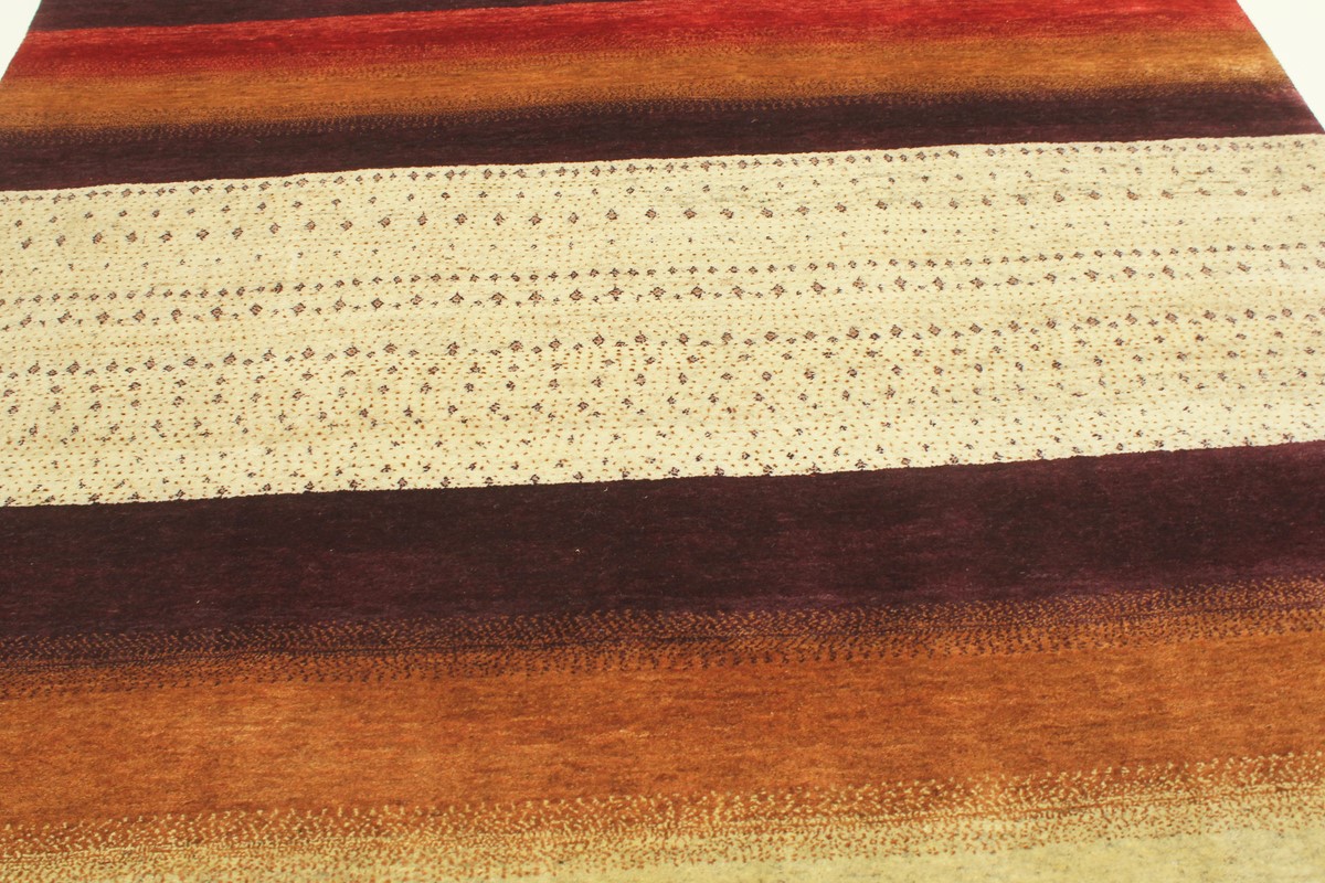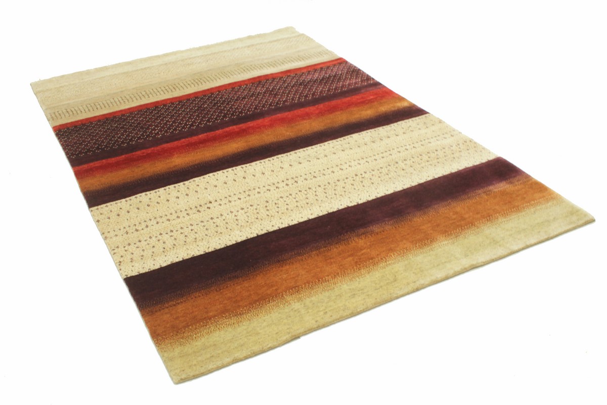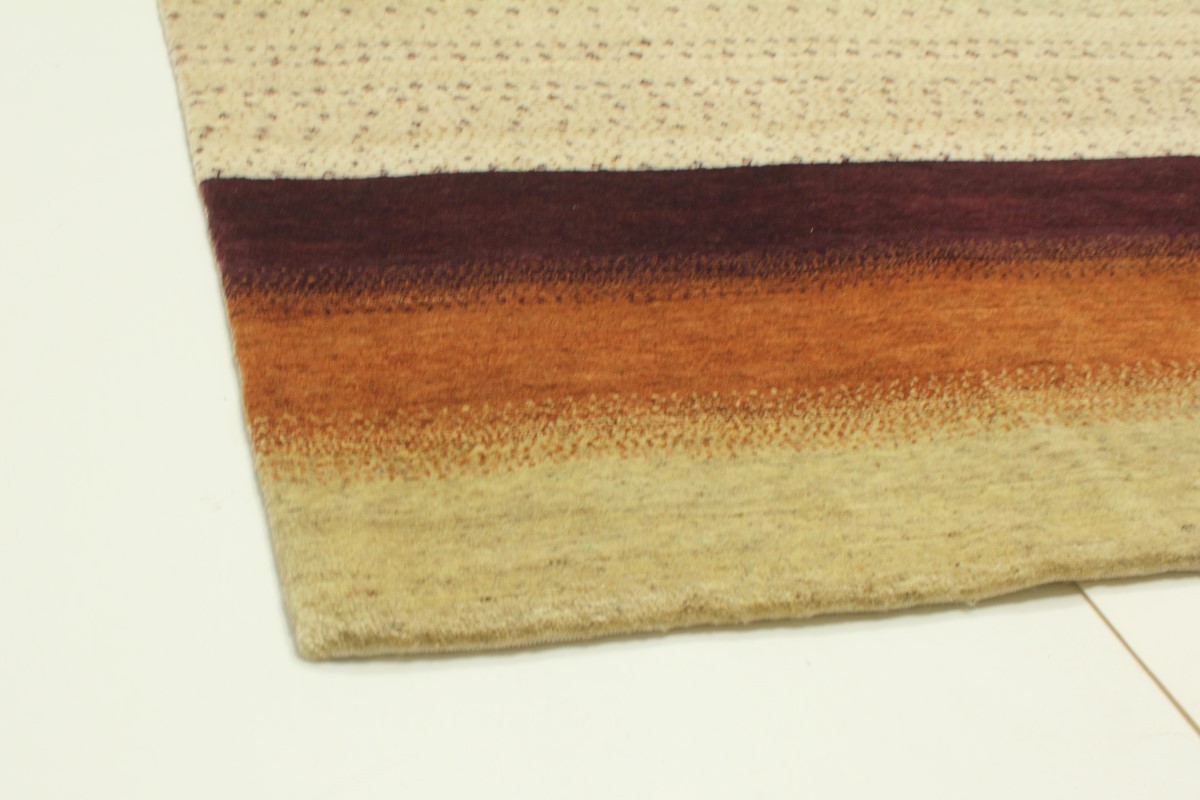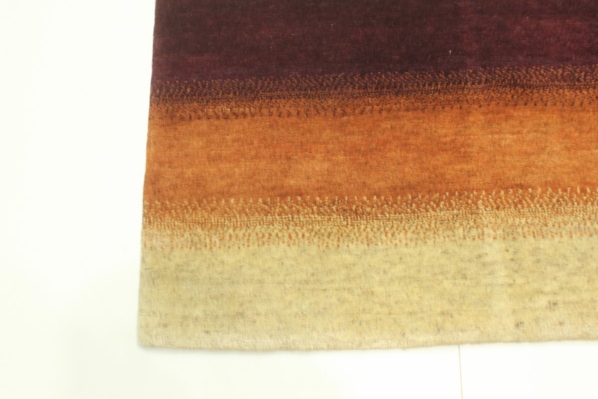 Dette smukke Gabbeh-tæppe blev håndknyttet i Indien. Indiske Gabbeh-tæpper er lavet af blød fåruld, er behagelige på fødderne og har varmeisolerende egenskaber. De fleste af deres design er enkle og tidløst moderne. De blev inspireret af nomadiske folk, der lader meget enkle motiver fra deres omgivelser passere ind i tæpperne. Indiske Gabbeh-tæpper matcher ikke helt kvaliteten på en persisk Gabbeh, men de har et meget godt pris-ydelsesforhold. Dette gør dem ideelle som et håndknyttet tæppe på indgangsniveau.