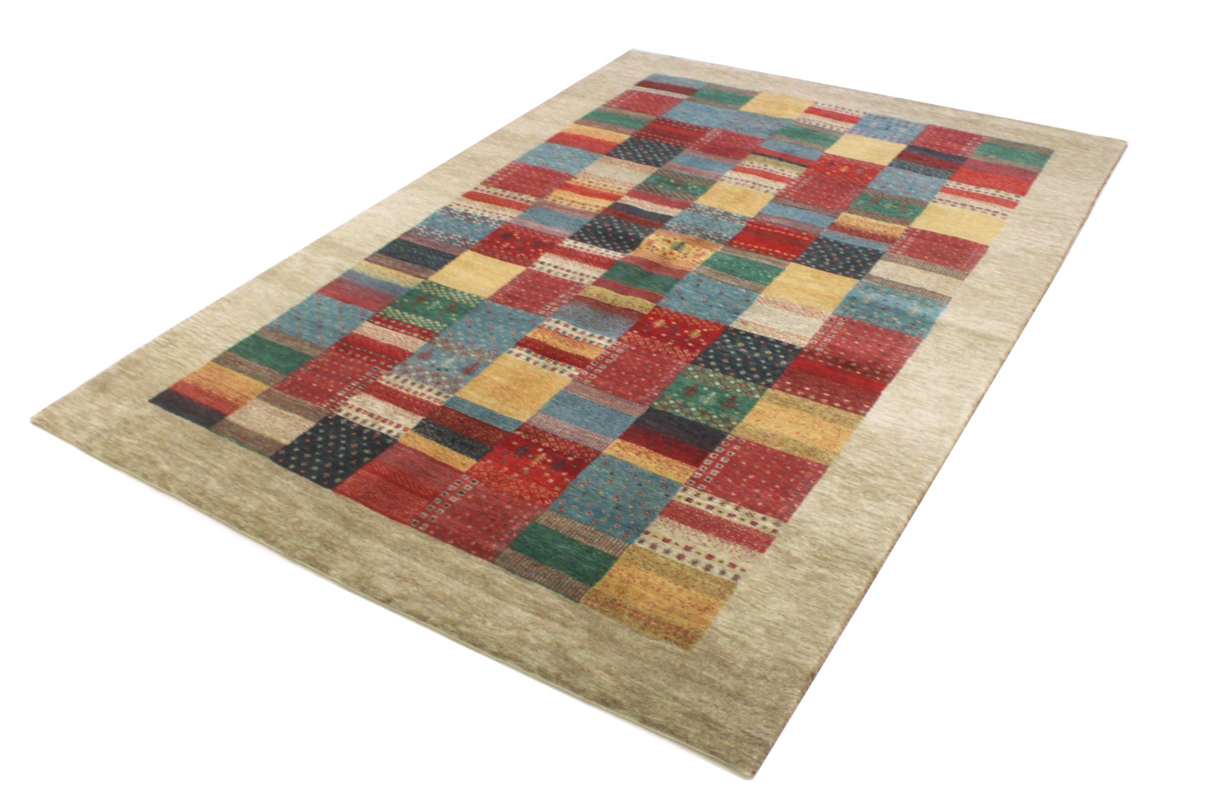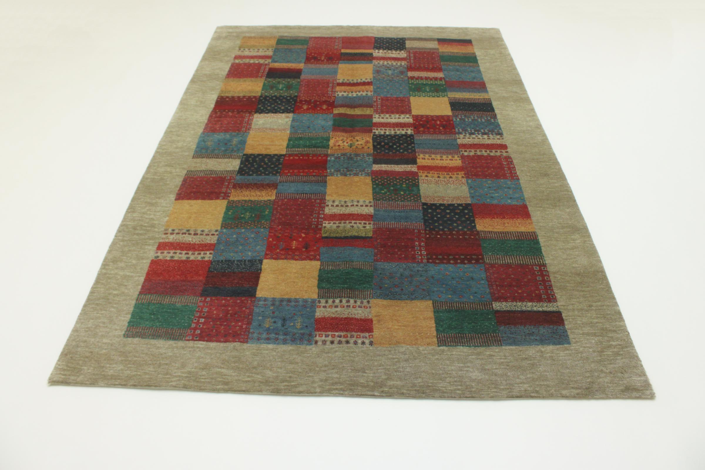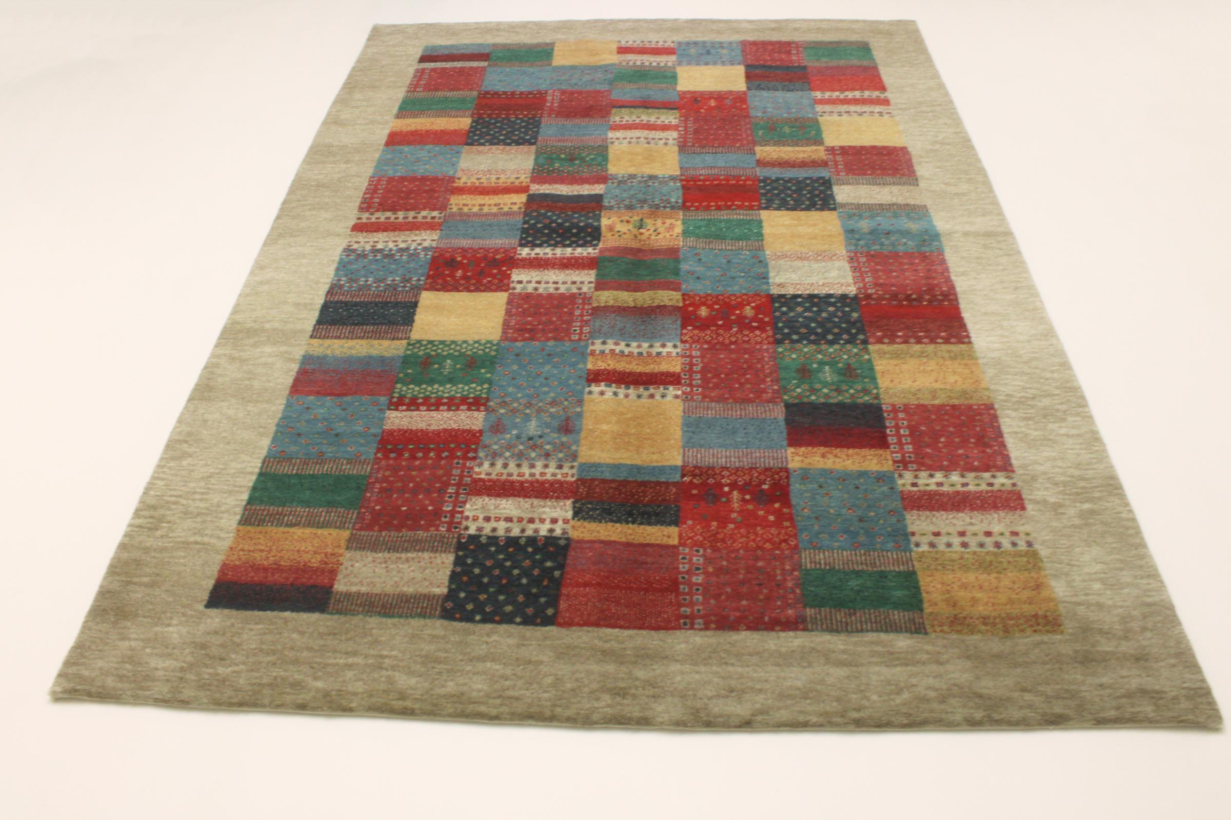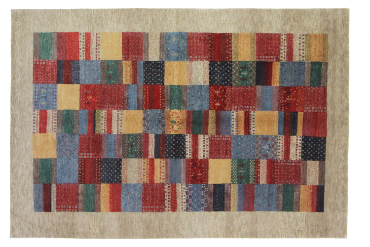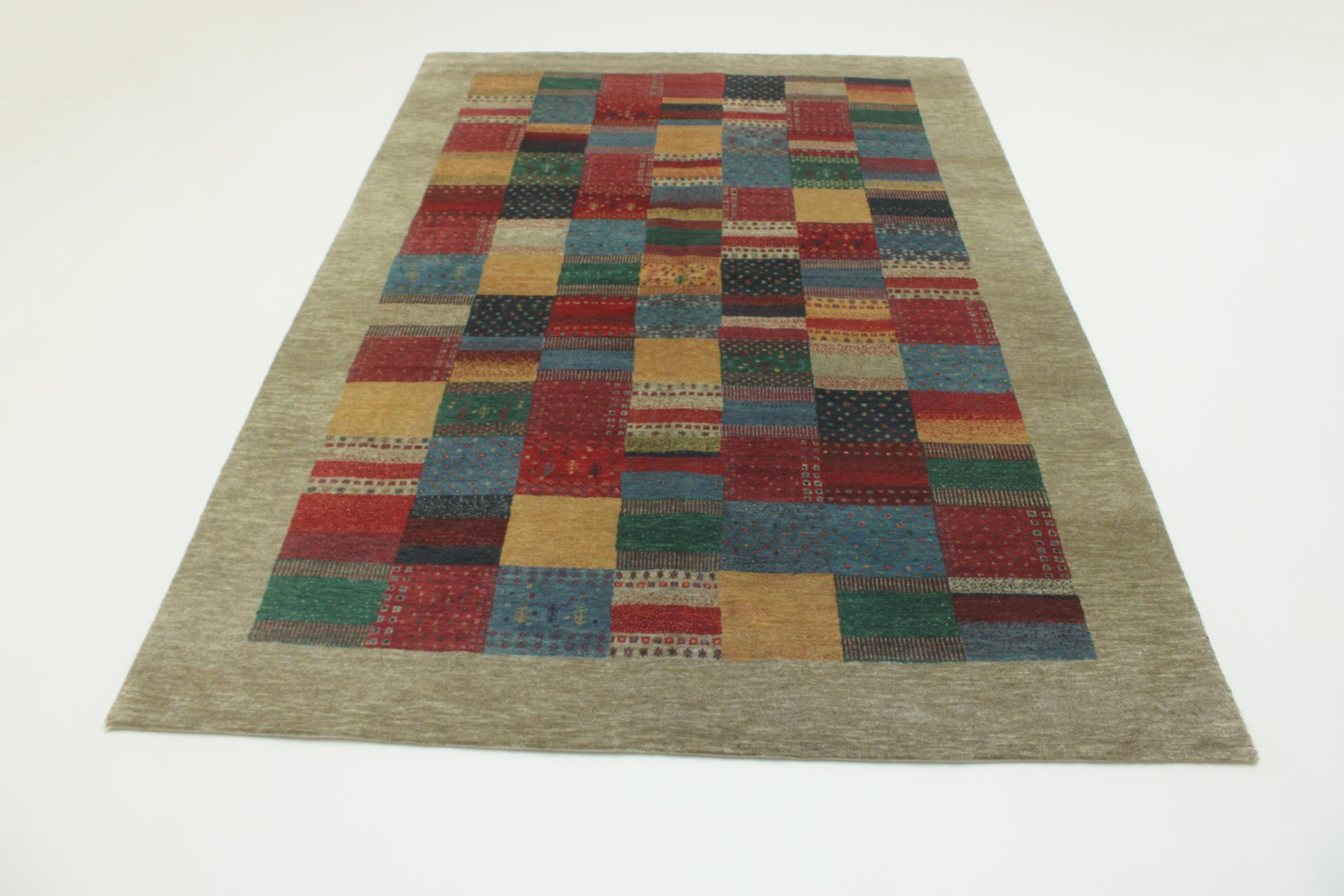 Dette smukke Gabbeh-tæppe blev håndknyttet i Indien. Indiske Gabbeh-tæpper er lavet af blød fåruld, er behagelige på fødderne og har varmeisolerende egenskaber. De fleste af deres design er enkle og tidløst moderne. De blev inspireret af nomadiske folk, der lader meget enkle motiver fra deres omgivelser passere ind i tæpperne. Indiske Gabbeh-tæpper matcher ikke helt kvaliteten på en persisk Gabbeh, men de har et meget godt pris-ydelsesforhold. Dette gør dem ideelle som et håndknyttet tæppe på indgangsniveau.