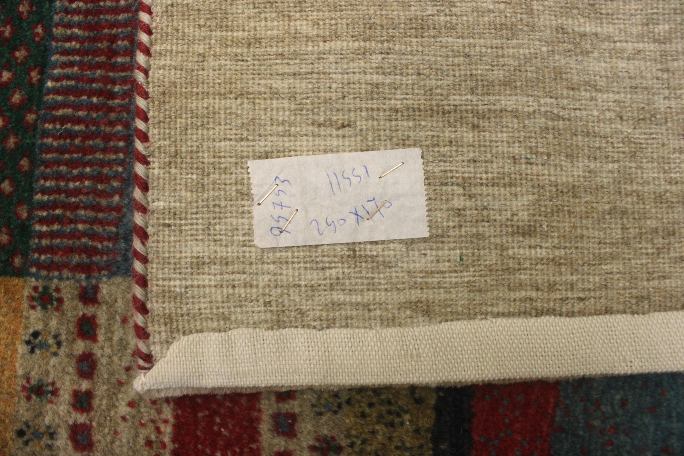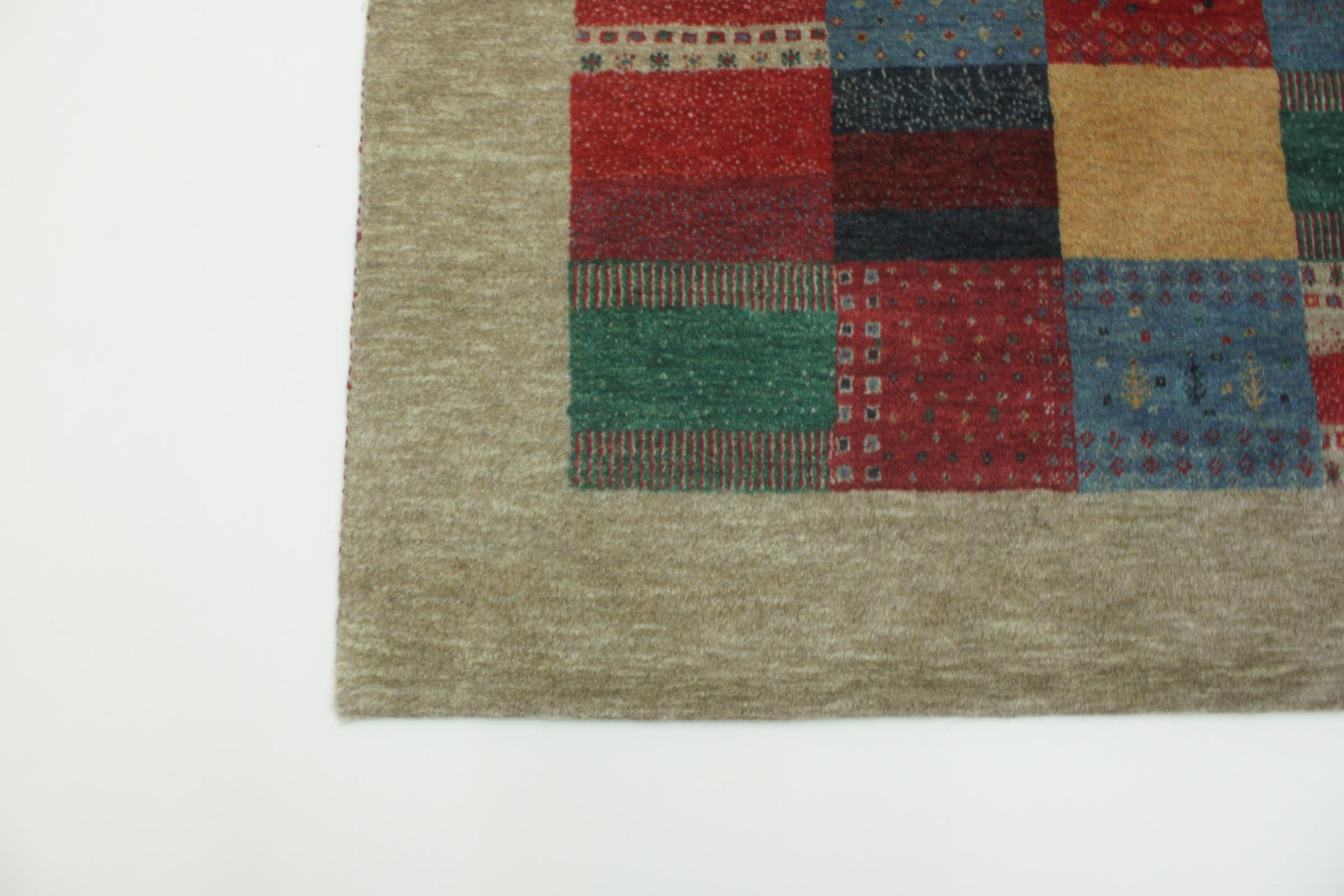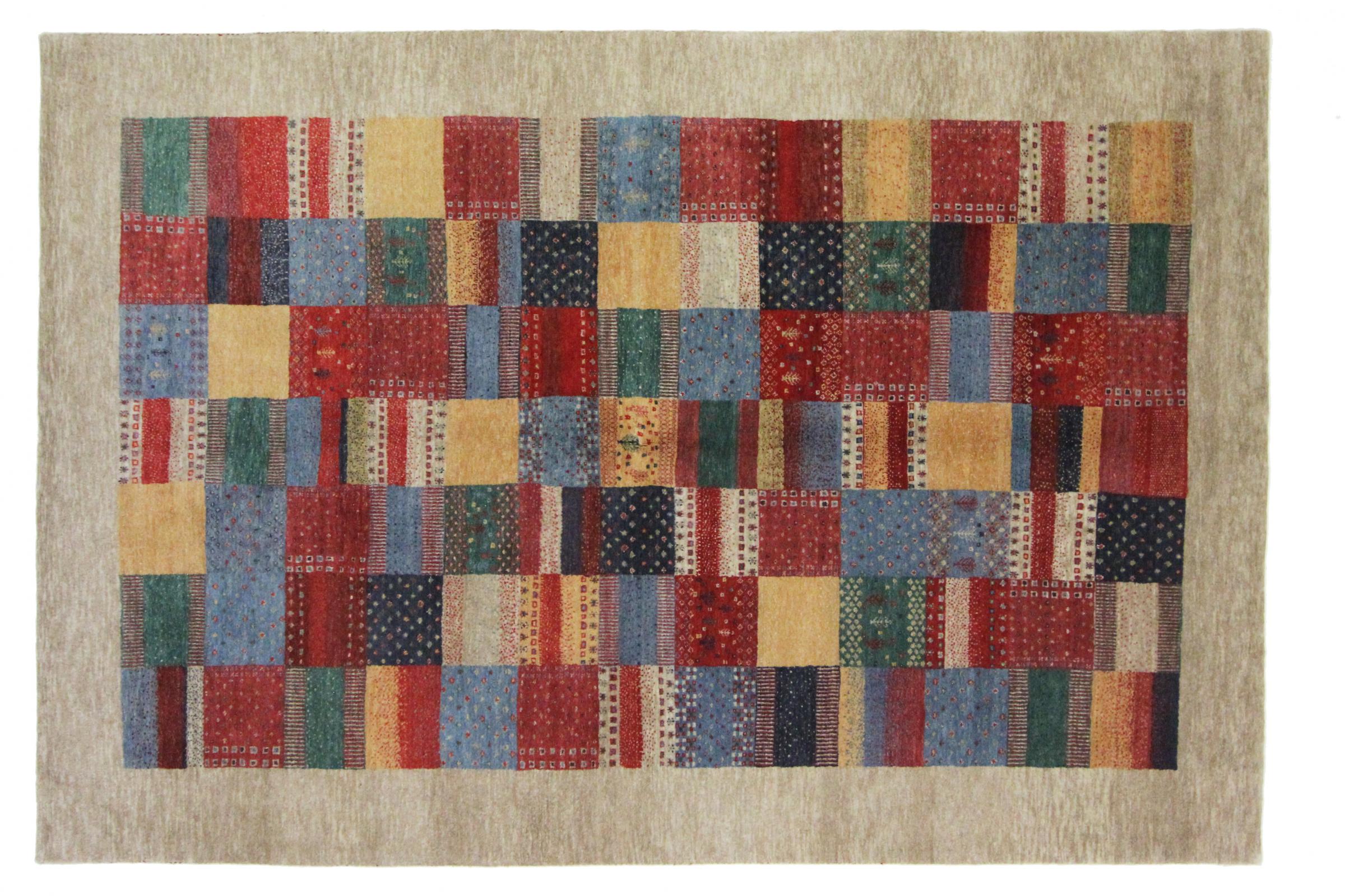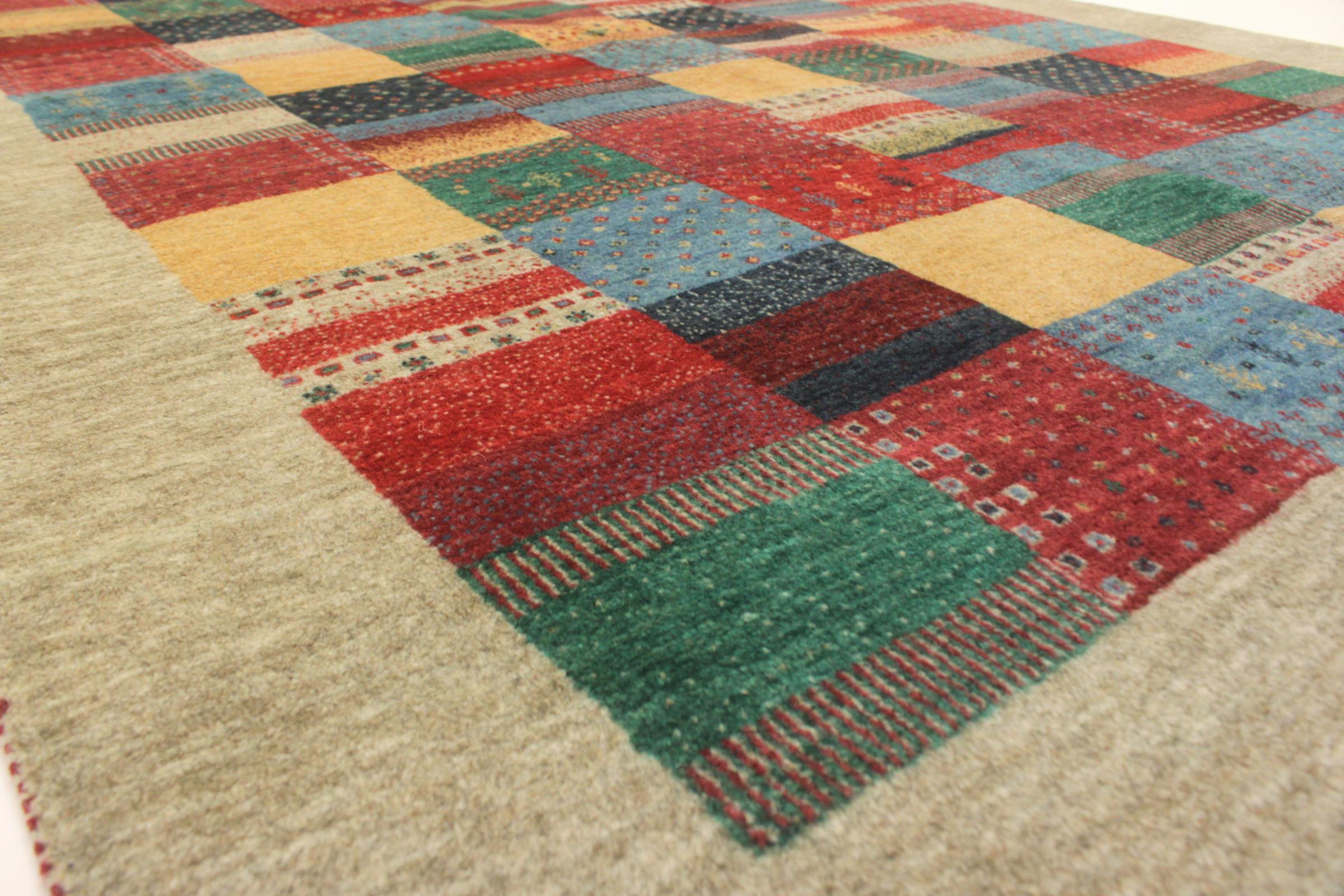 Dette smukke Gabbeh-tæppe blev håndknyttet i Indien. Indiske Gabbeh-tæpper er lavet af blød fåruld, er behagelige på fødderne og har varmeisolerende egenskaber. De fleste af deres design er enkle og tidløst moderne. De blev inspireret af nomadiske folk, der lader meget enkle motiver fra deres omgivelser passere ind i tæpperne. Indiske Gabbeh-tæpper matcher ikke helt kvaliteten på en persisk Gabbeh, men de har et meget godt pris-ydelsesforhold. Dette gør dem ideelle som et håndknyttet tæppe på indgangsniveau.