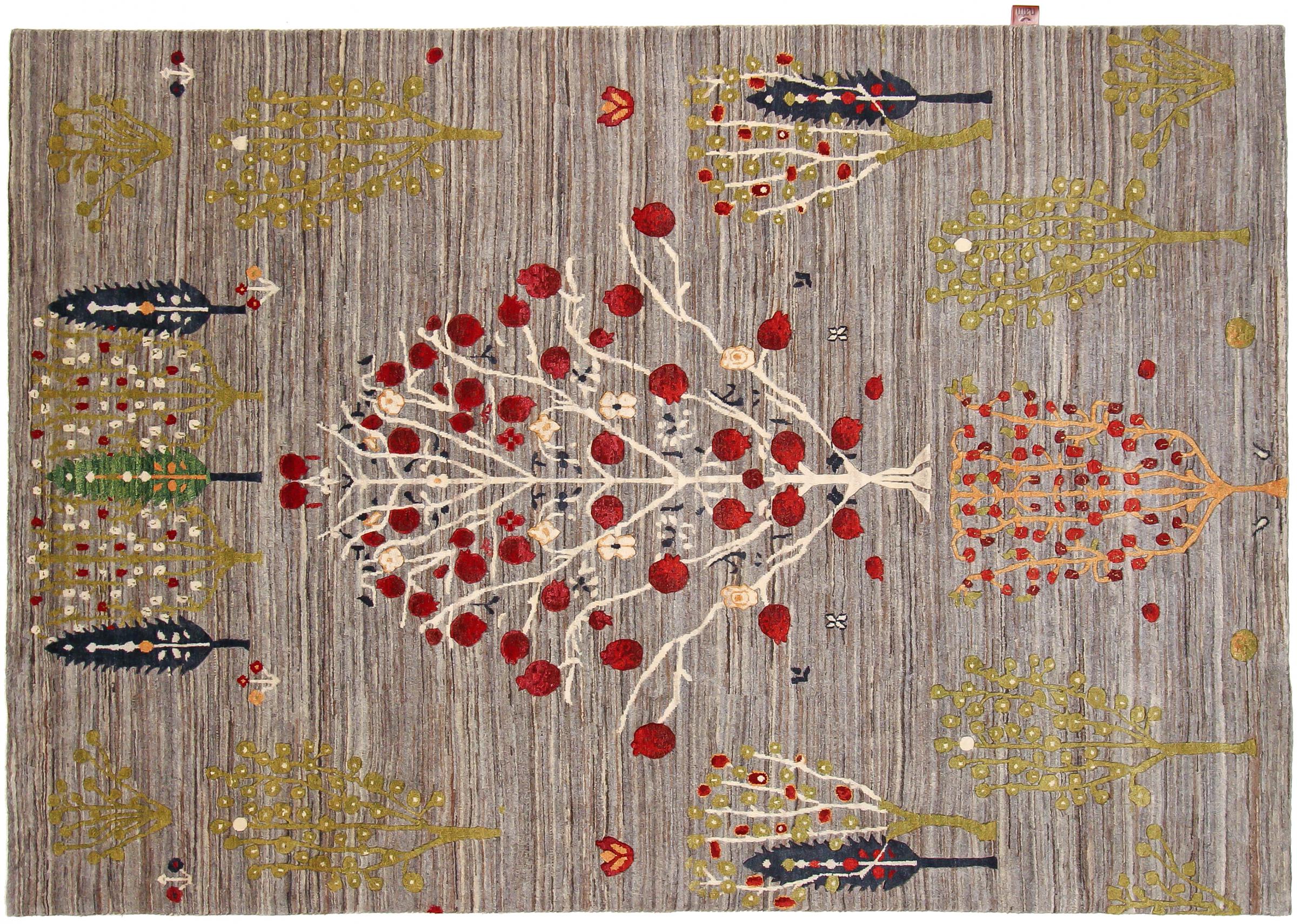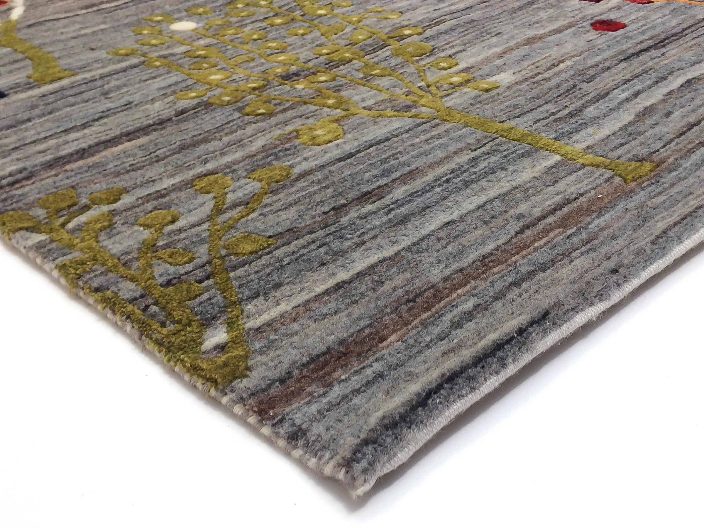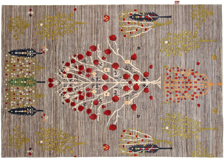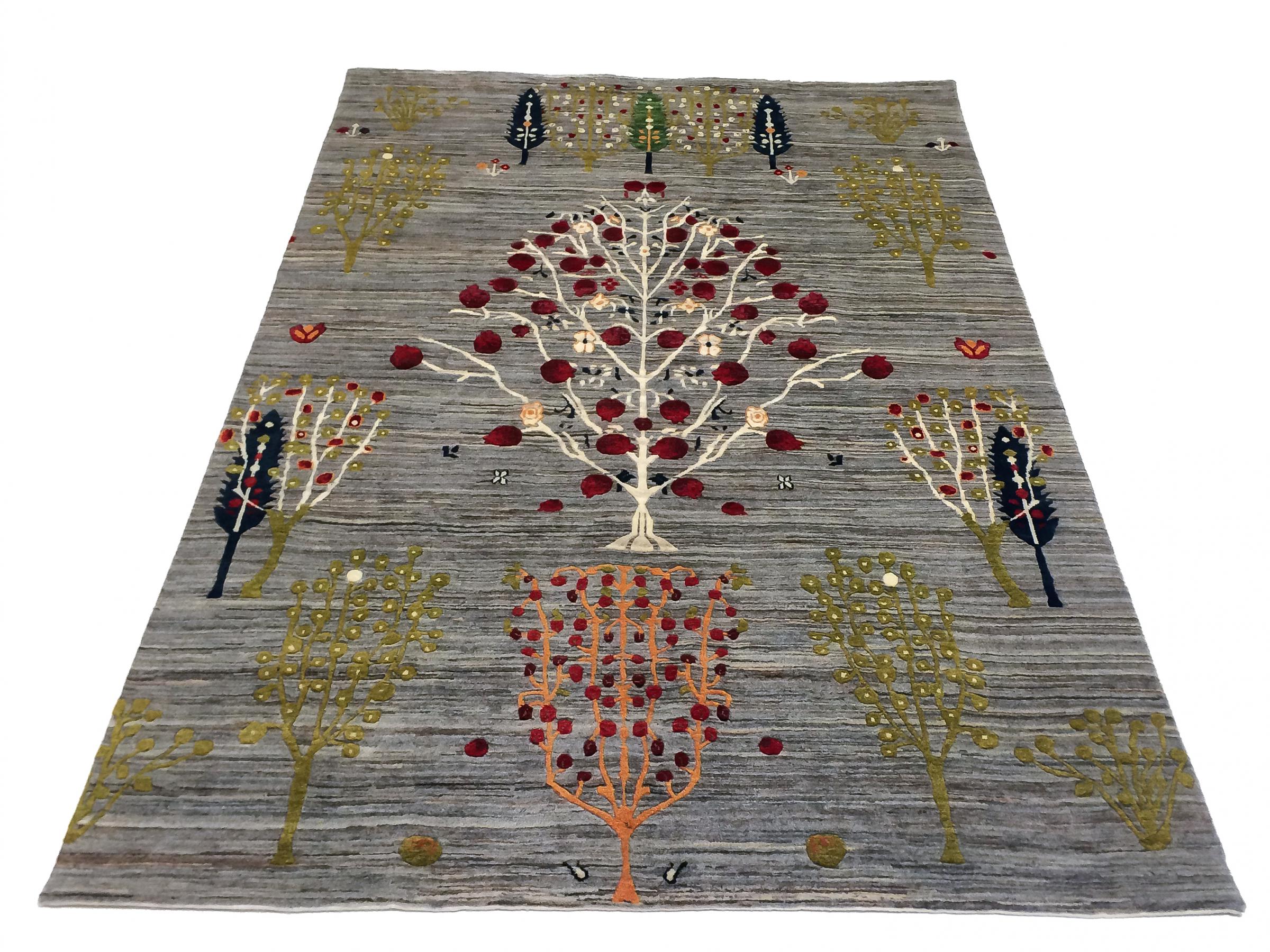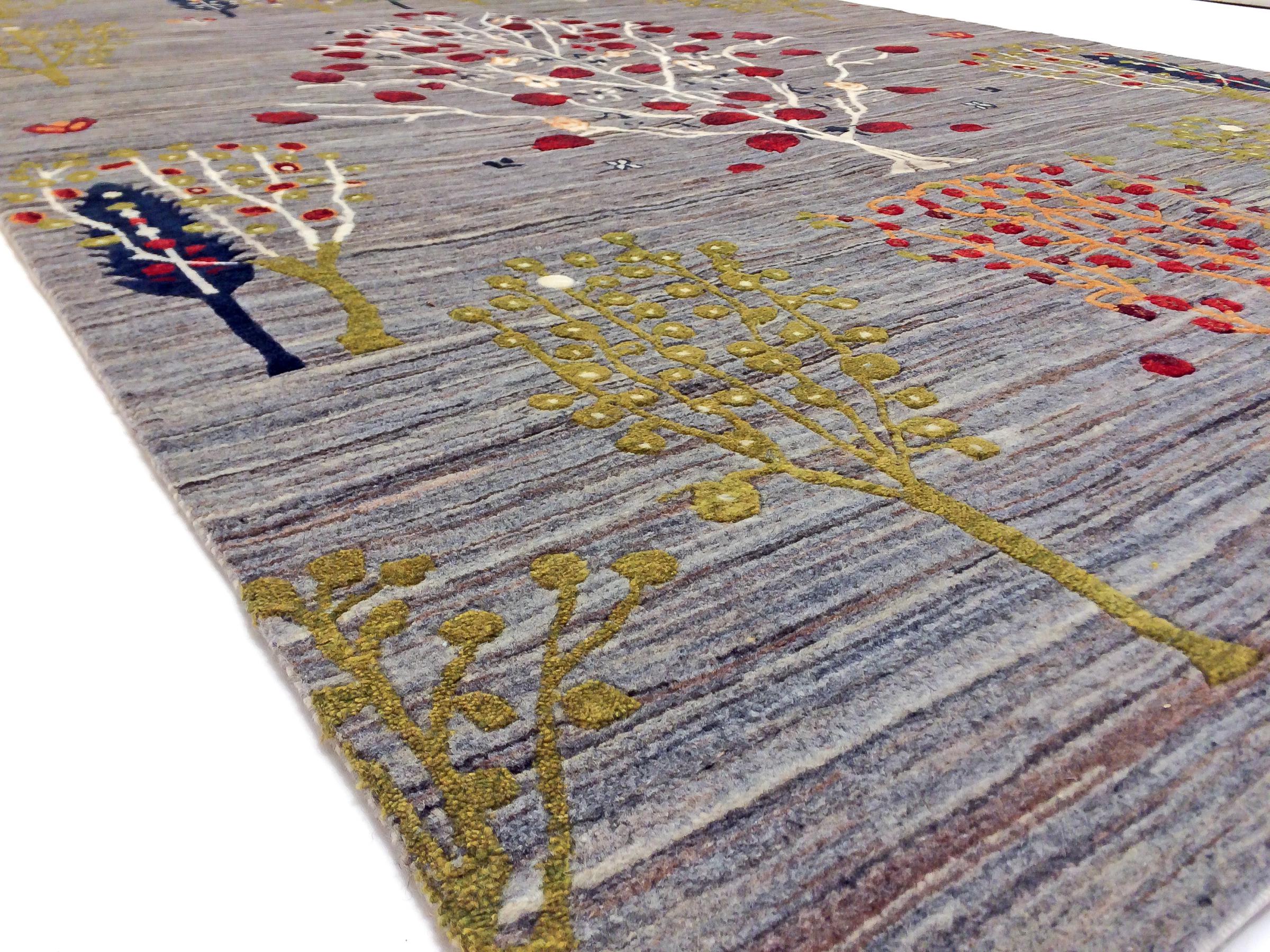 Dette smukke Gabbeh-tæppe blev håndknyttet i Indien. Indiske Gabbeh-tæpper er lavet af blød fåruld, er behagelige på fødderne og har varmeisolerende egenskaber. De fleste af deres design er enkle og tidløst moderne. De blev inspireret af nomadiske folk, der lader meget enkle motiver fra deres omgivelser passere ind i tæpperne. Indiske Gabbeh-tæpper matcher ikke helt kvaliteten på en persisk Gabbeh, men de har et meget godt pris-ydelsesforhold. Dette gør dem ideelle som et håndknyttet tæppe på indgangsniveau.