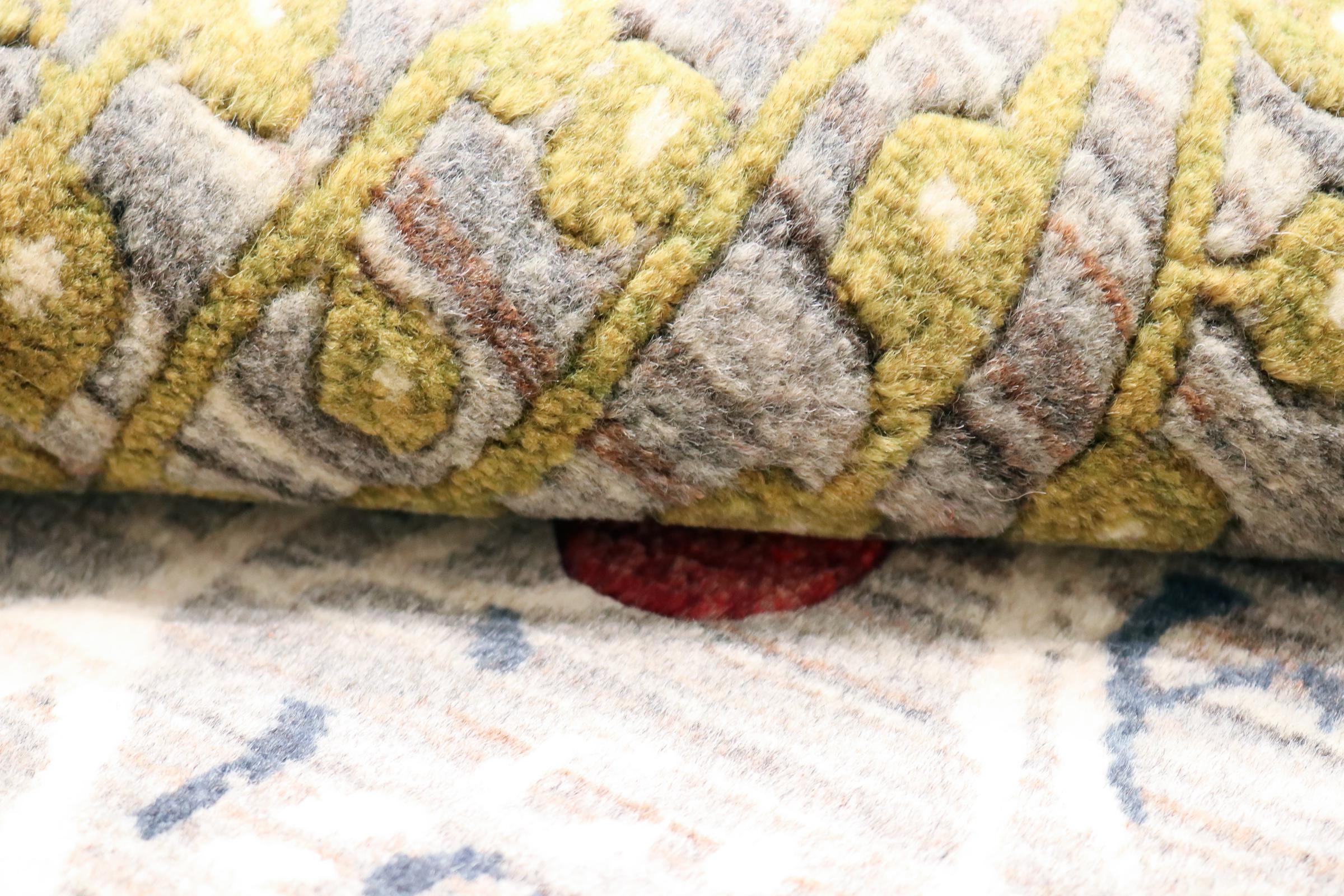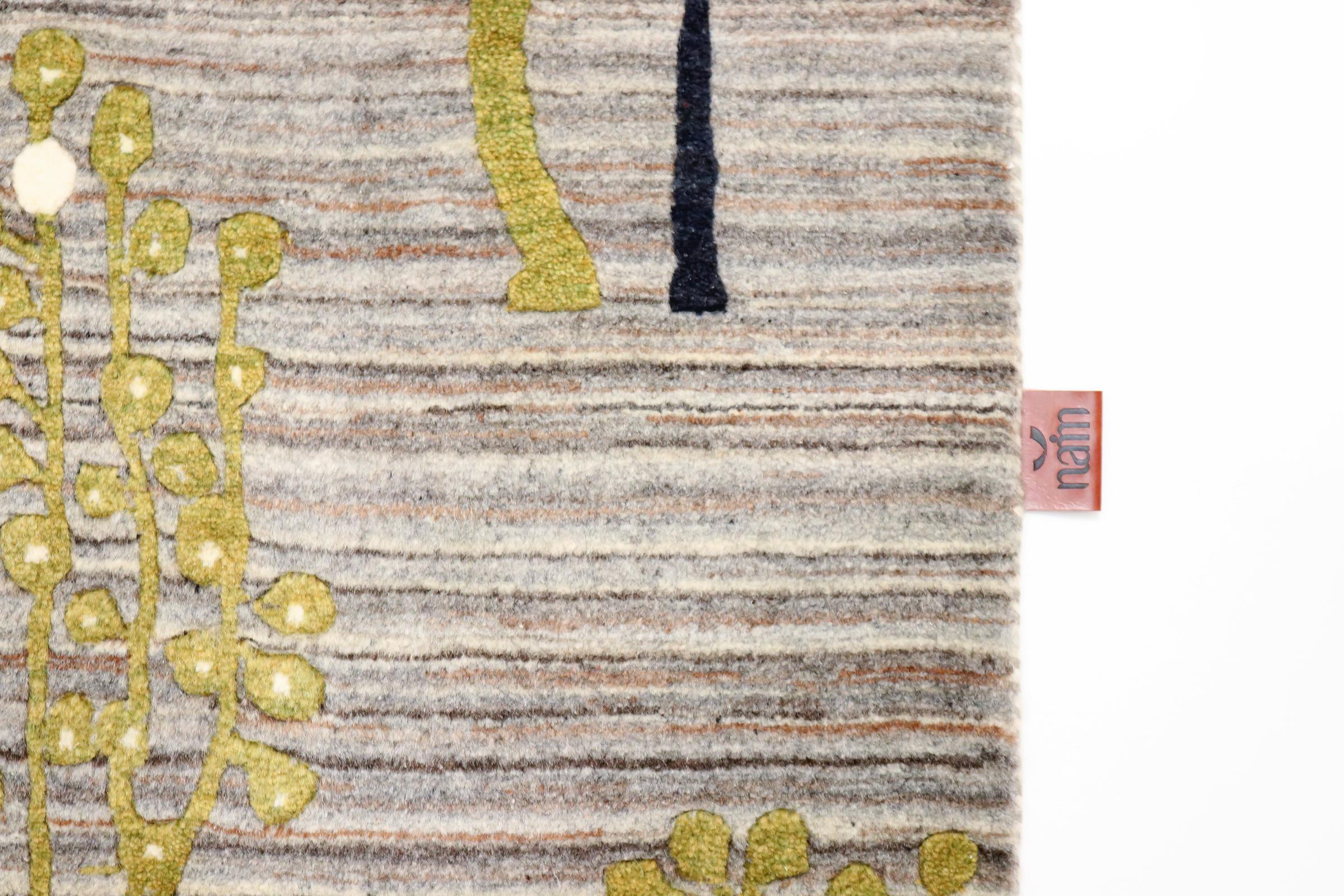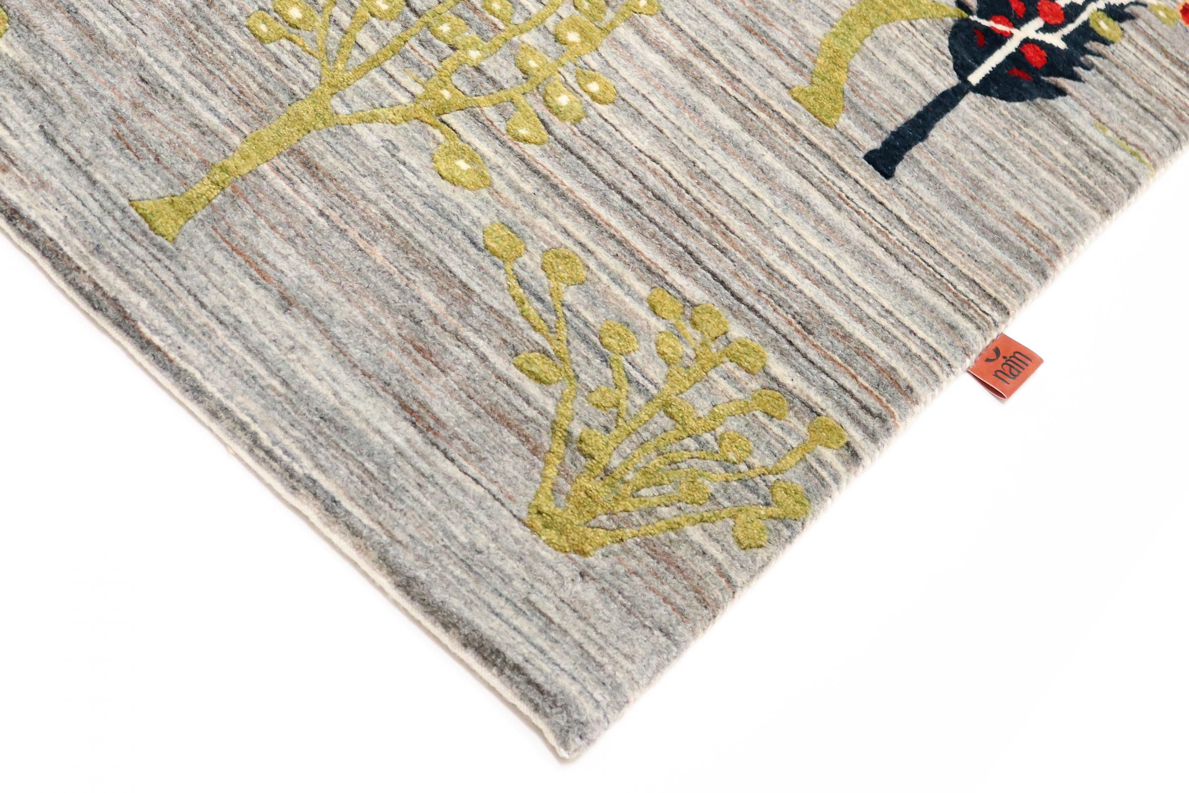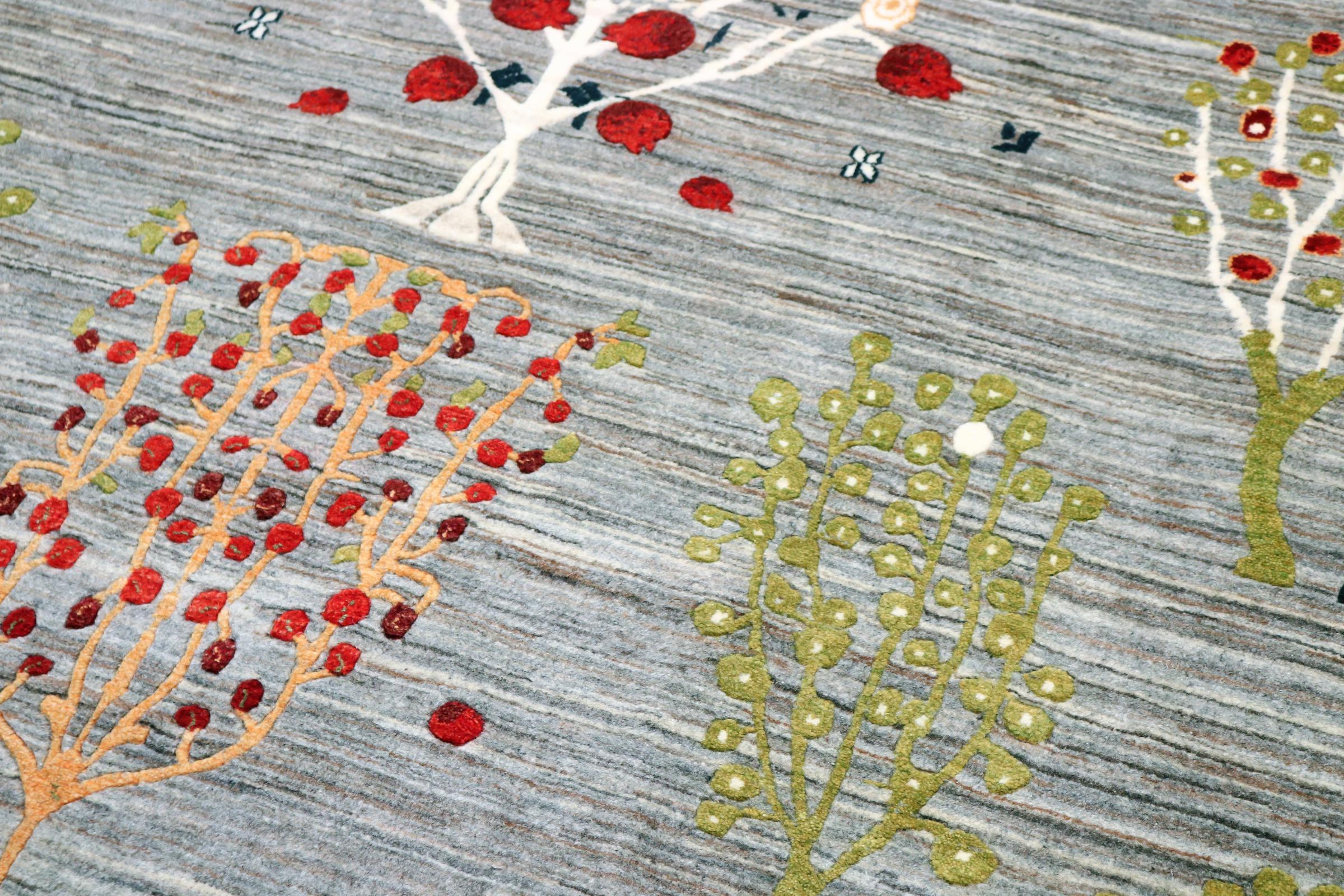 Dette smukke Gabbeh-tæppe blev håndknyttet i Indien. Indiske Gabbeh-tæpper er lavet af blød fåruld, er behagelige på fødderne og har varmeisolerende egenskaber. De fleste af deres design er enkle og tidløst moderne. De blev inspireret af nomadiske folk, der lader meget enkle motiver fra deres omgivelser passere ind i tæpperne. Indiske Gabbeh-tæpper matcher ikke helt kvaliteten på en persisk Gabbeh, men de har et meget godt pris-ydelsesforhold. Dette gør dem ideelle som et håndknyttet tæppe på indgangsniveau.