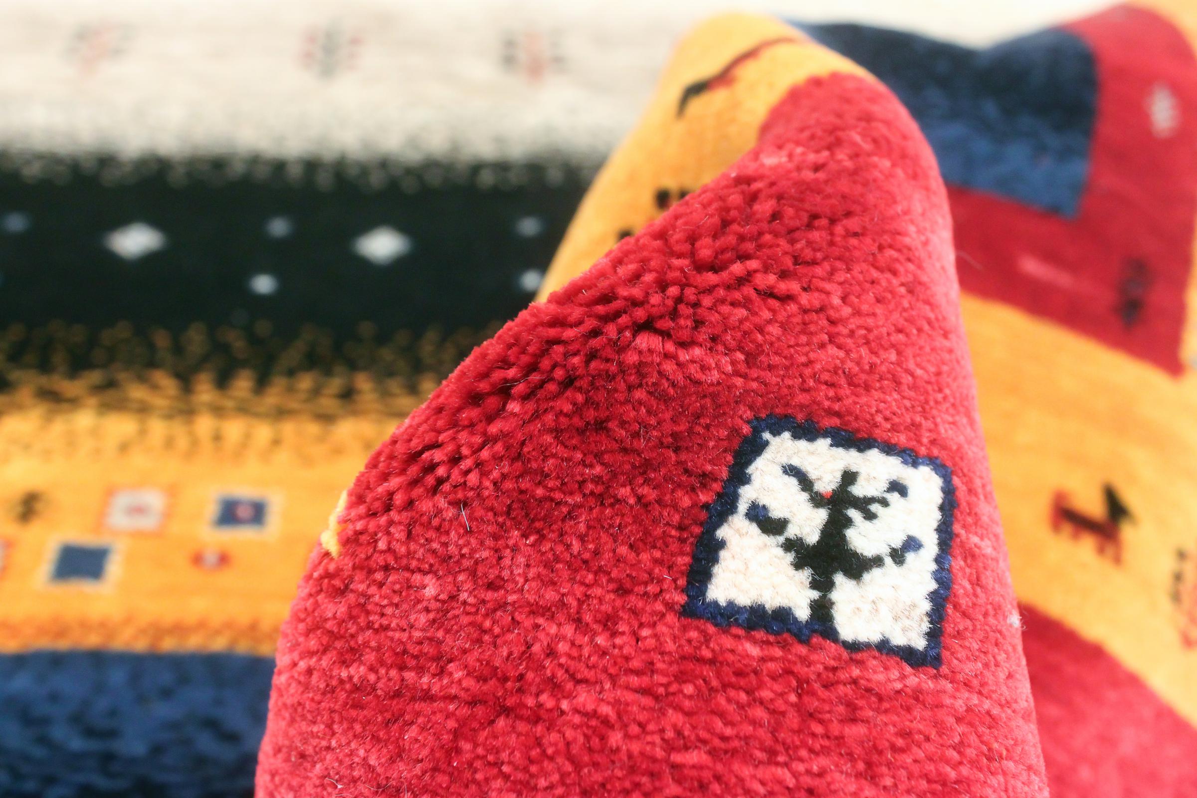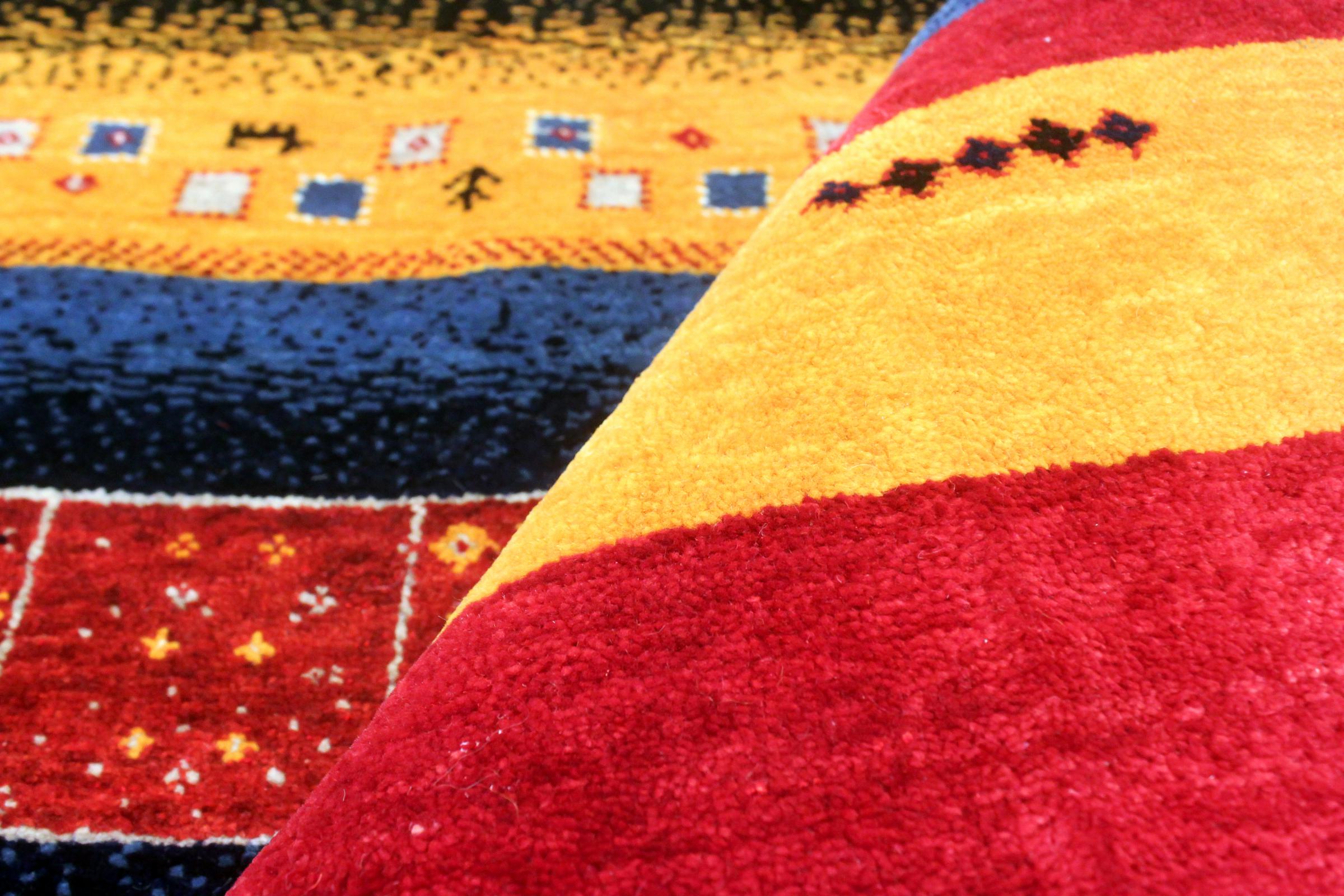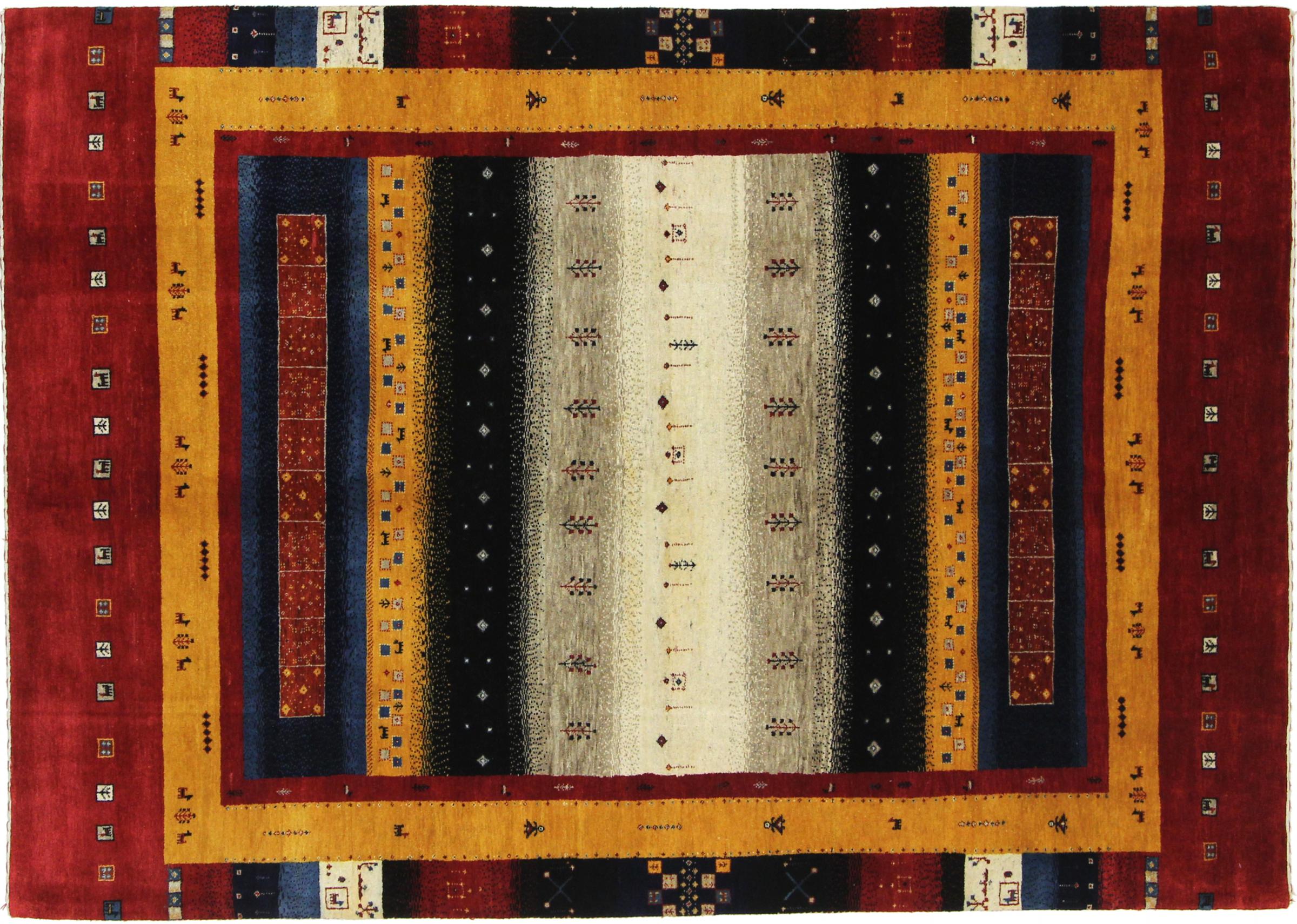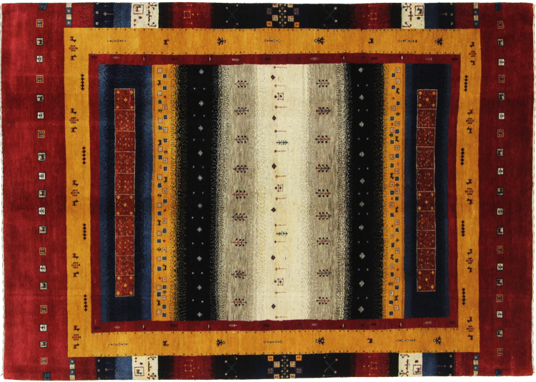 Dette smukke Gabbeh-tæppe blev håndknyttet i Indien. Indiske Gabbeh-tæpper er lavet af blød fåruld, er behagelige på fødderne og har varmeisolerende egenskaber. De fleste af deres design er enkle og tidløst moderne. De blev inspireret af nomadiske folk, der lader meget enkle motiver fra deres omgivelser passere ind i tæpperne. Indiske Gabbeh-tæpper matcher ikke helt kvaliteten på en persisk Gabbeh, men de har et meget godt pris-ydelsesforhold. Dette gør dem ideelle som et håndknyttet tæppe på indgangsniveau.