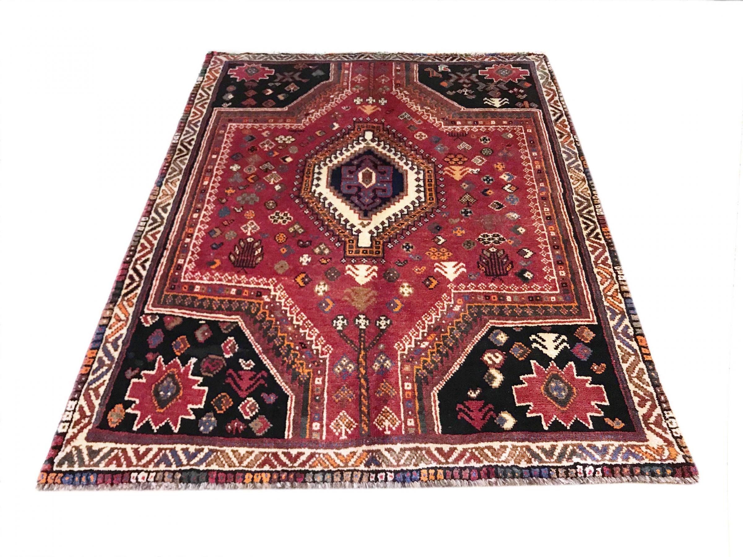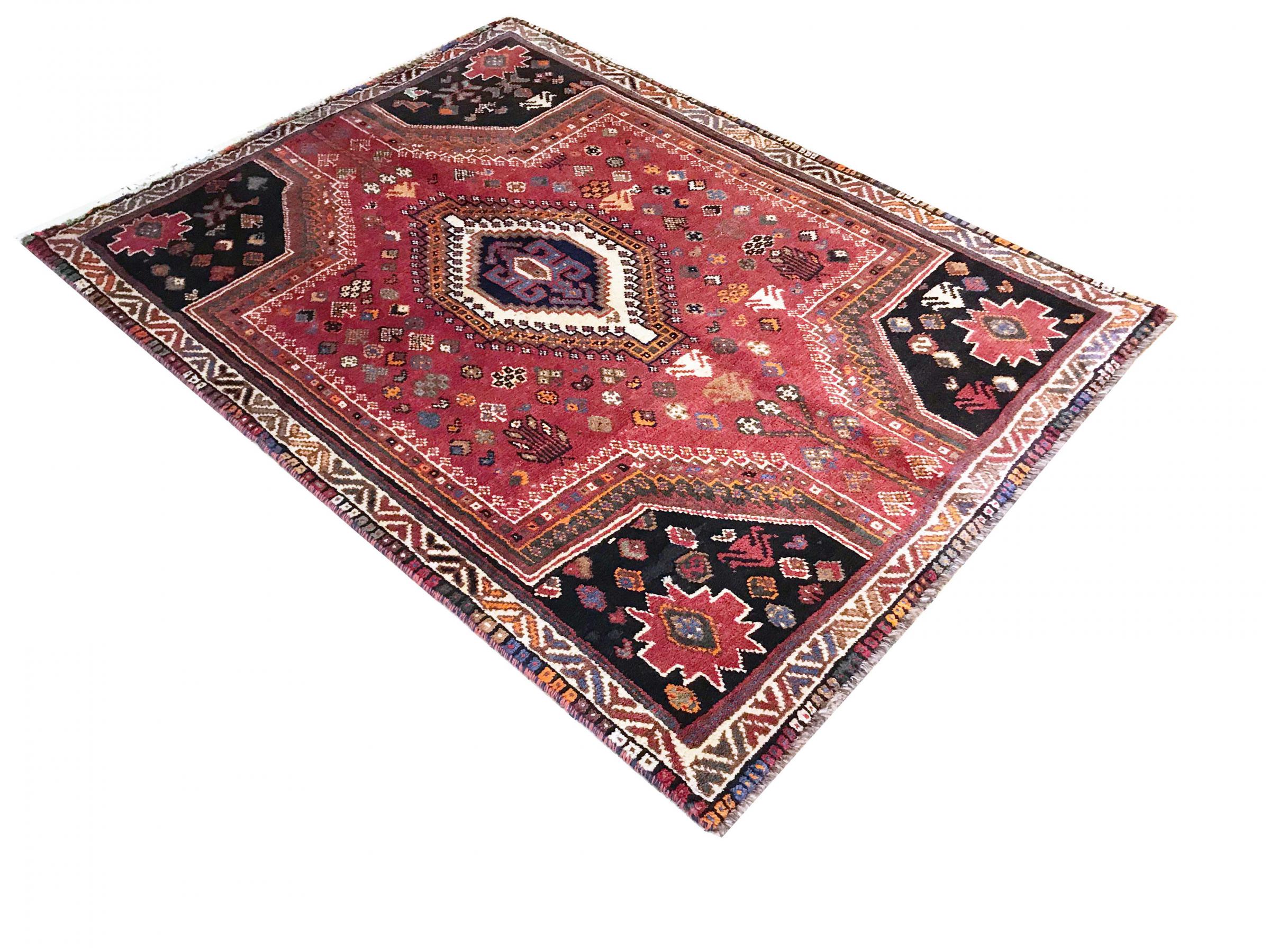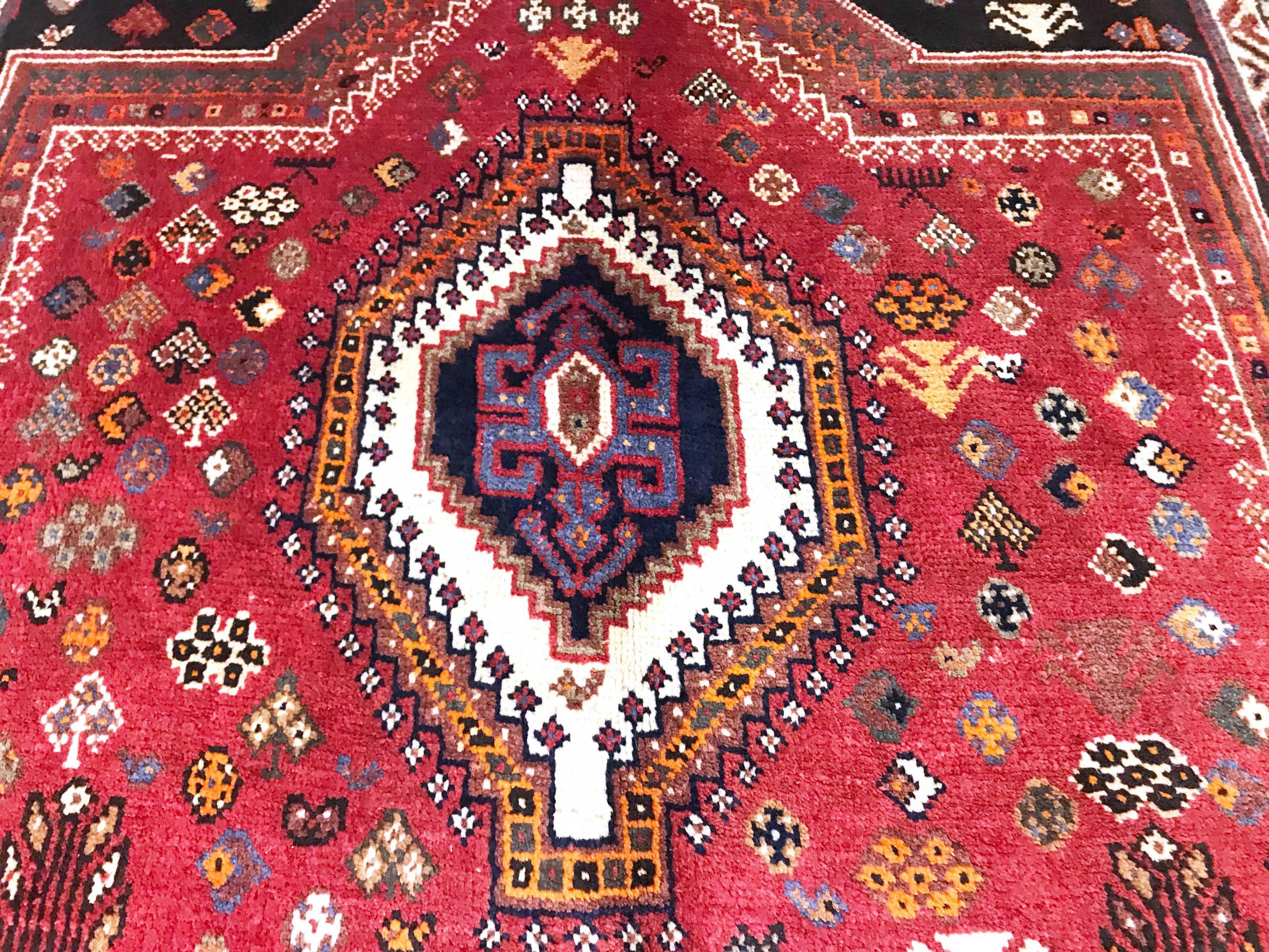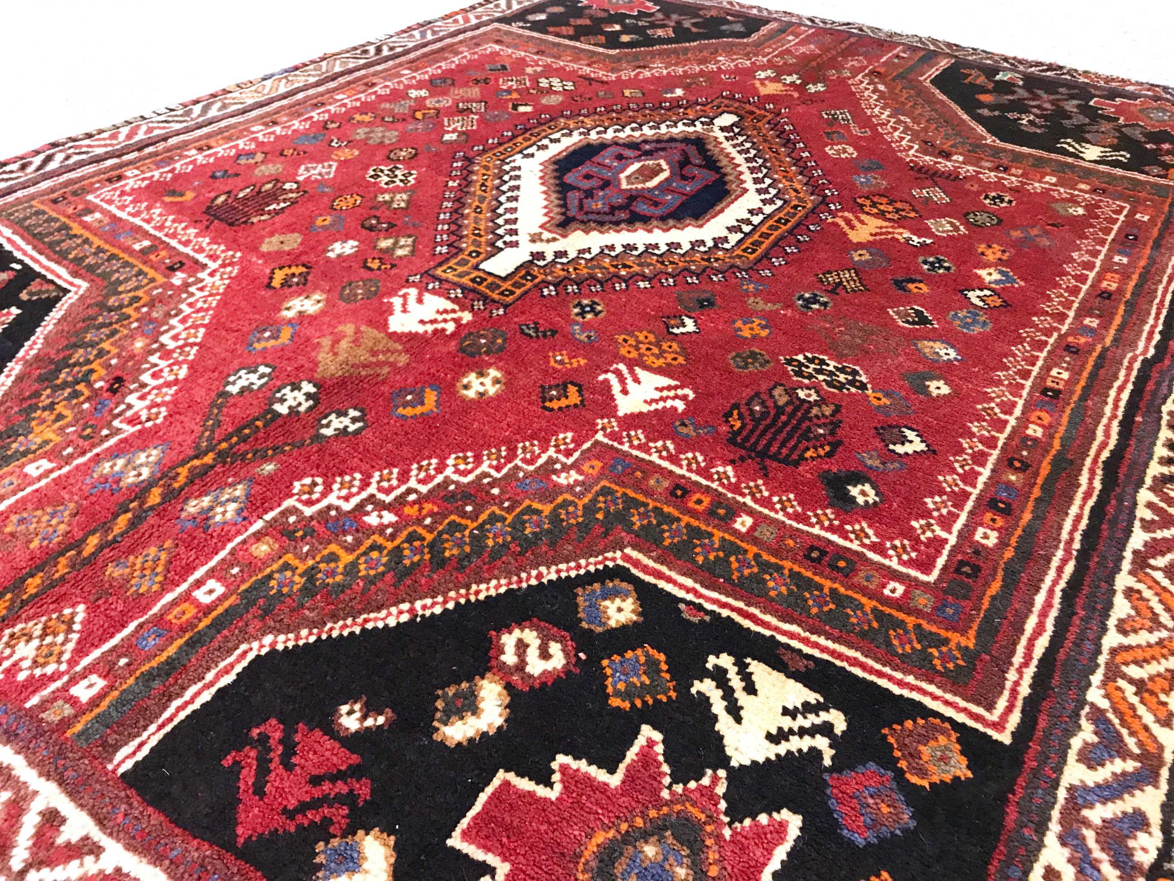 Denne Ghashghai er en blikfang. Dens farver og mønstre afspejler livet afGhaschghai nomaderne fra Iran, der bor hovedsageligt i nærheden af byen Shiraz. Lad et stykke af iransk kultur komme til dit eget hjem og overbevis dig selv af dens høje kvalitet.