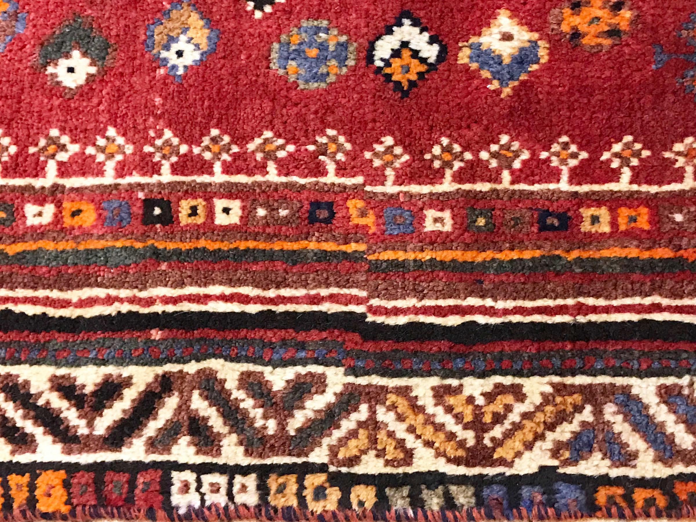 Dette tæppe hører til landsby- og nomadetæpper fra Iran, tidligere Persien. Denne type tæppe er håndknyttet i små byer og landsbyer i den gamle tradition. Nomader fremstiller også persiske tæpper under den åbne himmel. Tæpperne er knudt helt fra hovedet uden en skabelon. De er kendetegnet ved klassiske ornamenter, der er opstillet i lineære og geometriske mønstre. Takket være deres kulturelle og traditionelle oprindelse har disse tæpper en unik karakter, der udgør det gamle Persien.