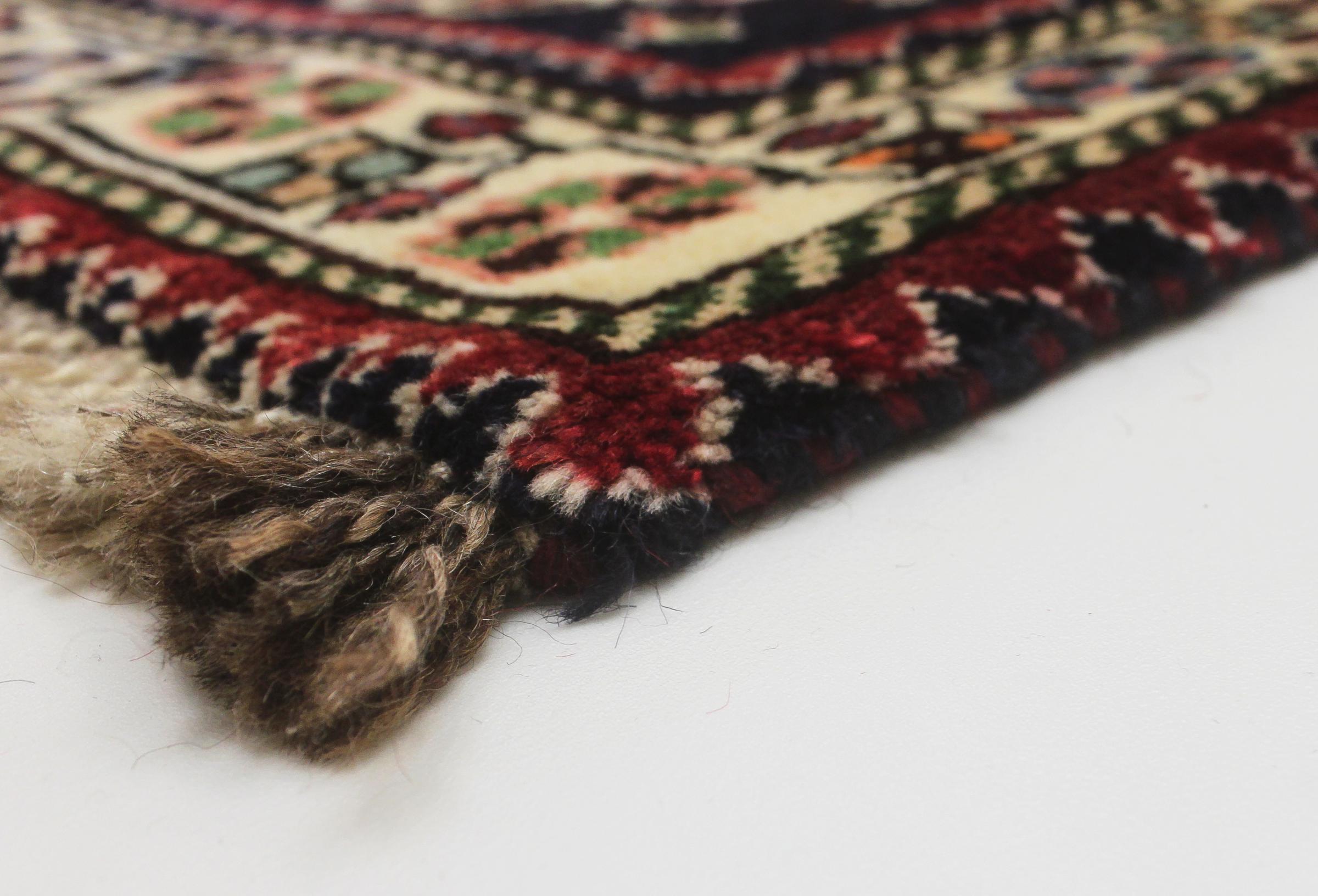 Dette tæppe hører til landsby- og nomadetæpper fra Iran, tidligere Persien. Denne type tæppe er håndknyttet i små byer og landsbyer i den gamle tradition. Nomader fremstiller også persiske tæpper under den åbne himmel. Tæpperne er knudt helt fra hovedet uden en skabelon. De er kendetegnet ved klassiske ornamenter, der er opstillet i lineære og geometriske mønstre. Takket være deres kulturelle og traditionelle oprindelse har disse tæpper en unik karakter, der udgør det gamle Persien.
