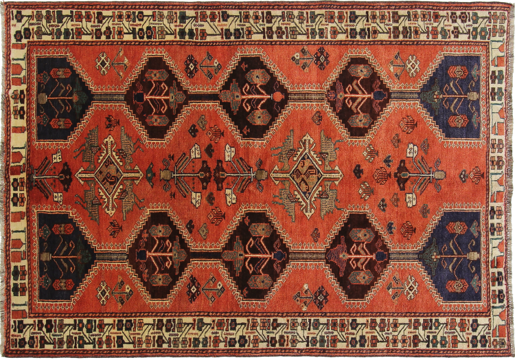 Dette tæppe hører til landsby- og nomadetæpper fra Iran, tidligere Persien. Denne type tæppe er håndknyttet i små byer og landsbyer i den gamle tradition. Nomader fremstiller også persiske tæpper under den åbne himmel. Tæpperne er knudt helt fra hovedet uden en skabelon. De er kendetegnet ved klassiske ornamenter, der er opstillet i lineære og geometriske mønstre. Takket være deres kulturelle og traditionelle oprindelse har disse tæpper en unik karakter, der udgør det gamle Persien.