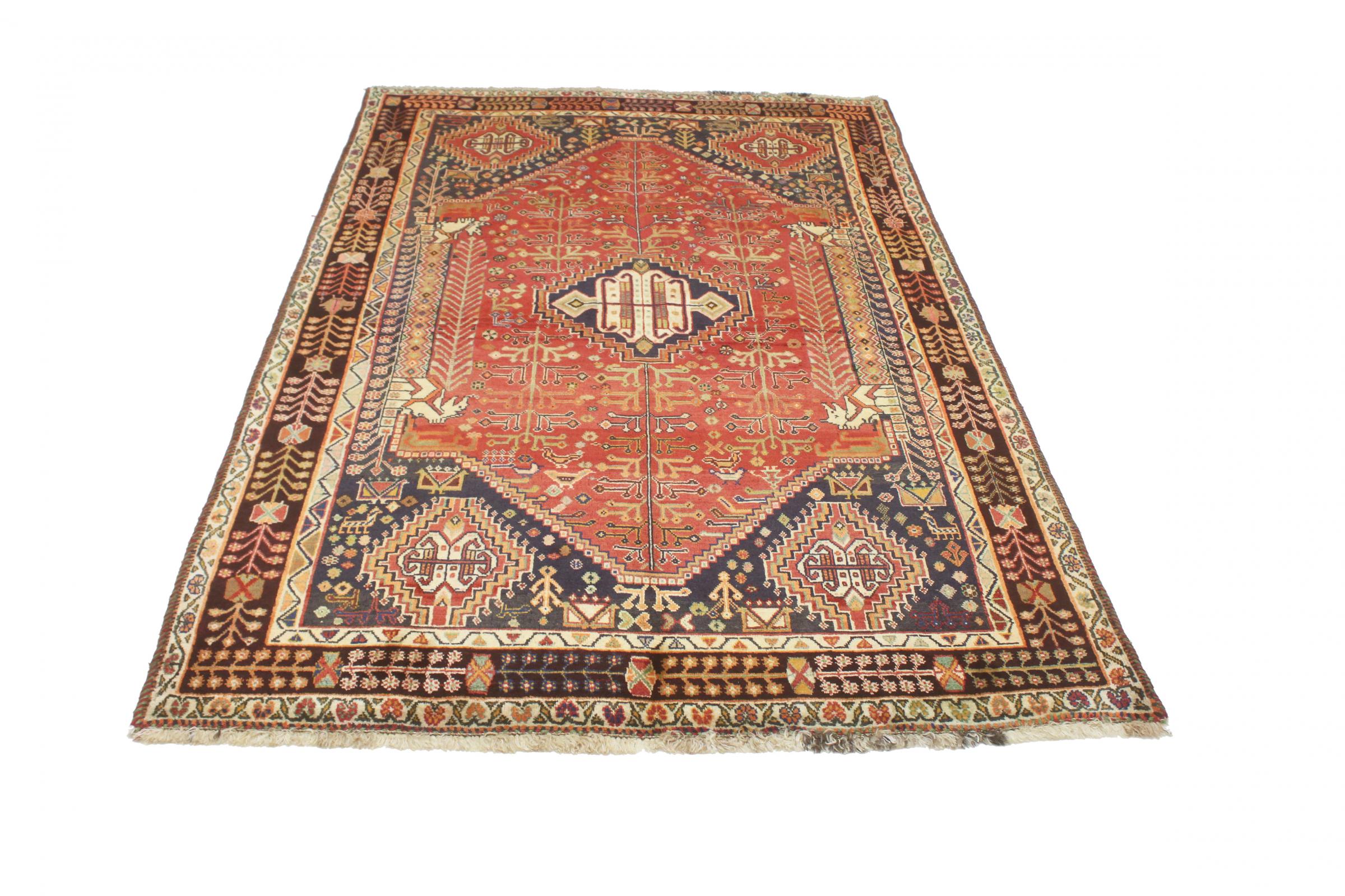 Dette tæppe hører til landsby- og nomadetæpper fra Iran, tidligere Persien. Denne type tæppe er håndknyttet i små byer og landsbyer i den gamle tradition. Nomader fremstiller også persiske tæpper under den åbne himmel. Tæpperne er knudt helt fra hovedet uden en skabelon. De er kendetegnet ved klassiske ornamenter, der er opstillet i lineære og geometriske mønstre. Takket være deres kulturelle og traditionelle oprindelse har disse tæpper en unik karakter, der udgør det gamle Persien.