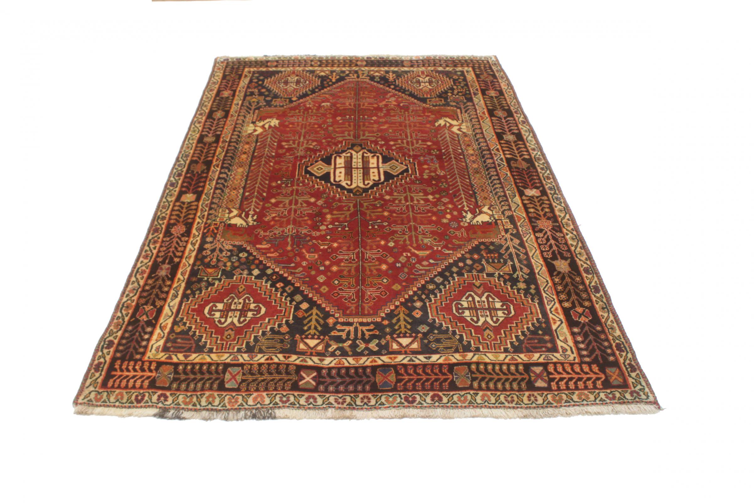 Denne Ghashghai er en blikfang. Dens farver og mønstre afspejler livet afGhaschghai nomaderne fra Iran, der bor hovedsageligt i nærheden af byen Shiraz. Lad et stykke af iransk kultur komme til dit eget hjem og overbevis dig selv af dens høje kvalitet.