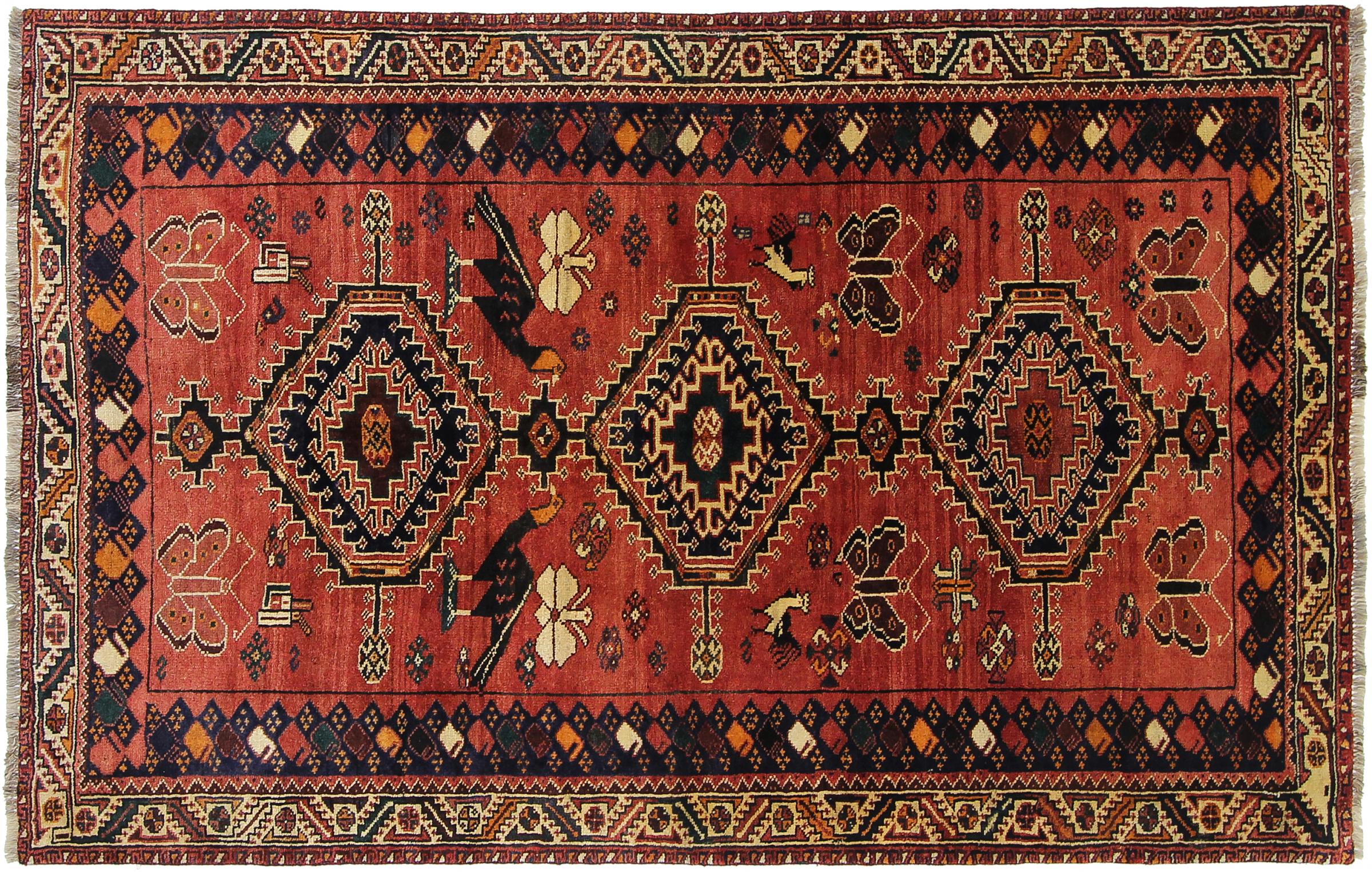Dette tæppe hører til landsby- og nomadetæpper fra Iran, tidligere Persien. Denne type tæppe er håndknyttet i små byer og landsbyer i den gamle tradition. Nomader fremstiller også persiske tæpper under den åbne himmel. Tæpperne er knudt helt fra hovedet uden en skabelon. De er kendetegnet ved klassiske ornamenter, der er opstillet i lineære og geometriske mønstre. Takket være deres kulturelle og traditionelle oprindelse har disse tæpper en unik karakter, der udgør det gamle Persien.
