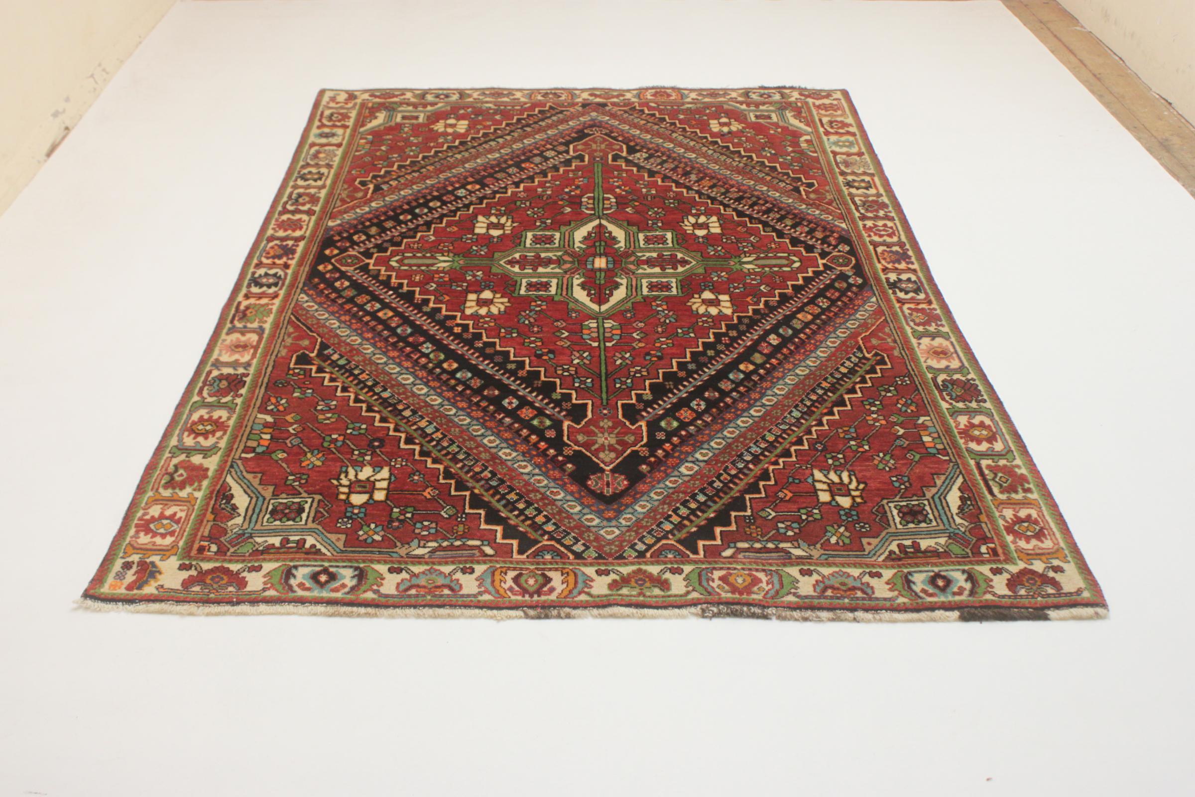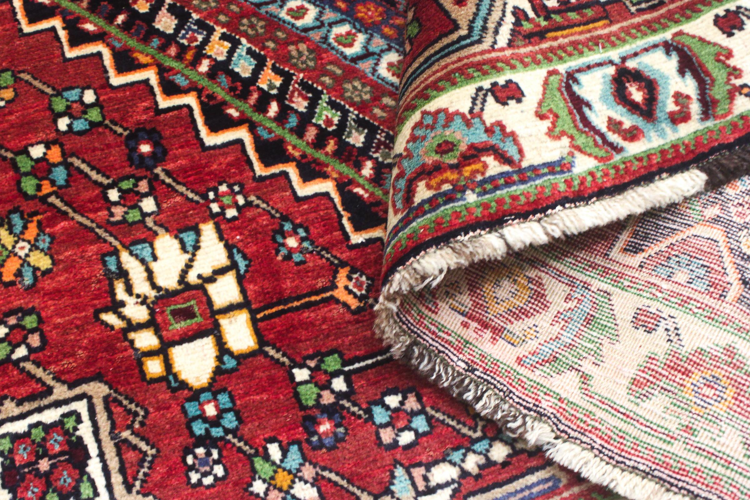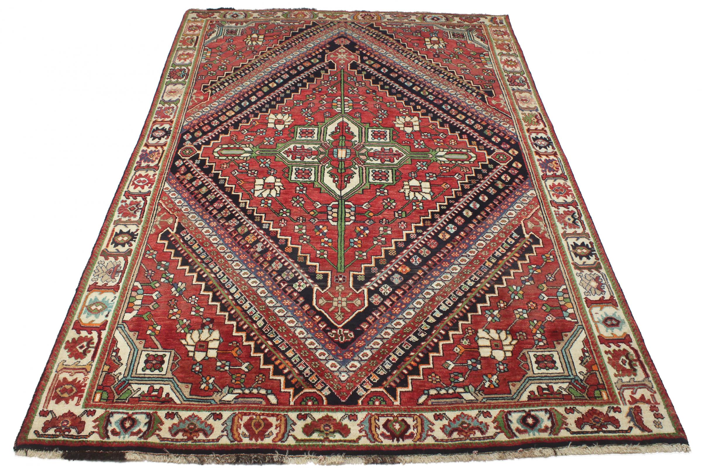 Dette tæppe hører til landsby- og nomadetæpper fra Iran, tidligere Persien. Denne type tæppe er håndknyttet i små byer og landsbyer i den gamle tradition. Nomader fremstiller også persiske tæpper under den åbne himmel. Tæpperne er knudt helt fra hovedet uden en skabelon. De er kendetegnet ved klassiske ornamenter, der er opstillet i lineære og geometriske mønstre. Takket være deres kulturelle og traditionelle oprindelse har disse tæpper en unik karakter, der udgør det gamle Persien.