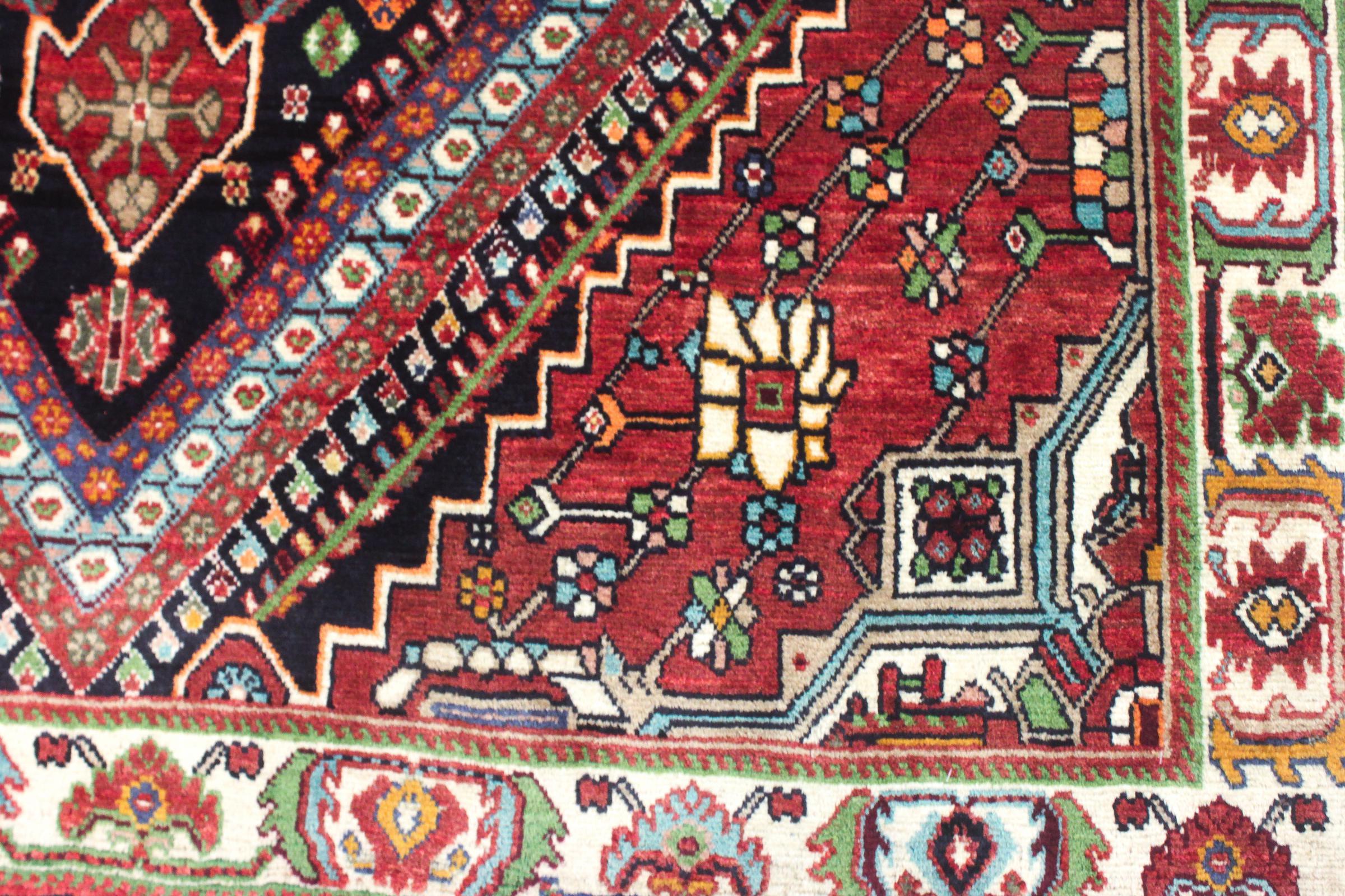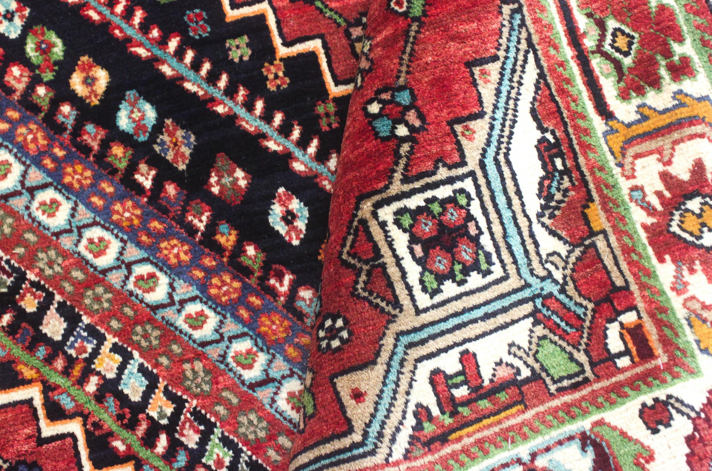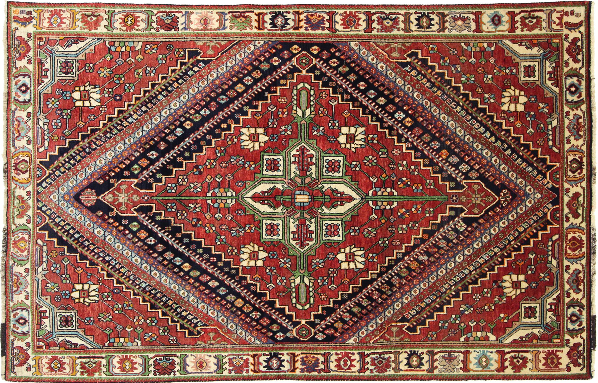 Dette tæppe hører til landsby- og nomadetæpper fra Iran, tidligere Persien. Denne type tæppe er håndknyttet i små byer og landsbyer i den gamle tradition. Nomader fremstiller også persiske tæpper under den åbne himmel. Tæpperne er knudt helt fra hovedet uden en skabelon. De er kendetegnet ved klassiske ornamenter, der er opstillet i lineære og geometriske mønstre. Takket være deres kulturelle og traditionelle oprindelse har disse tæpper en unik karakter, der udgør det gamle Persien.