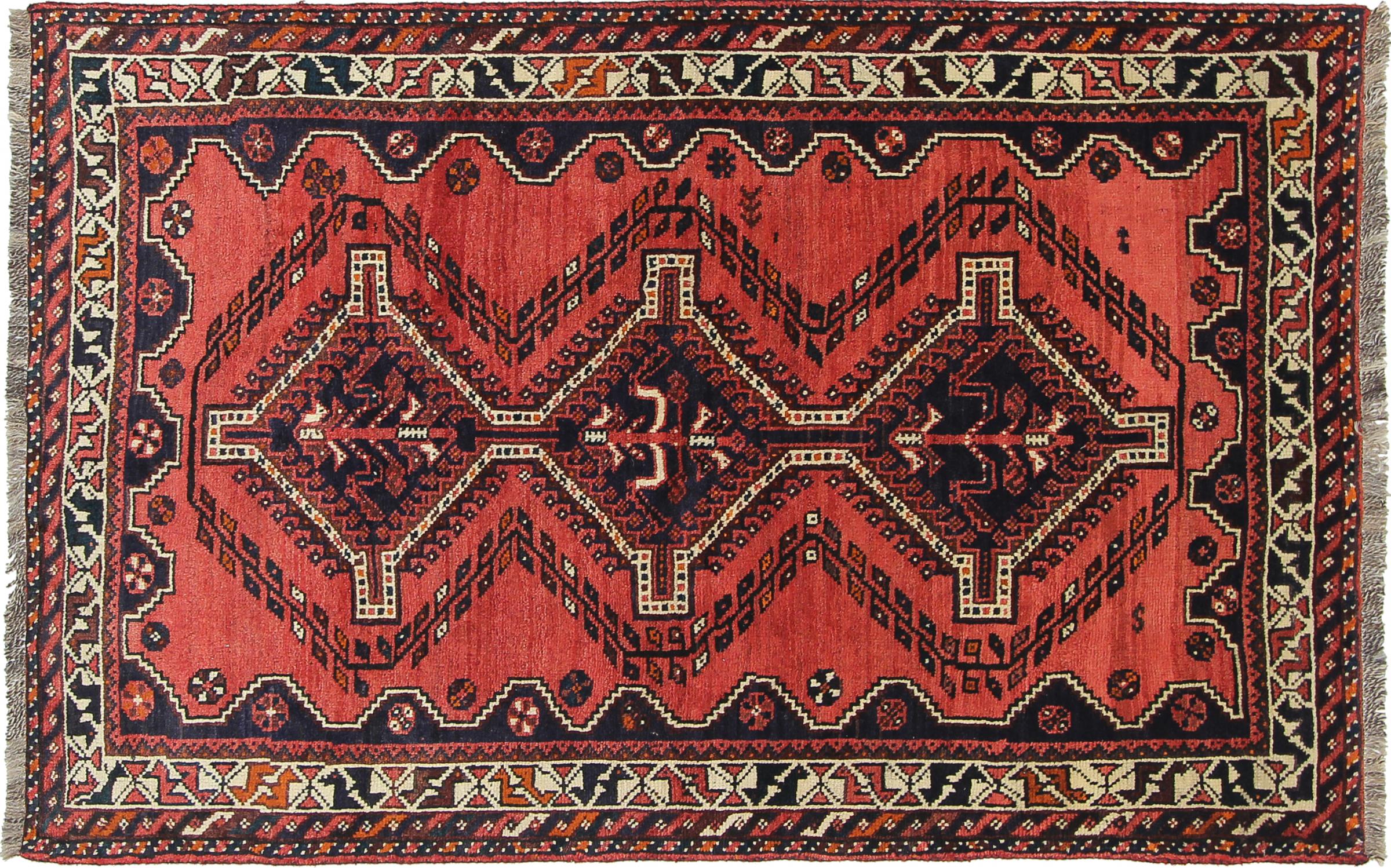 Dette tæppe hører til landsby- og nomadetæpper fra Iran, tidligere Persien. Denne type tæppe er håndknyttet i små byer og landsbyer i den gamle tradition. Nomader fremstiller også persiske tæpper under den åbne himmel. Tæpperne er knudt helt fra hovedet uden en skabelon. De er kendetegnet ved klassiske ornamenter, der er opstillet i lineære og geometriske mønstre. Takket være deres kulturelle og traditionelle oprindelse har disse tæpper en unik karakter, der udgør det gamle Persien.
