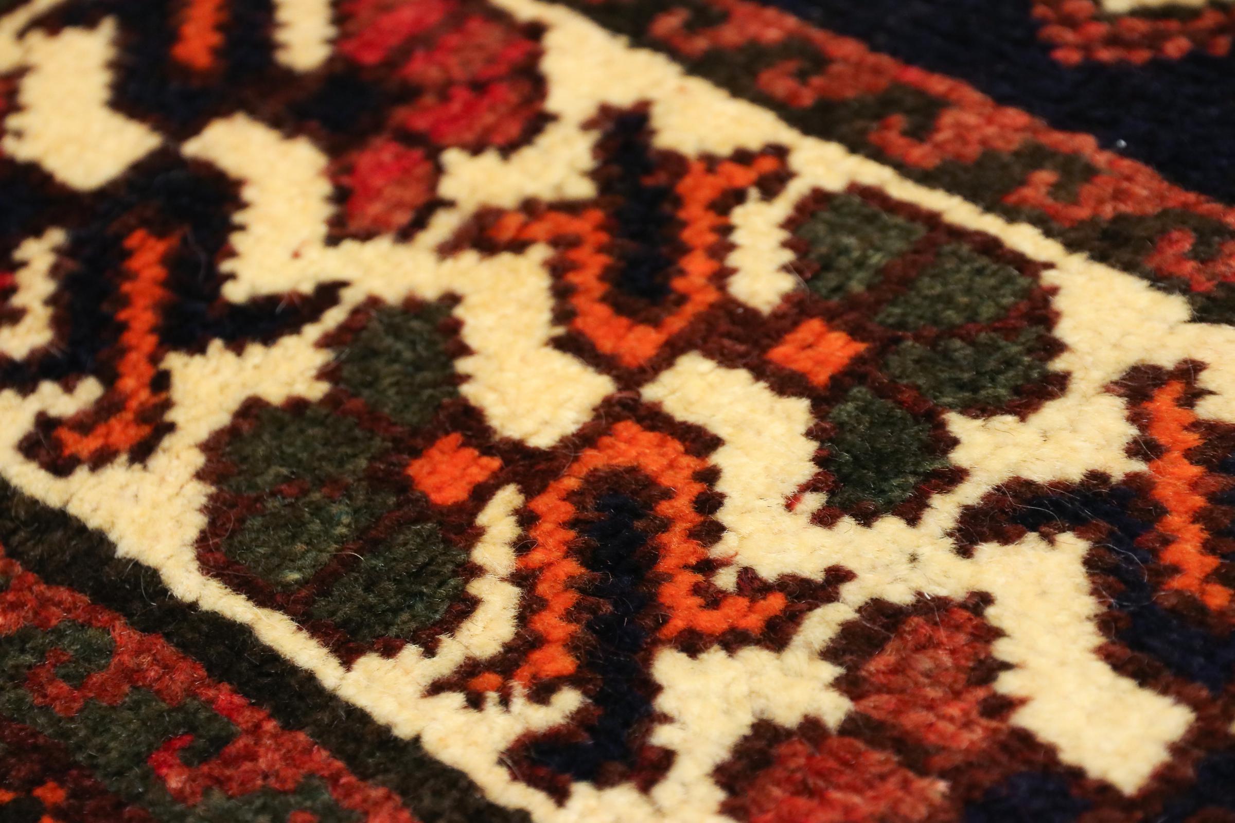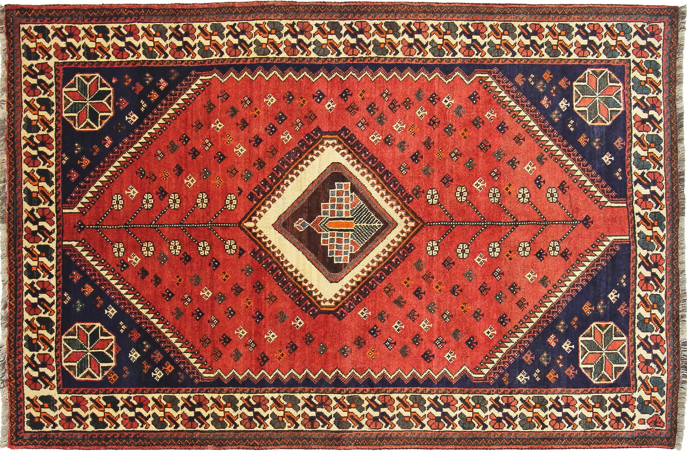 Dette tæppe hører til landsby- og nomadetæpper fra Iran, tidligere Persien. Denne type tæppe er håndknyttet i små byer og landsbyer i den gamle tradition. Nomader fremstiller også persiske tæpper under den åbne himmel. Tæpperne er knudt helt fra hovedet uden en skabelon. De er kendetegnet ved klassiske ornamenter, der er opstillet i lineære og geometriske mønstre. Takket være deres kulturelle og traditionelle oprindelse har disse tæpper en unik karakter, der udgør det gamle Persien.