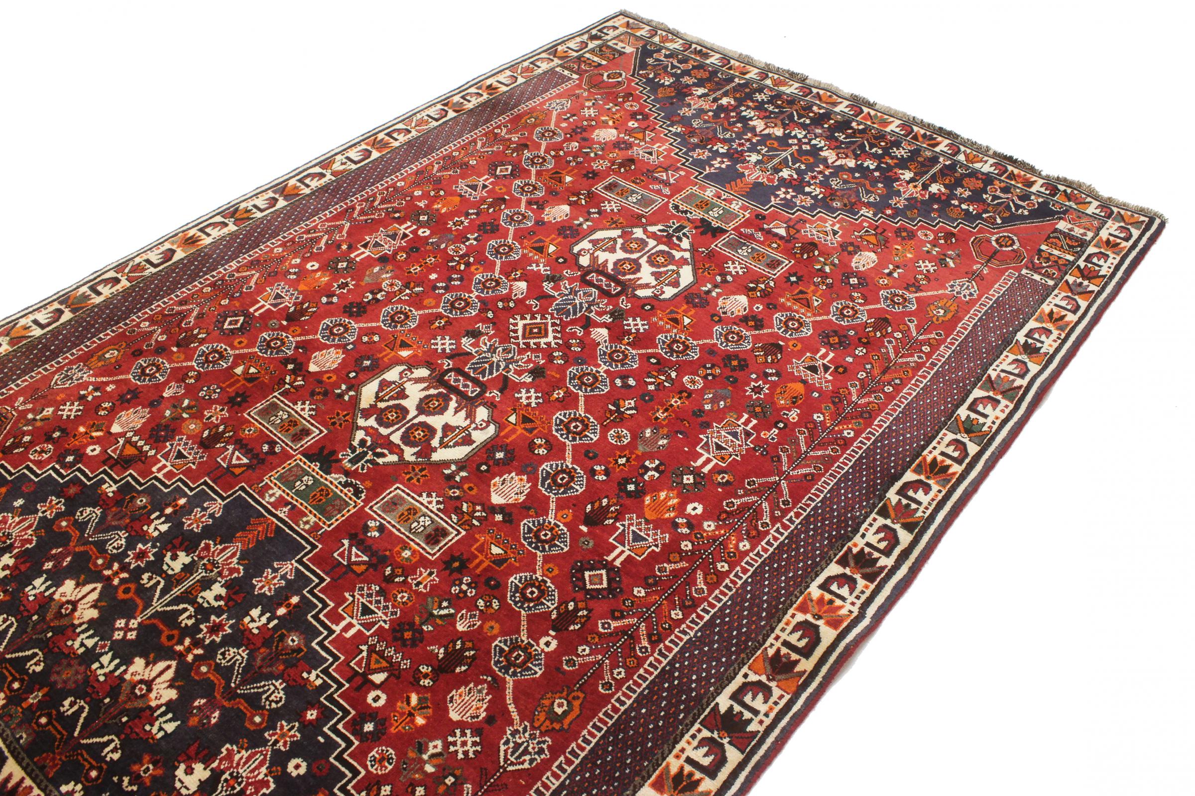 Denne Ghashghai er en blikfang. Dens farver og mønstre afspejler livet afGhaschghai nomaderne fra Iran, der bor hovedsageligt i nærheden af byen Shiraz. Lad et stykke af iransk kultur komme til dit eget hjem og overbevis dig selv af dens høje kvalitet.