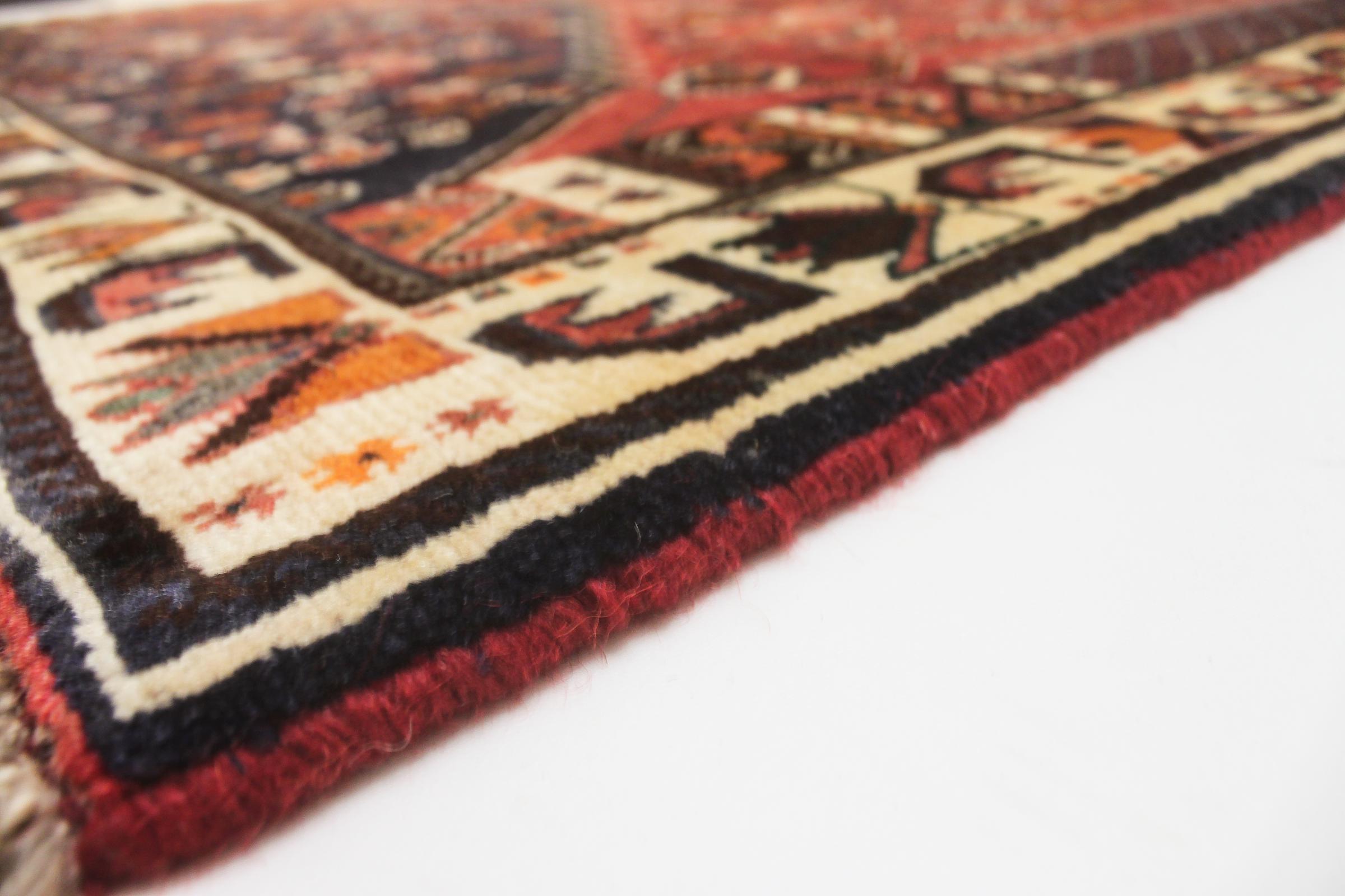 Dette tæppe hører til landsby- og nomadetæpper fra Iran, tidligere Persien. Denne type tæppe er håndknyttet i små byer og landsbyer i den gamle tradition. Nomader fremstiller også persiske tæpper under den åbne himmel. Tæpperne er knudt helt fra hovedet uden en skabelon. De er kendetegnet ved klassiske ornamenter, der er opstillet i lineære og geometriske mønstre. Takket være deres kulturelle og traditionelle oprindelse har disse tæpper en unik karakter, der udgør det gamle Persien.