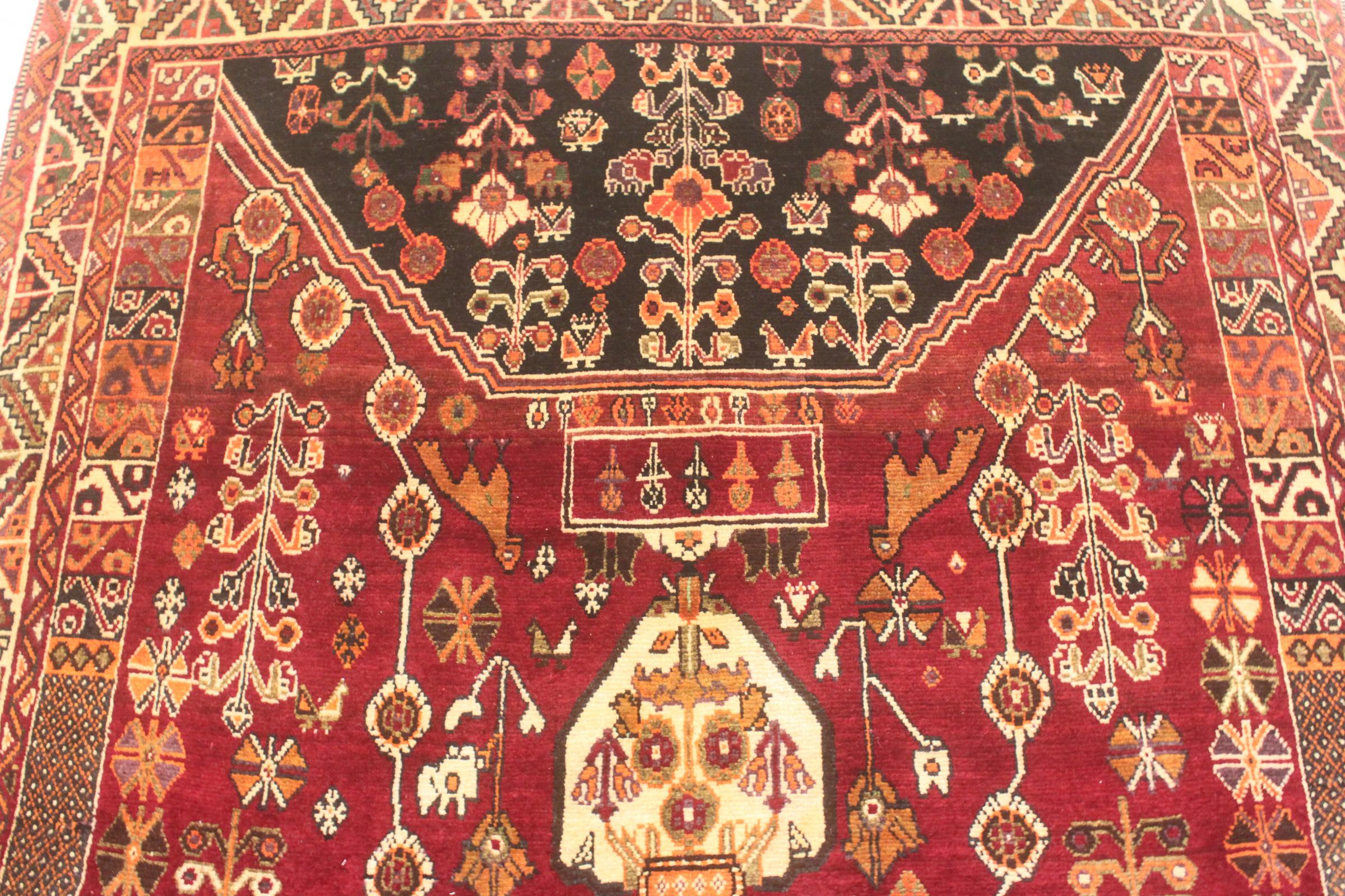 Dette tæppe hører til landsby- og nomadetæpper fra Iran, tidligere Persien. Denne type tæppe er håndknyttet i små byer og landsbyer i den gamle tradition. Nomader fremstiller også persiske tæpper under den åbne himmel. Tæpperne er knudt helt fra hovedet uden en skabelon. De er kendetegnet ved klassiske ornamenter, der er opstillet i lineære og geometriske mønstre. Takket være deres kulturelle og traditionelle oprindelse har disse tæpper en unik karakter, der udgør det gamle Persien.
