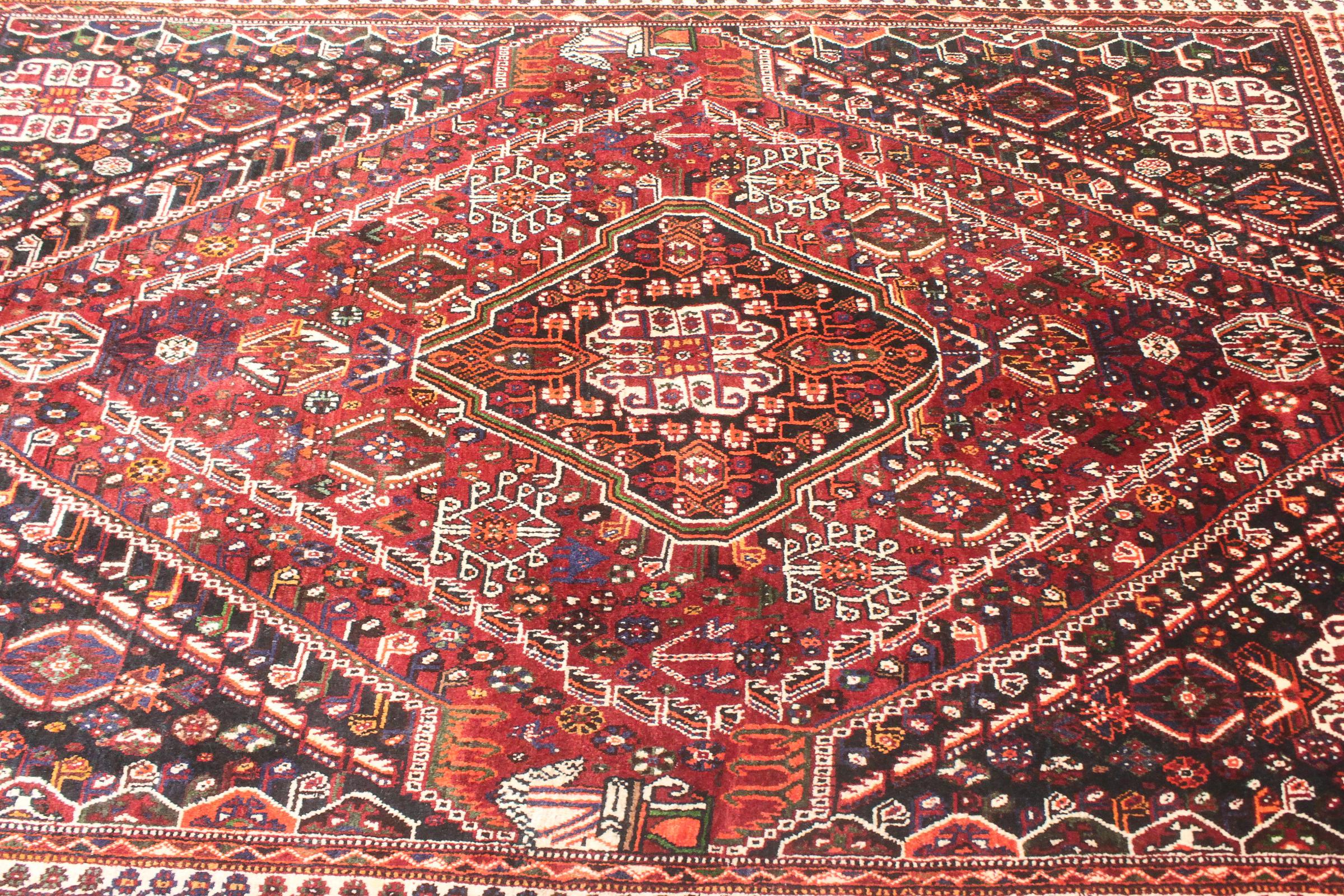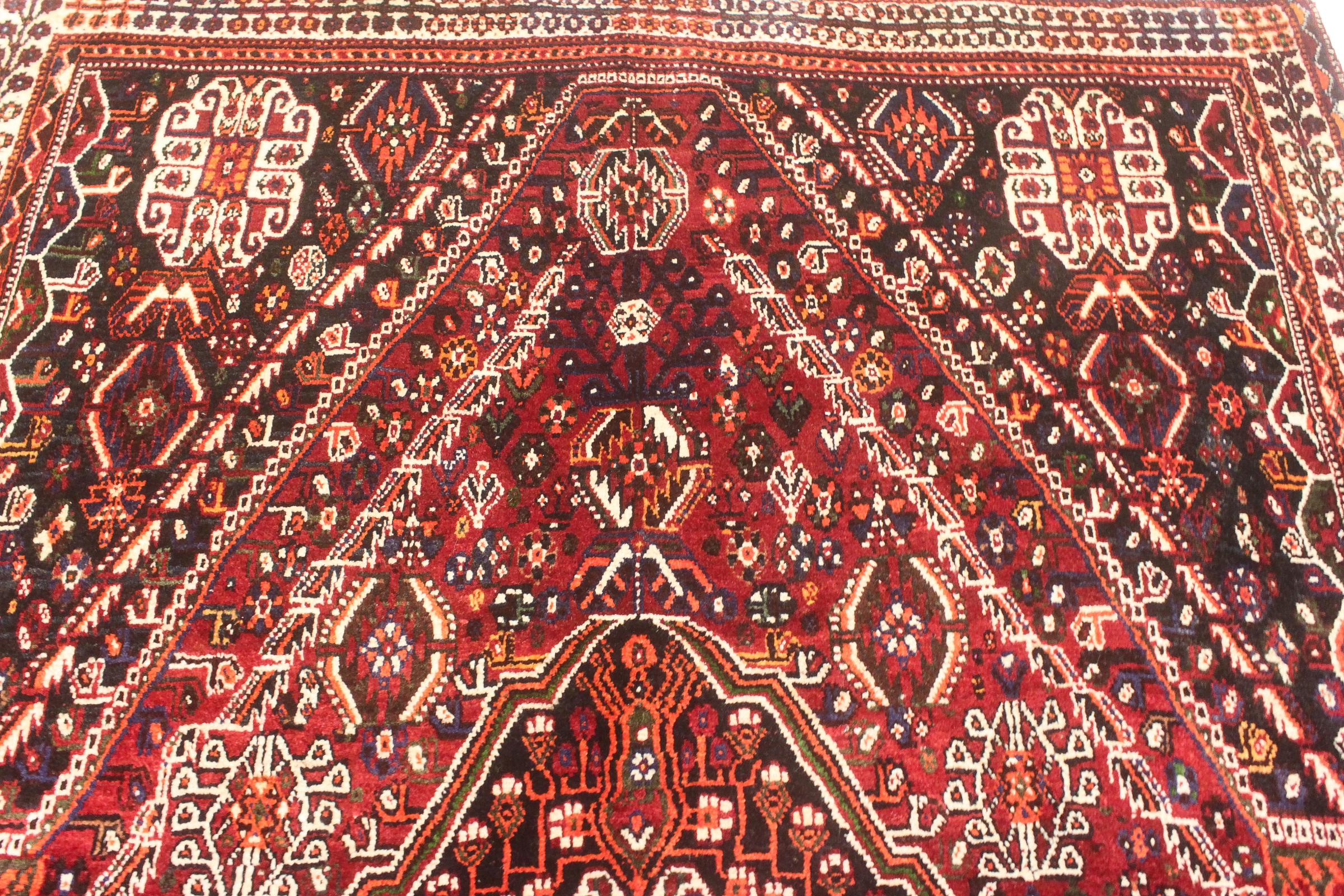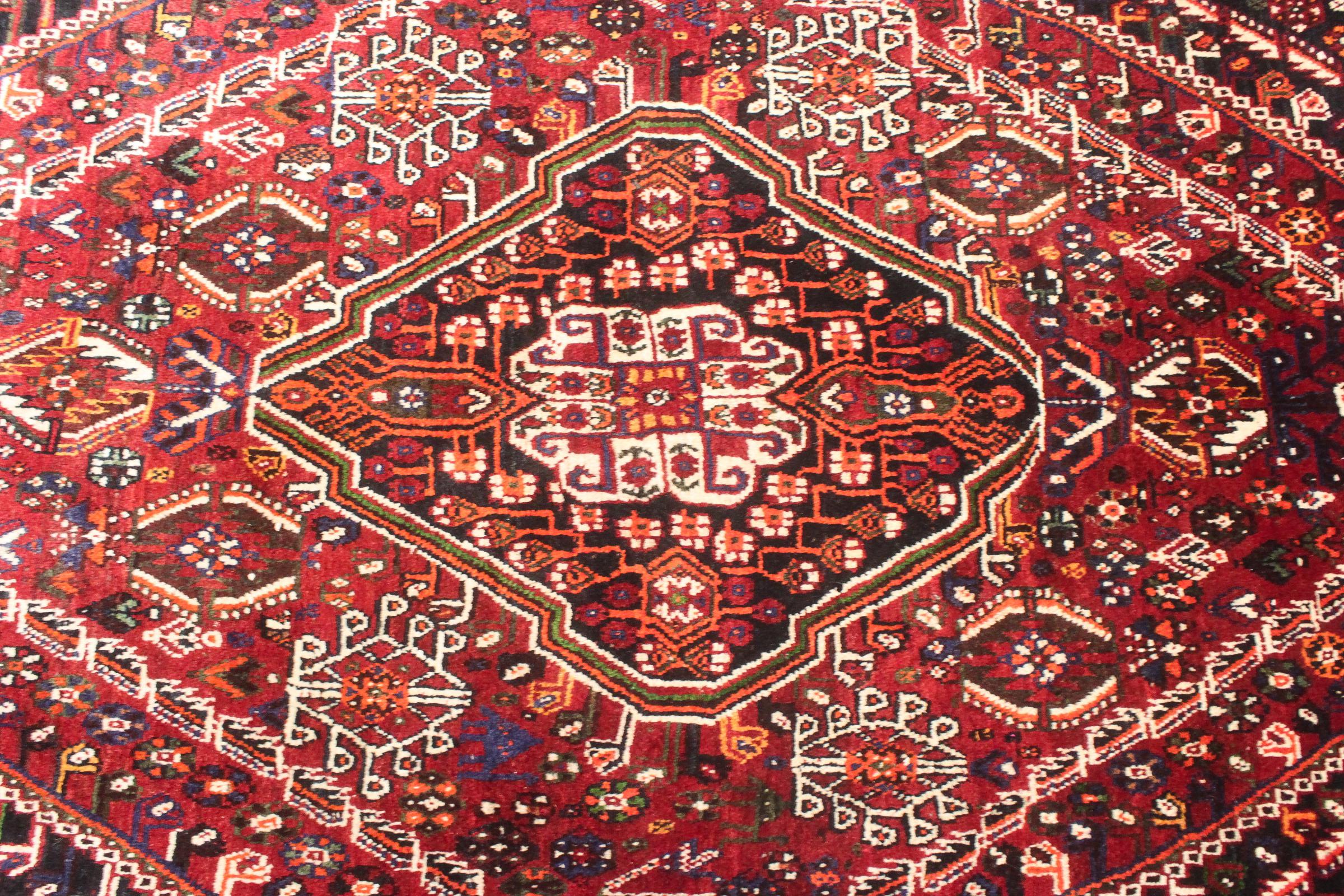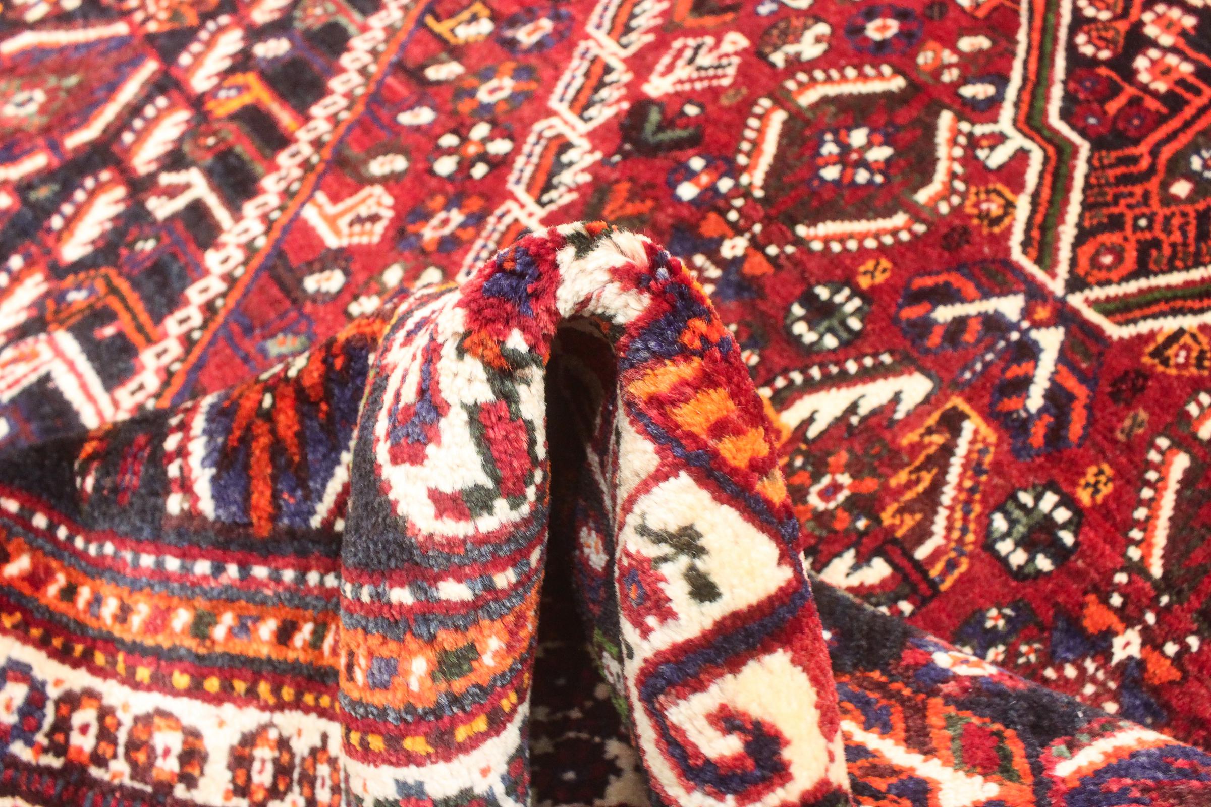 Denne Ghashghai er en blikfang. Dens farver og mønstre afspejler livet afGhaschghai nomaderne fra Iran, der bor hovedsageligt i nærheden af byen Shiraz. Lad et stykke af iransk kultur komme til dit eget hjem og overbevis dig selv af dens høje kvalitet.