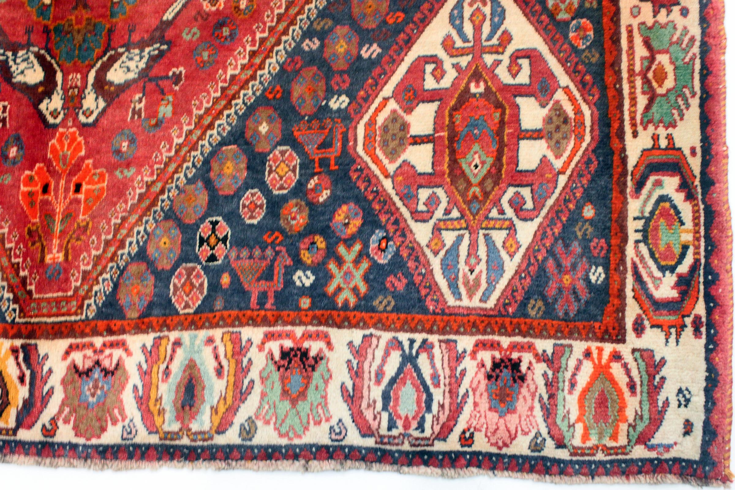 Denne Ghashghai er en blikfang. Dens farver og mønstre afspejler livet afGhaschghai nomaderne fra Iran, der bor hovedsageligt i nærheden af byen Shiraz. Lad et stykke af iransk kultur komme til dit eget hjem og overbevis dig selv af dens høje kvalitet.
