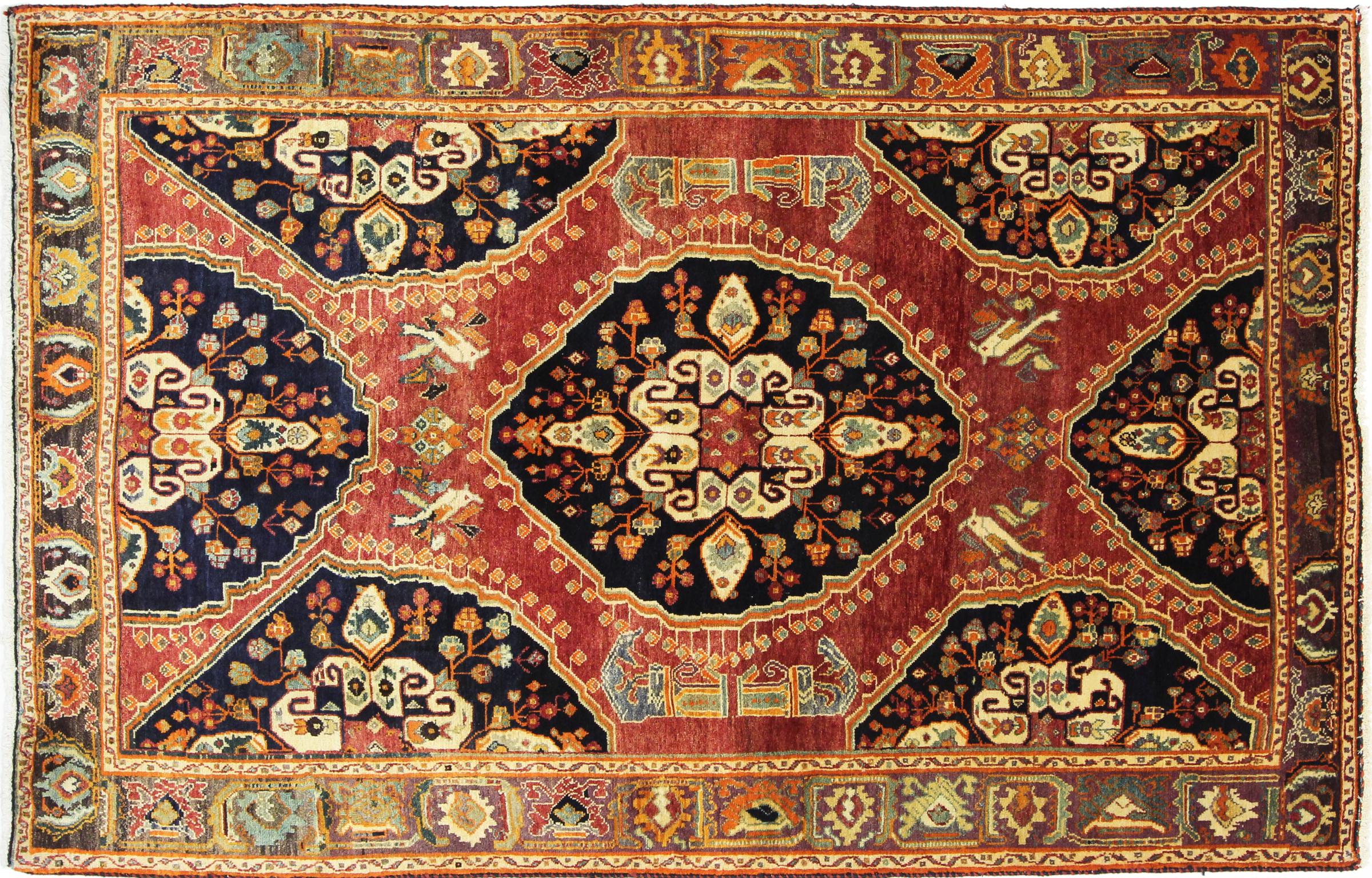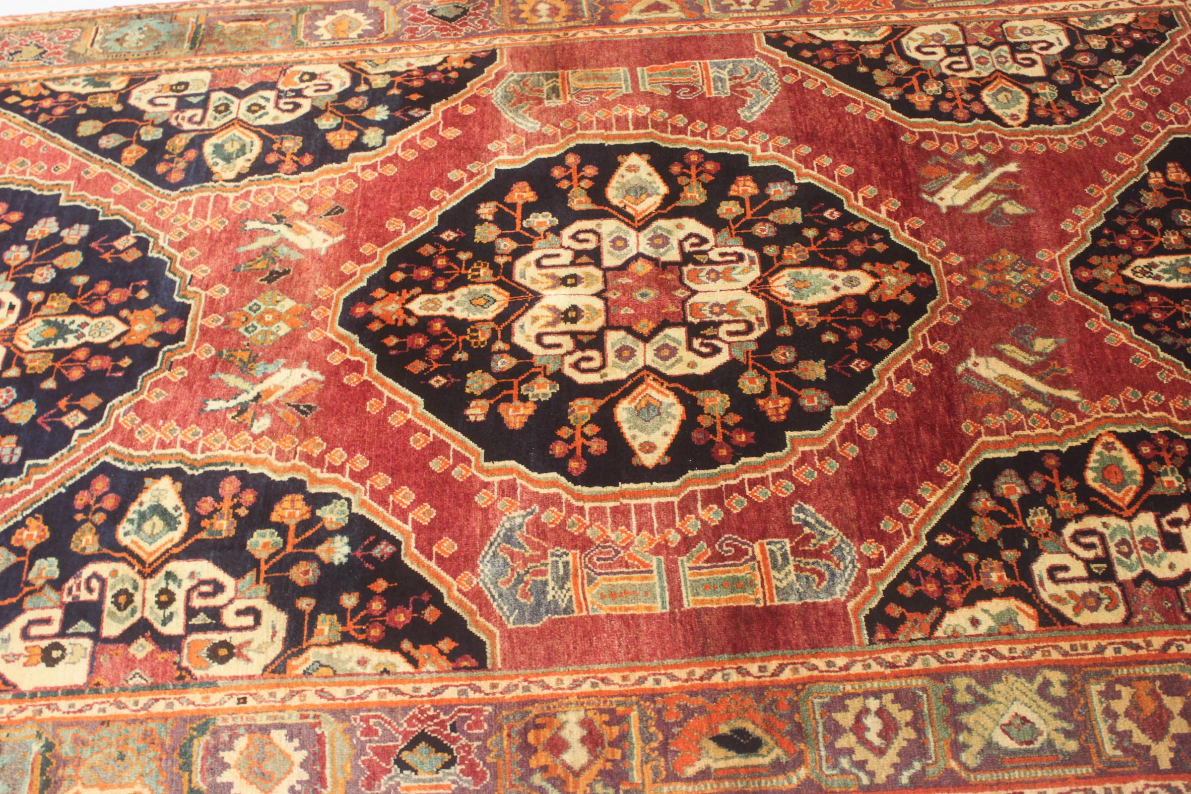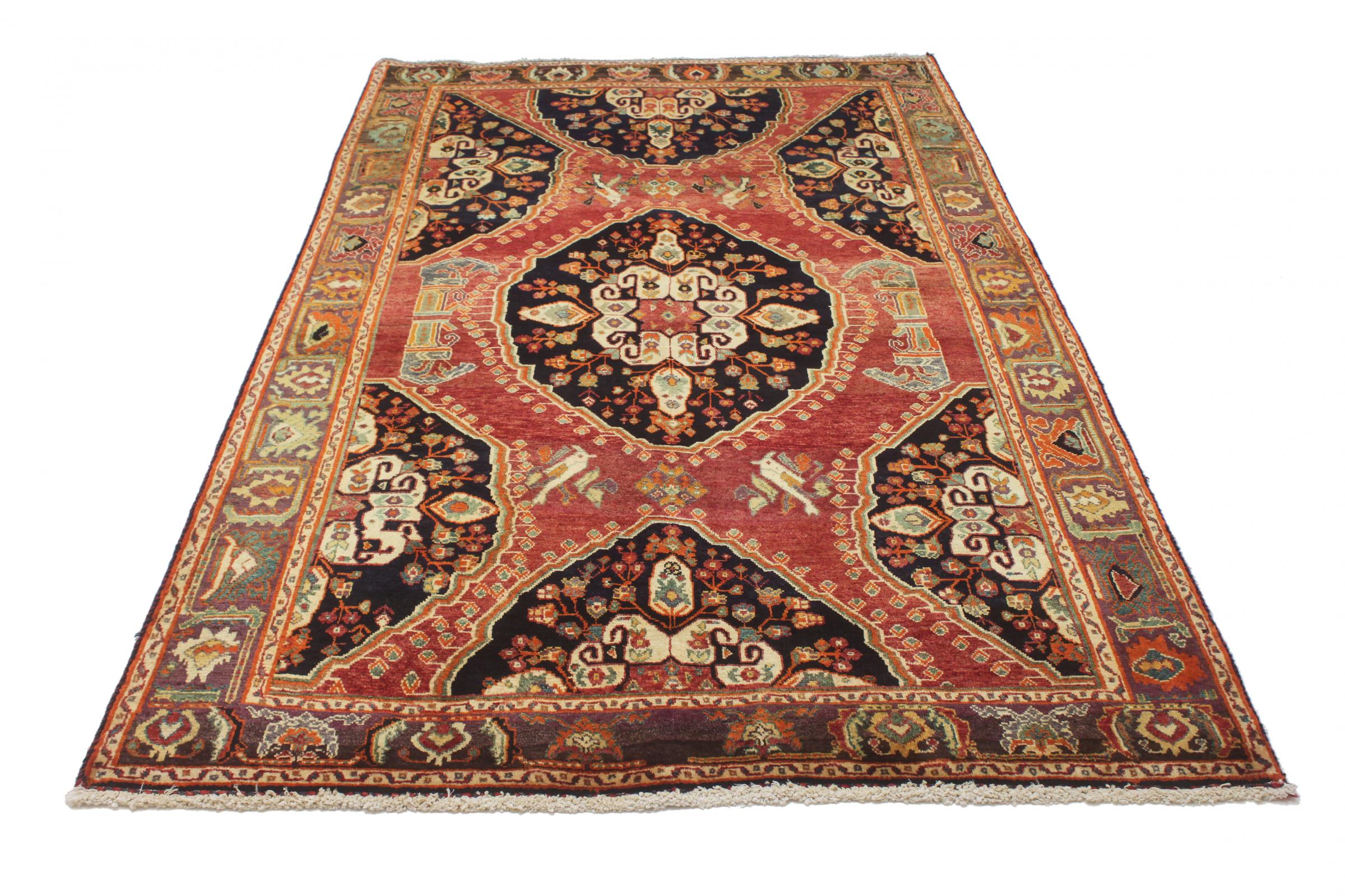 Dette tæppe hører til landsby- og nomadetæpper fra Iran, tidligere Persien. Denne type tæppe er håndknyttet i små byer og landsbyer i den gamle tradition. Nomader fremstiller også persiske tæpper under den åbne himmel. Tæpperne er knudt helt fra hovedet uden en skabelon. De er kendetegnet ved klassiske ornamenter, der er opstillet i lineære og geometriske mønstre. Takket være deres kulturelle og traditionelle oprindelse har disse tæpper en unik karakter, der udgør det gamle Persien.