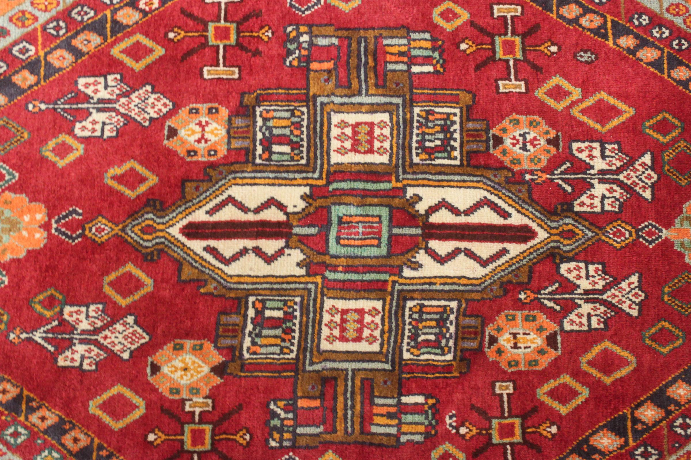 Denne Ghashghai er en blikfang. Dens farver og mønstre afspejler livet afGhaschghai nomaderne fra Iran, der bor hovedsageligt i nærheden af byen Shiraz. Lad et stykke af iransk kultur komme til dit eget hjem og overbevis dig selv af dens høje kvalitet.