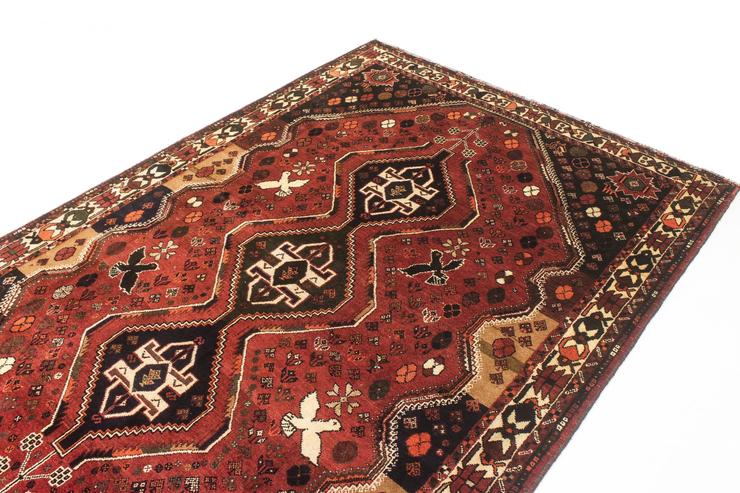 Denne Ghashghai er en blikfang. Dens farver og mønstre afspejler livet afGhaschghai nomaderne fra Iran, der bor hovedsageligt i nærheden af byen Shiraz. Lad et stykke af iransk kultur komme til dit eget hjem og overbevis dig selv af dens høje kvalitet.