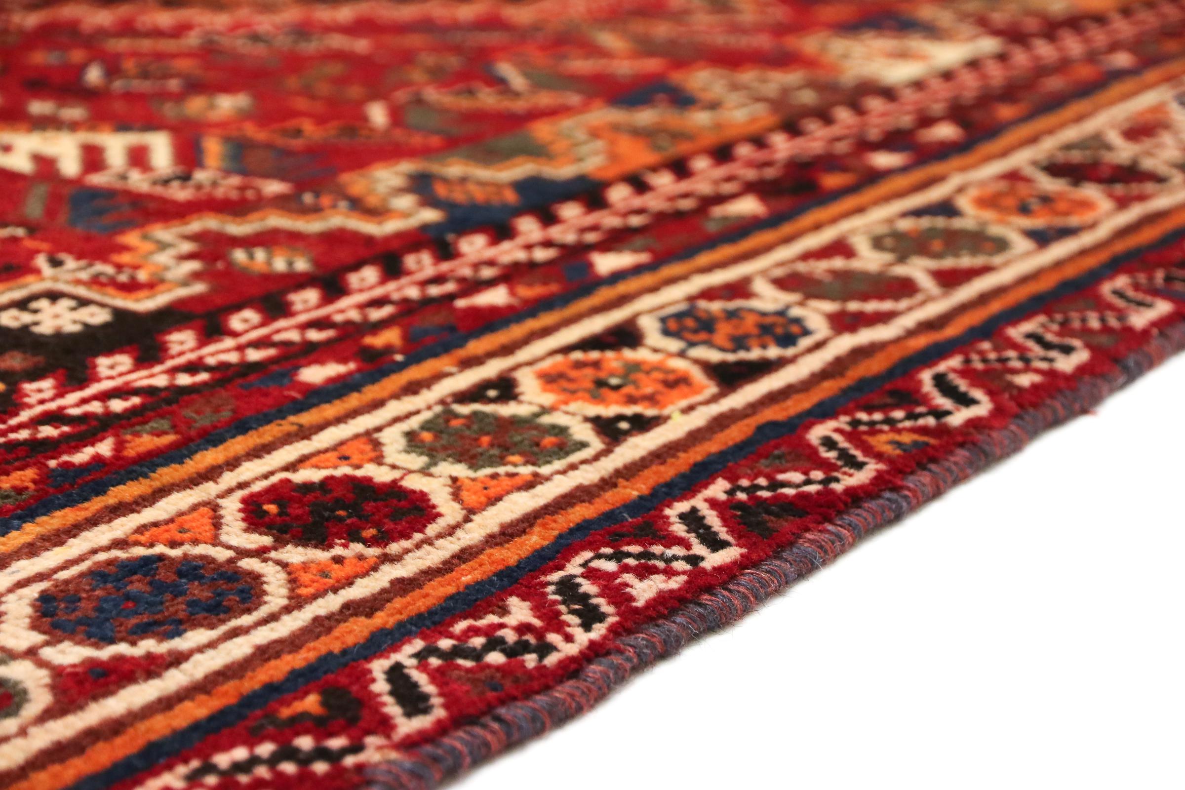 Denne Ghashghai er en blikfang. Dens farver og mønstre afspejler livet afGhaschghai nomaderne fra Iran, der bor hovedsageligt i nærheden af byen Shiraz. Lad et stykke af iransk kultur komme til dit eget hjem og overbevis dig selv af dens høje kvalitet.