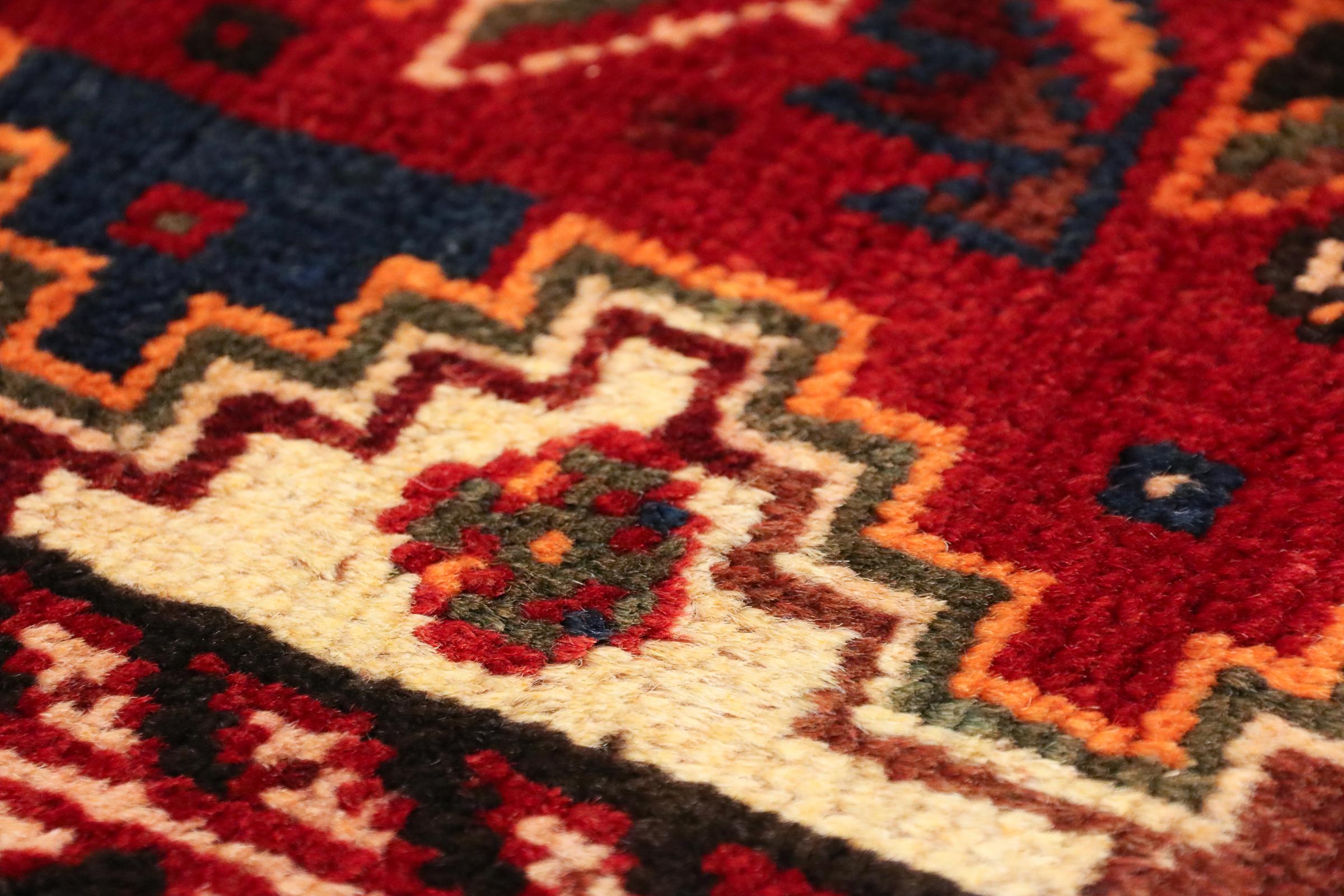 Dette tæppe hører til landsby- og nomadetæpper fra Iran, tidligere Persien. Denne type tæppe er håndknyttet i små byer og landsbyer i den gamle tradition. Nomader fremstiller også persiske tæpper under den åbne himmel. Tæpperne er knudt helt fra hovedet uden en skabelon. De er kendetegnet ved klassiske ornamenter, der er opstillet i lineære og geometriske mønstre. Takket være deres kulturelle og traditionelle oprindelse har disse tæpper en unik karakter, der udgør det gamle Persien.