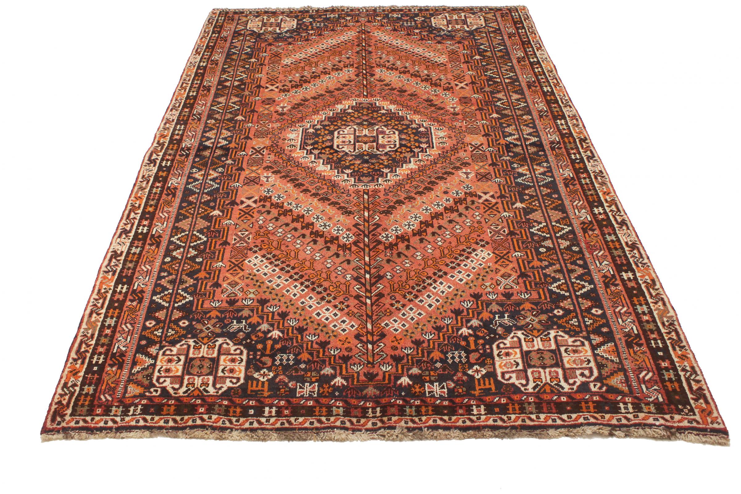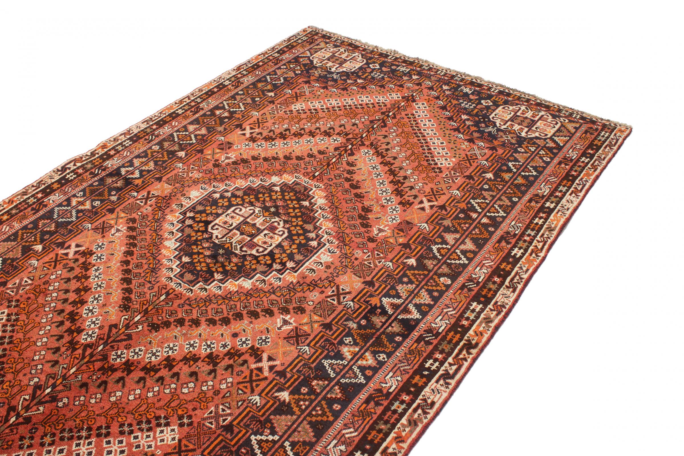 Denne Ghashghai er en blikfang. Dens farver og mønstre afspejler livet afGhaschghai nomaderne fra Iran, der bor hovedsageligt i nærheden af byen Shiraz. Lad et stykke af iransk kultur komme til dit eget hjem og overbevis dig selv af dens høje kvalitet.
