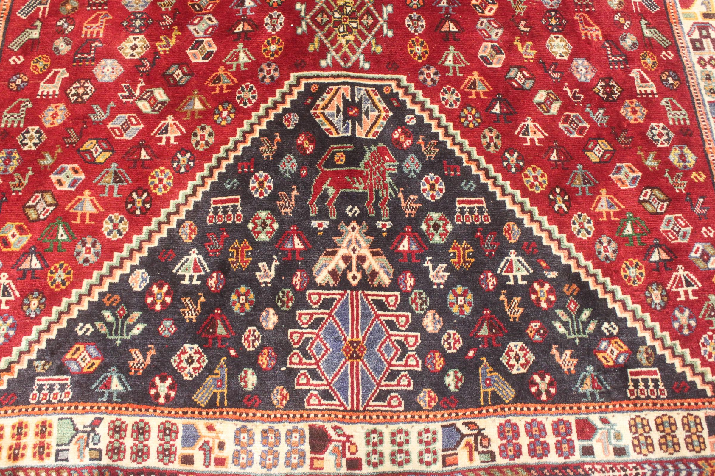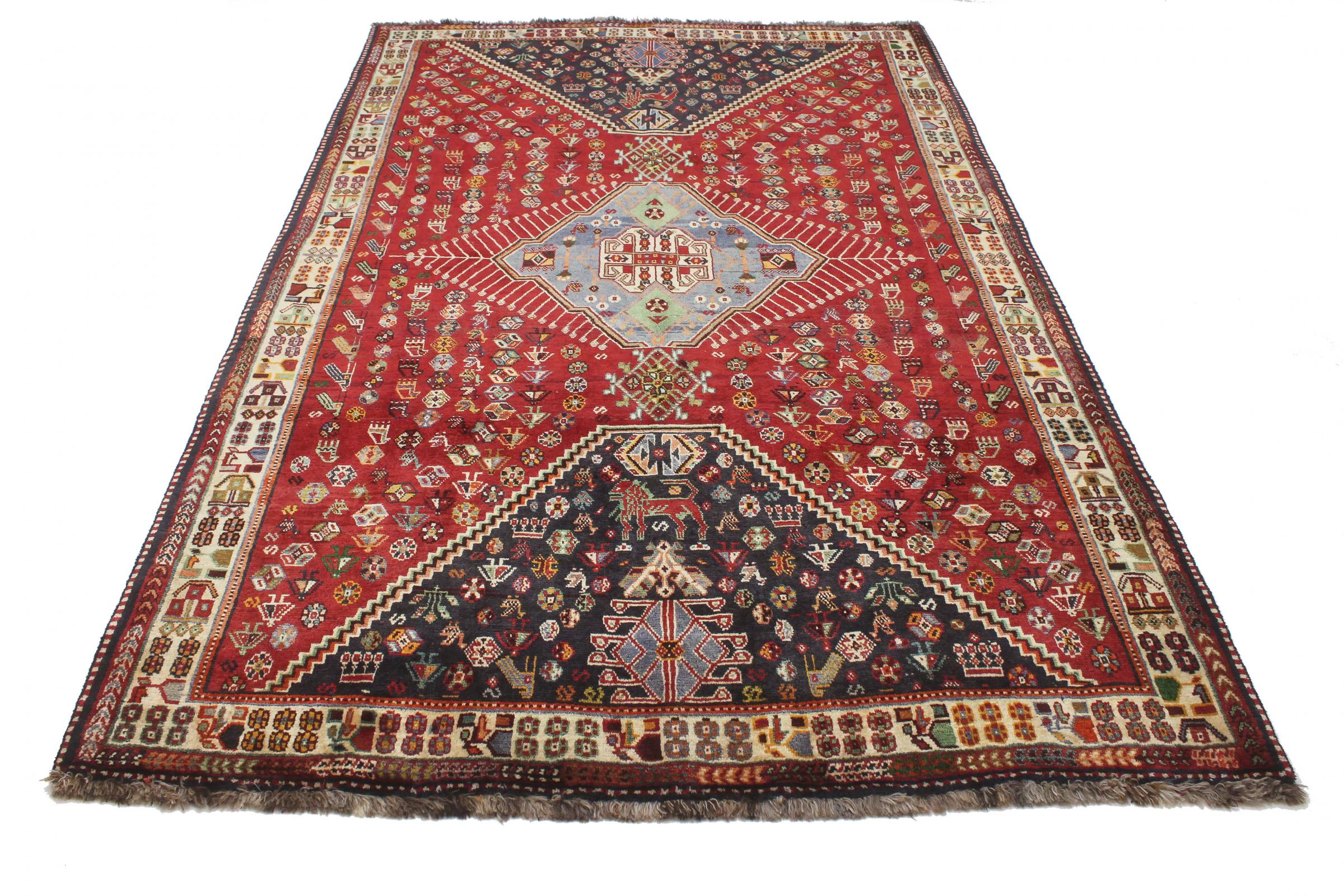 Denne Ghashghai er en blikfang. Dens farver og mønstre afspejler livet afGhaschghai nomaderne fra Iran, der bor hovedsageligt i nærheden af byen Shiraz. Lad et stykke af iransk kultur komme til dit eget hjem og overbevis dig selv af dens høje kvalitet.