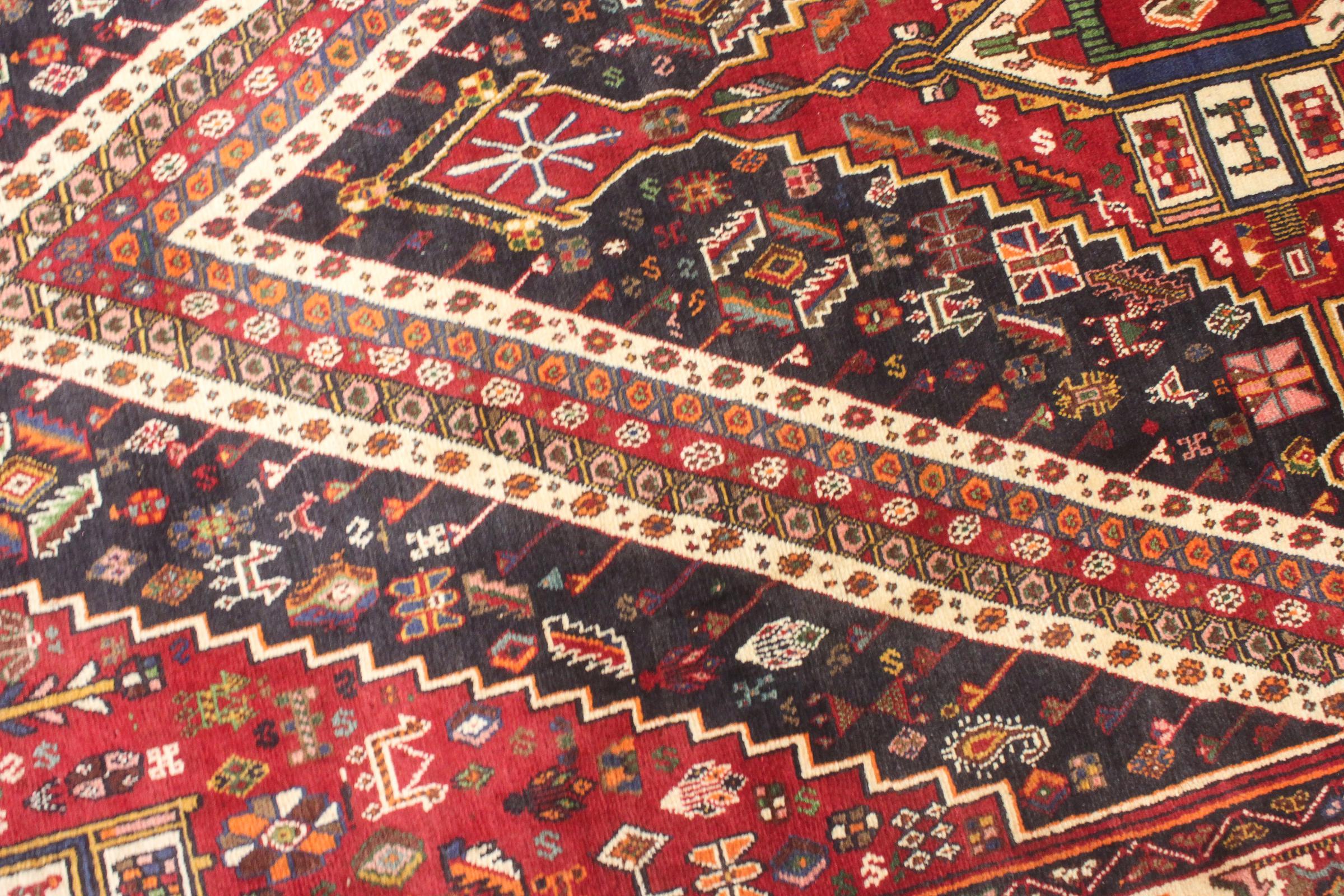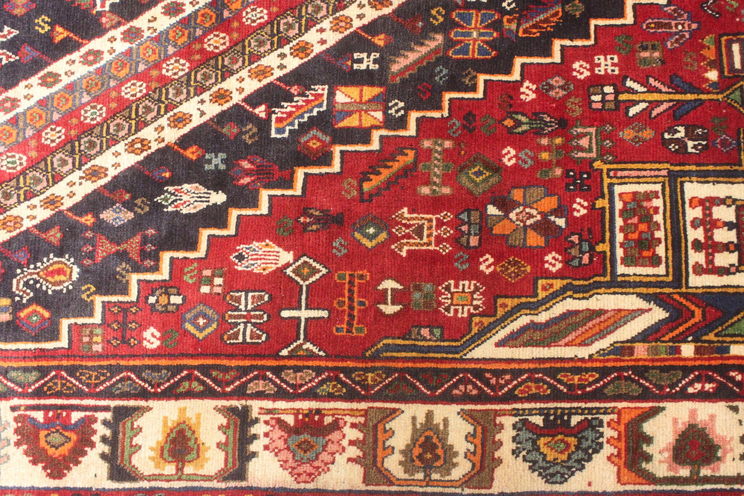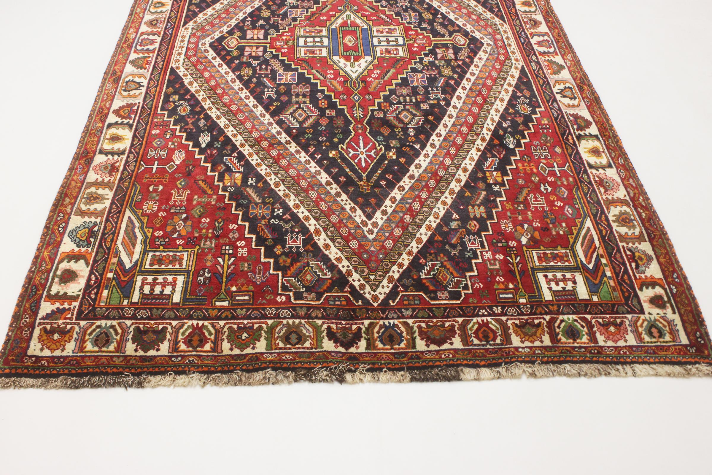 Denne Ghashghai er en blikfang. Dens farver og mønstre afspejler livet afGhaschghai nomaderne fra Iran, der bor hovedsageligt i nærheden af byen Shiraz. Lad et stykke af iransk kultur komme til dit eget hjem og overbevis dig selv af dens høje kvalitet.