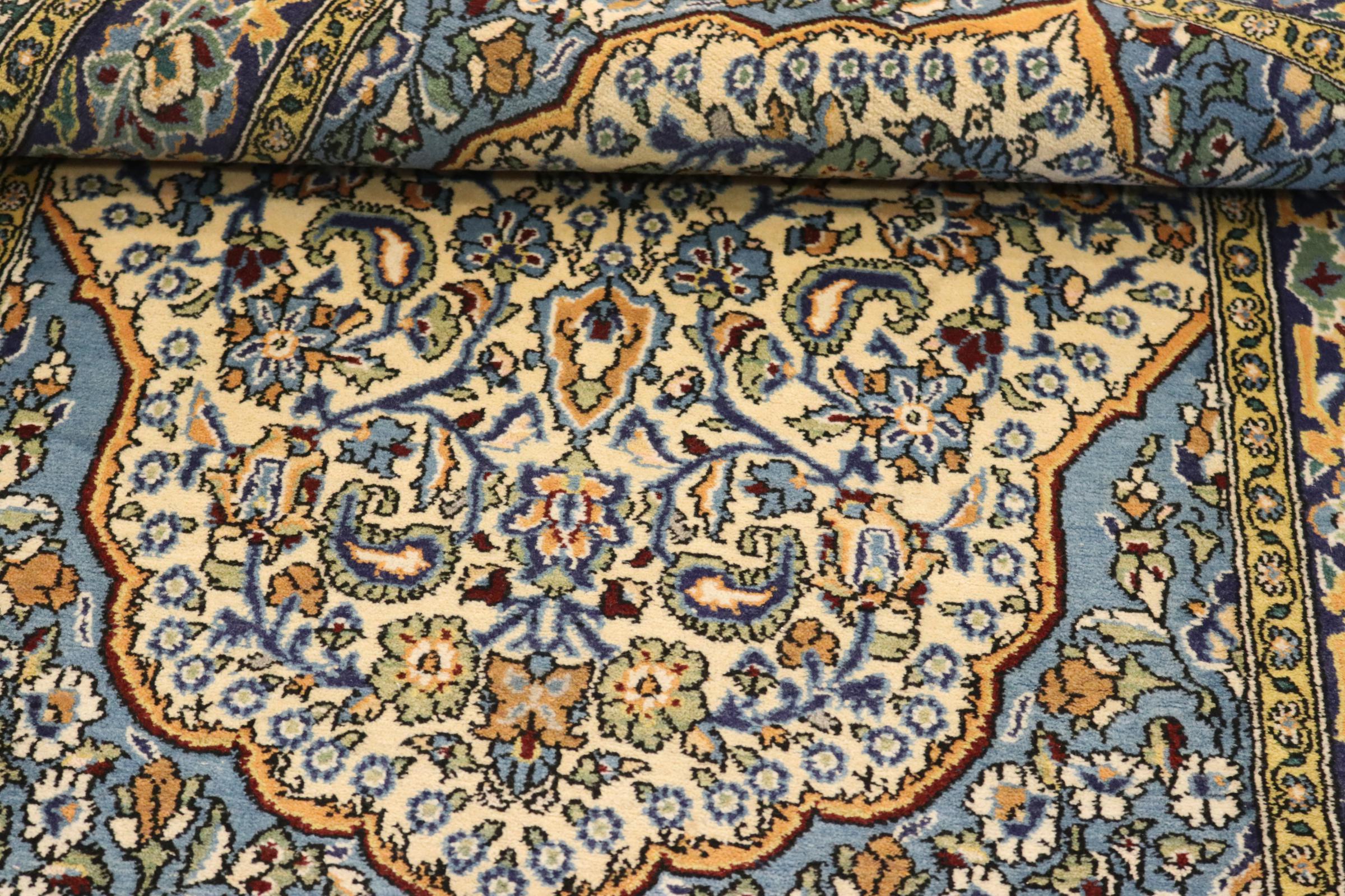 Denne Ghom-kork er ægte håndværkskunst. Dens fine ”flor” og kæden overbeviser enhver tæppe eksperte. Denne persisk tæppe blev lavet i den hellige by Ghom af det fineste kork uld. Takket være mønstret og design at hjertet slår hurtigere. Ingen persisk tæppe kan være smukkere.