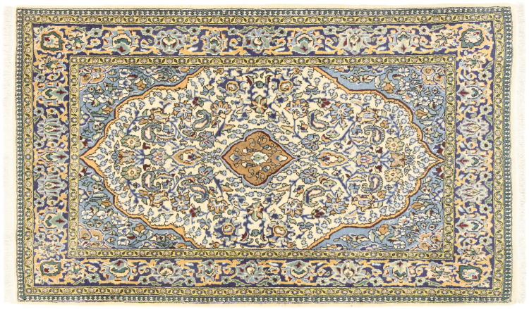 Dette tæppe kommer fra Iran (tidligere Persien) og er sandsynligvis det højeste ry blandt alle håndknyttede tæpper som persisk tæppe. Ingen region ser tilbage på en sammenlignelig lang tradition inden for vævning af tæpper end Iran. Sådan kommer de fineste og mest detaljerede tæpper her. Den persiske knudees robusthed, holdbarhed og kvalitet er uovertruffen i dag. Persiske tæpper er normalt opkaldt efter din oprindelsesregion. Så både et Nain, et Ghom og et Isfahan-tæppe kommer fra byen med samme navn i Iran.