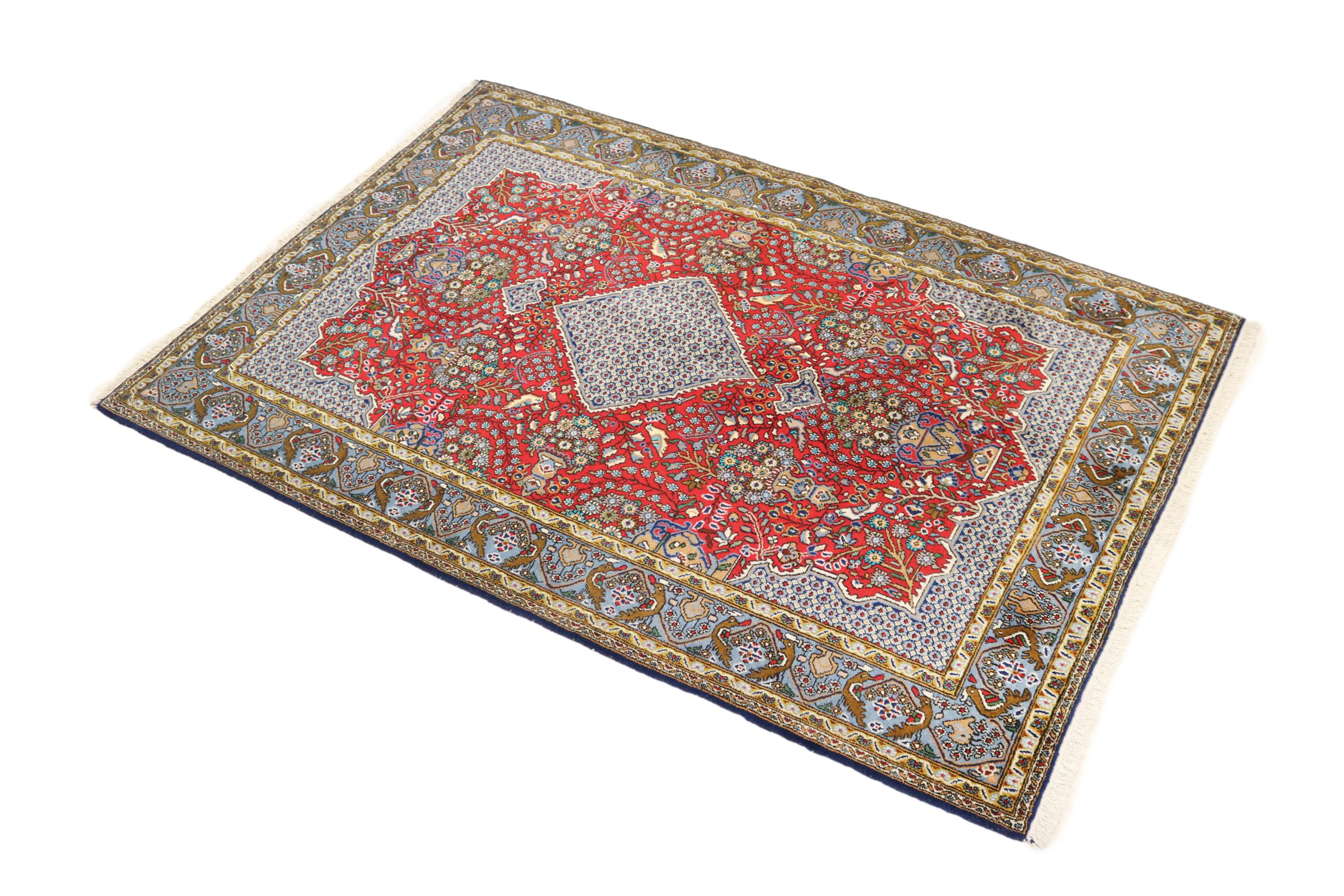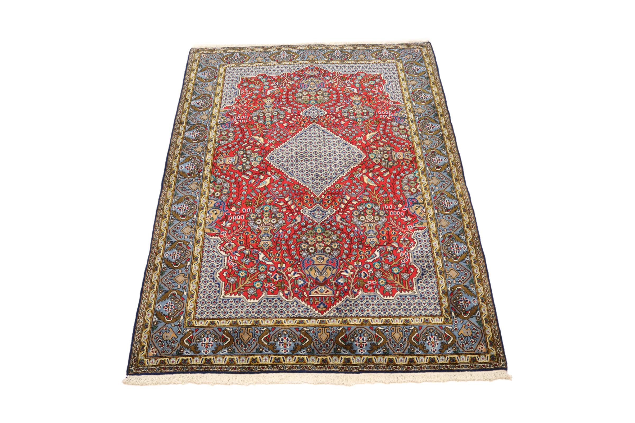 Dette tæppe kommer fra Iran (tidligere Persien) og er sandsynligvis det højeste ry blandt alle håndknyttede tæpper som persisk tæppe. Ingen region ser tilbage på en sammenlignelig lang tradition inden for vævning af tæpper end Iran. Sådan kommer de fineste og mest detaljerede tæpper her. Den persiske knudees robusthed, holdbarhed og kvalitet er uovertruffen i dag. Persiske tæpper er normalt opkaldt efter din oprindelsesregion. Så både et Nain, et Ghom og et Isfahan-tæppe kommer fra byen med samme navn i Iran.