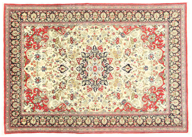 Dette tæppe kommer fra Iran (tidligere Persien) og er sandsynligvis det højeste ry blandt alle håndknyttede tæpper som persisk tæppe. Ingen region ser tilbage på en sammenlignelig lang tradition inden for vævning af tæpper end Iran. Sådan kommer de fineste og mest detaljerede tæpper her. Den persiske knudees robusthed, holdbarhed og kvalitet er uovertruffen i dag. Persiske tæpper er normalt opkaldt efter din oprindelsesregion. Så både et Nain, et Ghom og et Isfahan-tæppe kommer fra byen med samme navn i Iran.