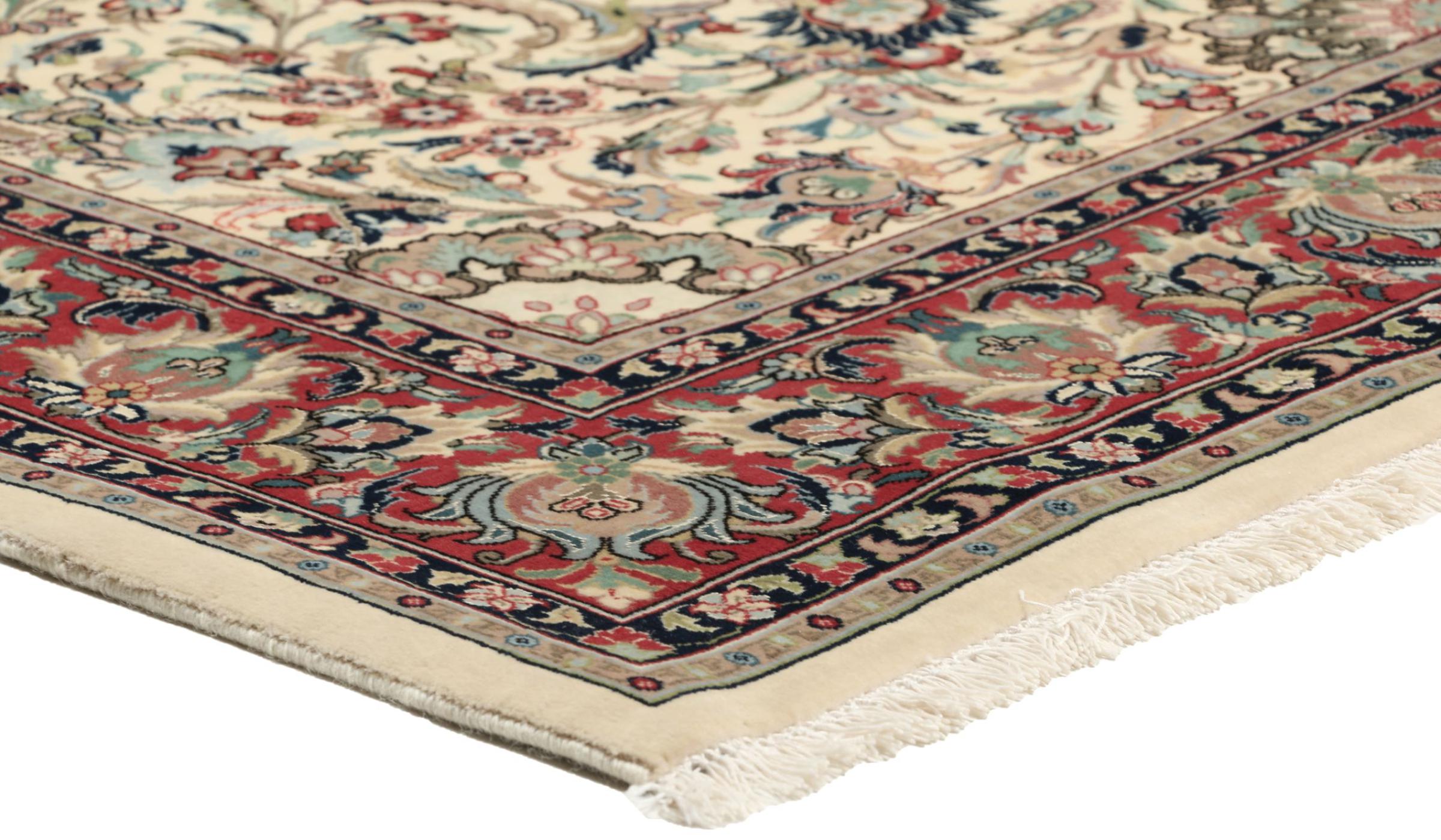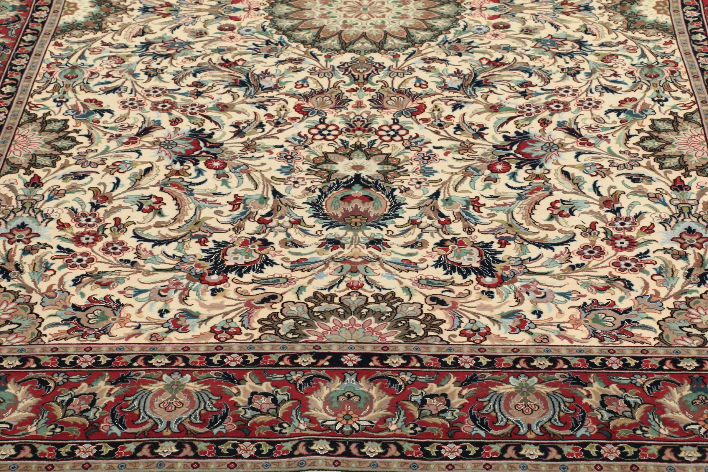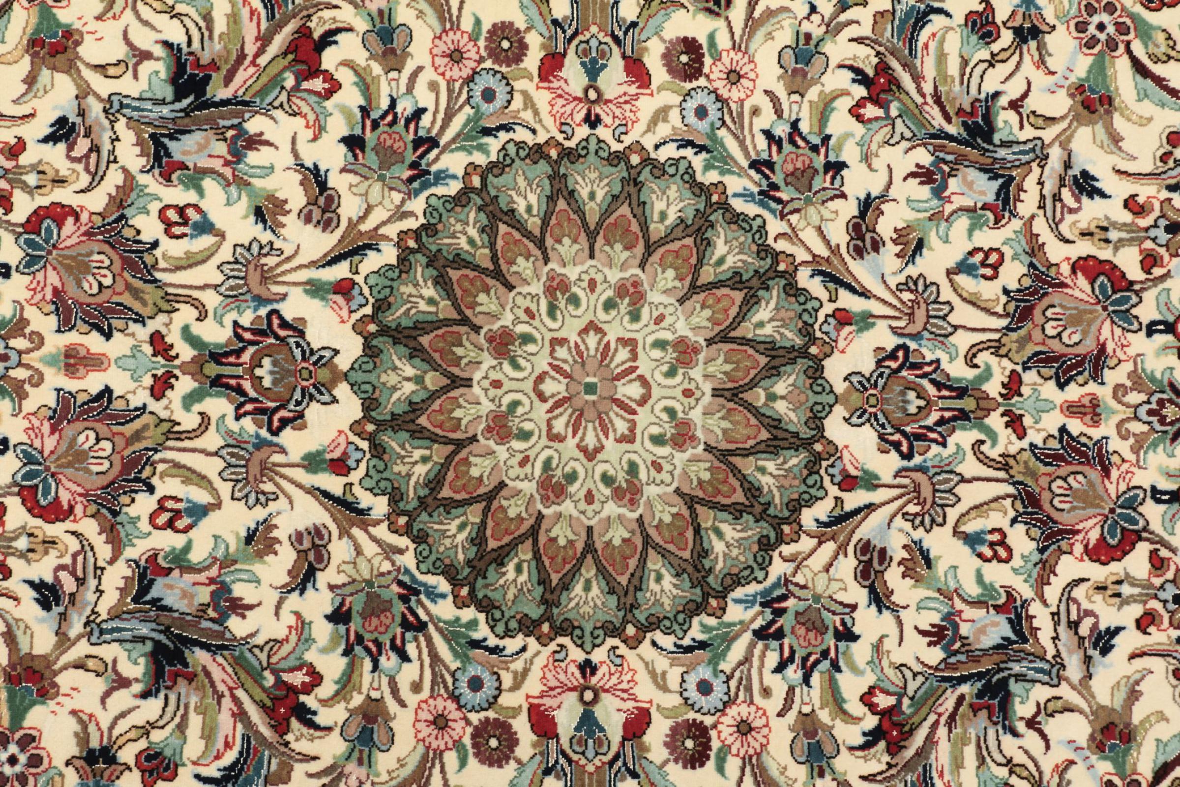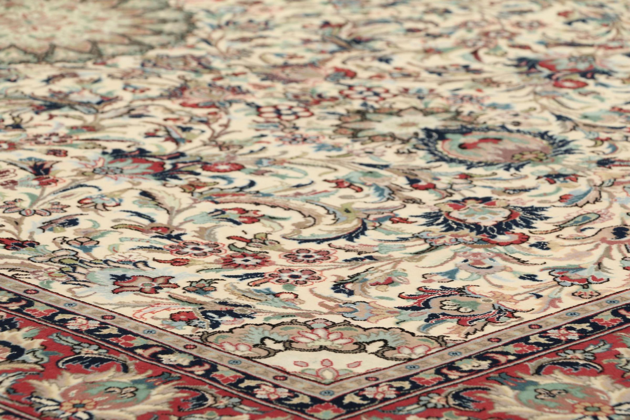 Denne Ghom-kork er ægte håndværkskunst. Dens fine ”flor” og kæden overbeviser enhver tæppe eksperte. Denne persisk tæppe blev lavet i den hellige by Ghom af det fineste kork uld. Takket være mønstret og design at hjertet slår hurtigere. Ingen persisk tæppe kan være smukkere.