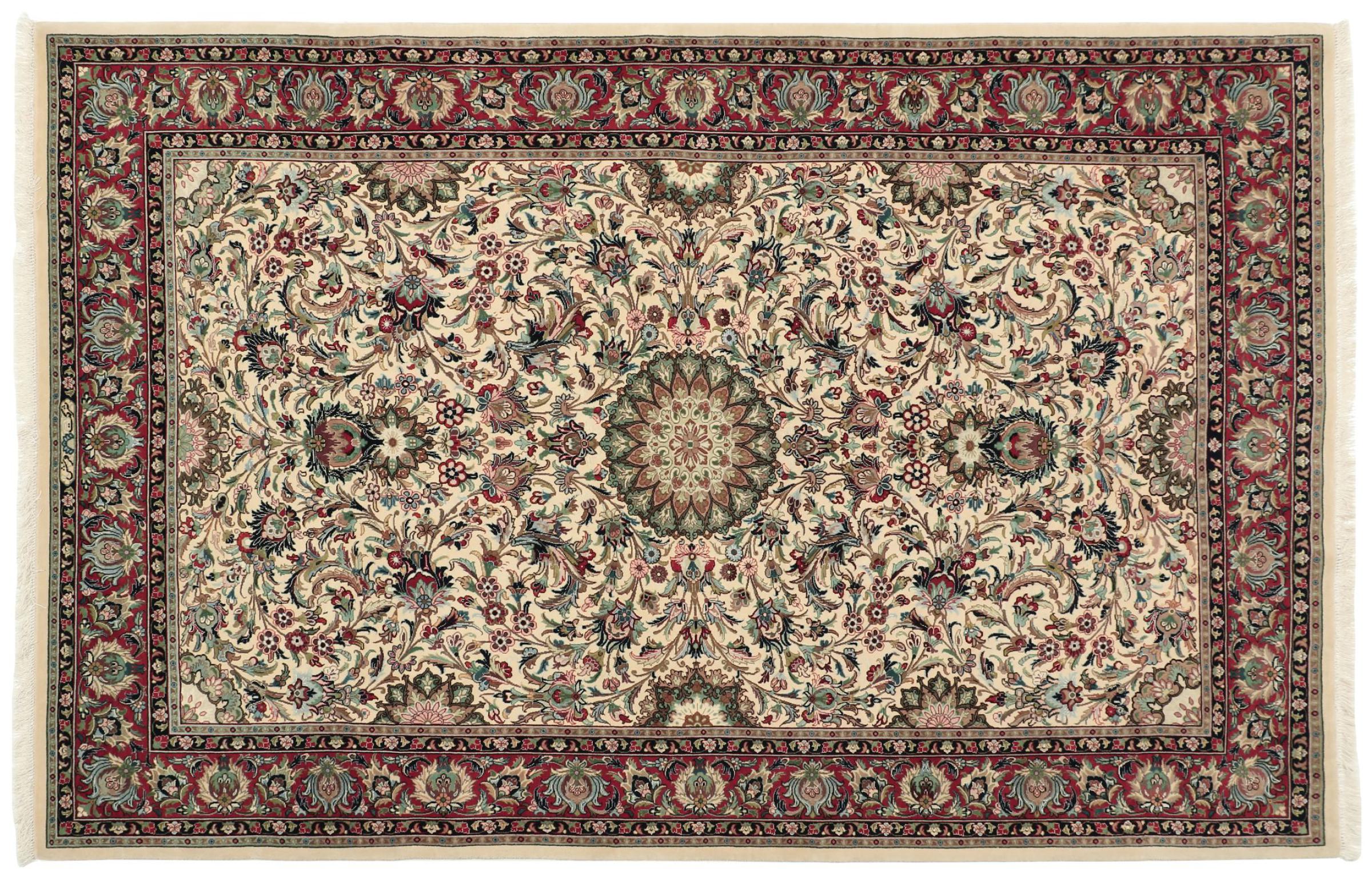 Dette tæppe kommer fra Iran (tidligere Persien) og er sandsynligvis det højeste ry blandt alle håndknyttede tæpper som persisk tæppe. Ingen region ser tilbage på en sammenlignelig lang tradition inden for vævning af tæpper end Iran. Sådan kommer de fineste og mest detaljerede tæpper her. Den persiske knudees robusthed, holdbarhed og kvalitet er uovertruffen i dag. Persiske tæpper er normalt opkaldt efter din oprindelsesregion. Så både et Nain, et Ghom og et Isfahan-tæppe kommer fra byen med samme navn i Iran.