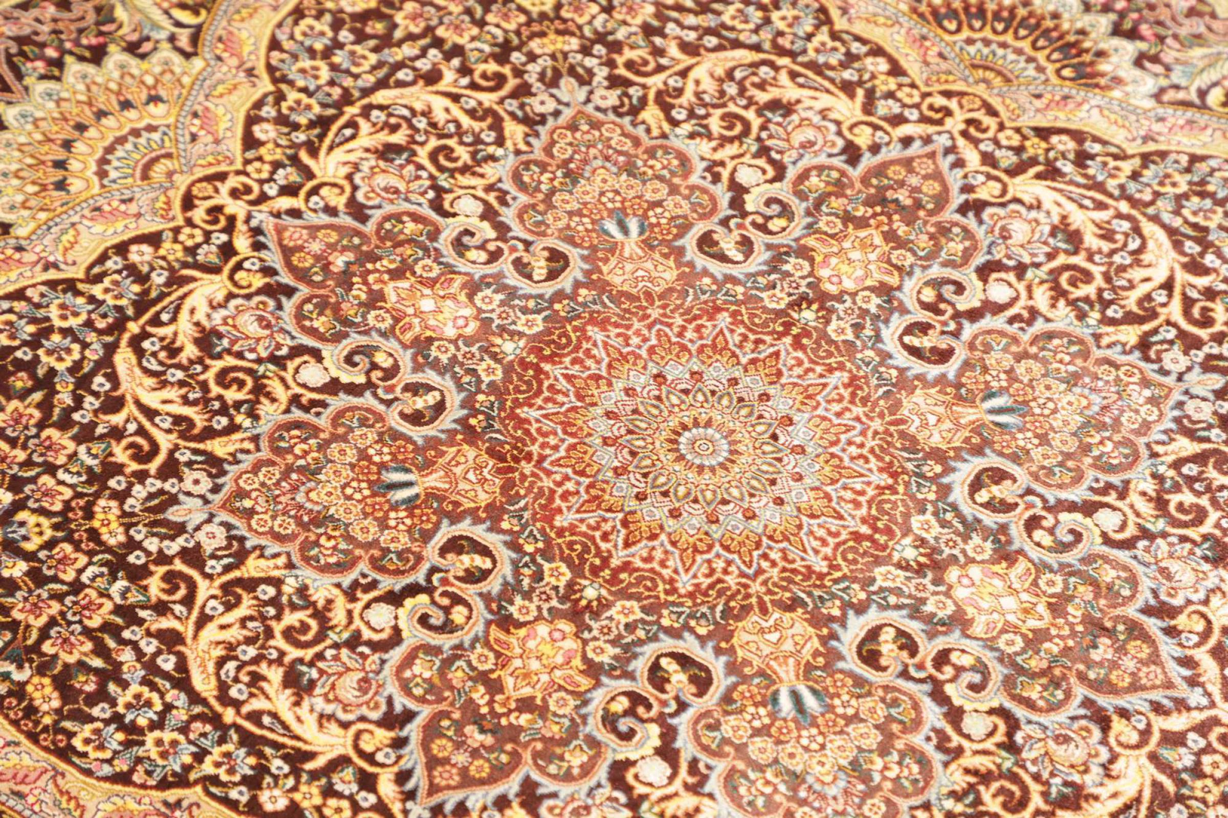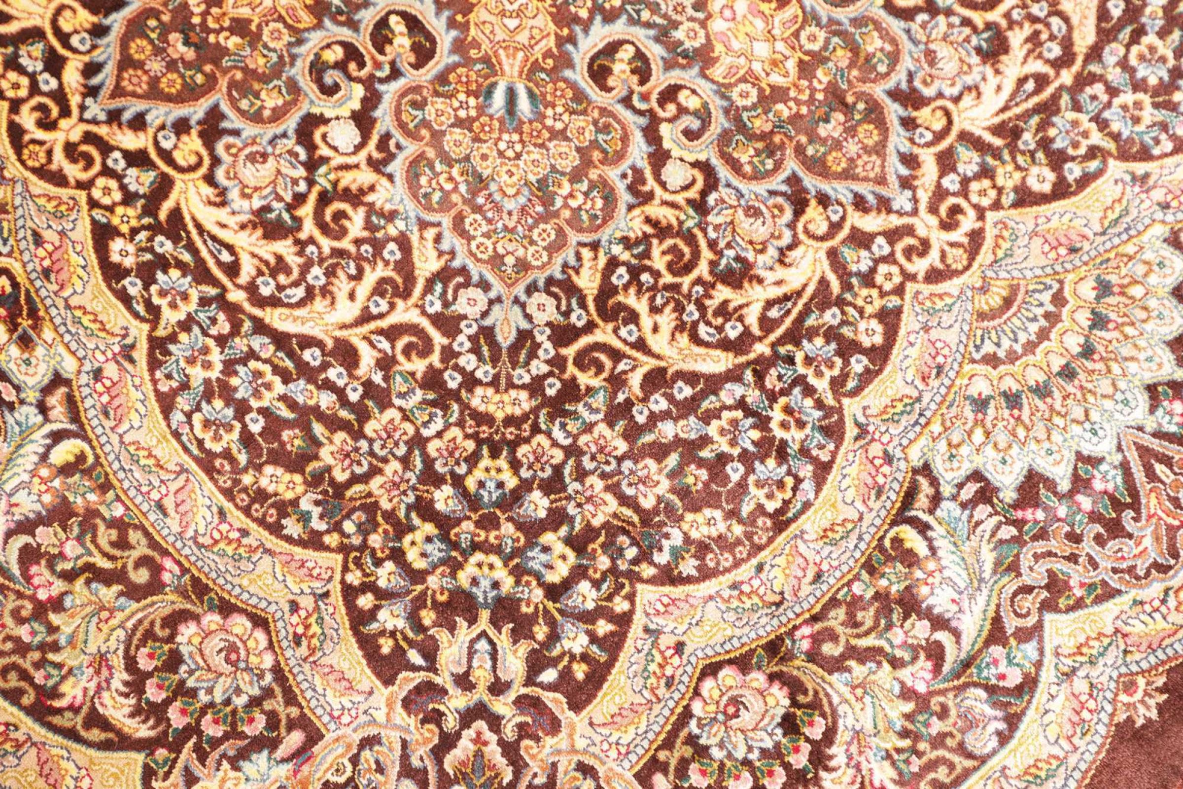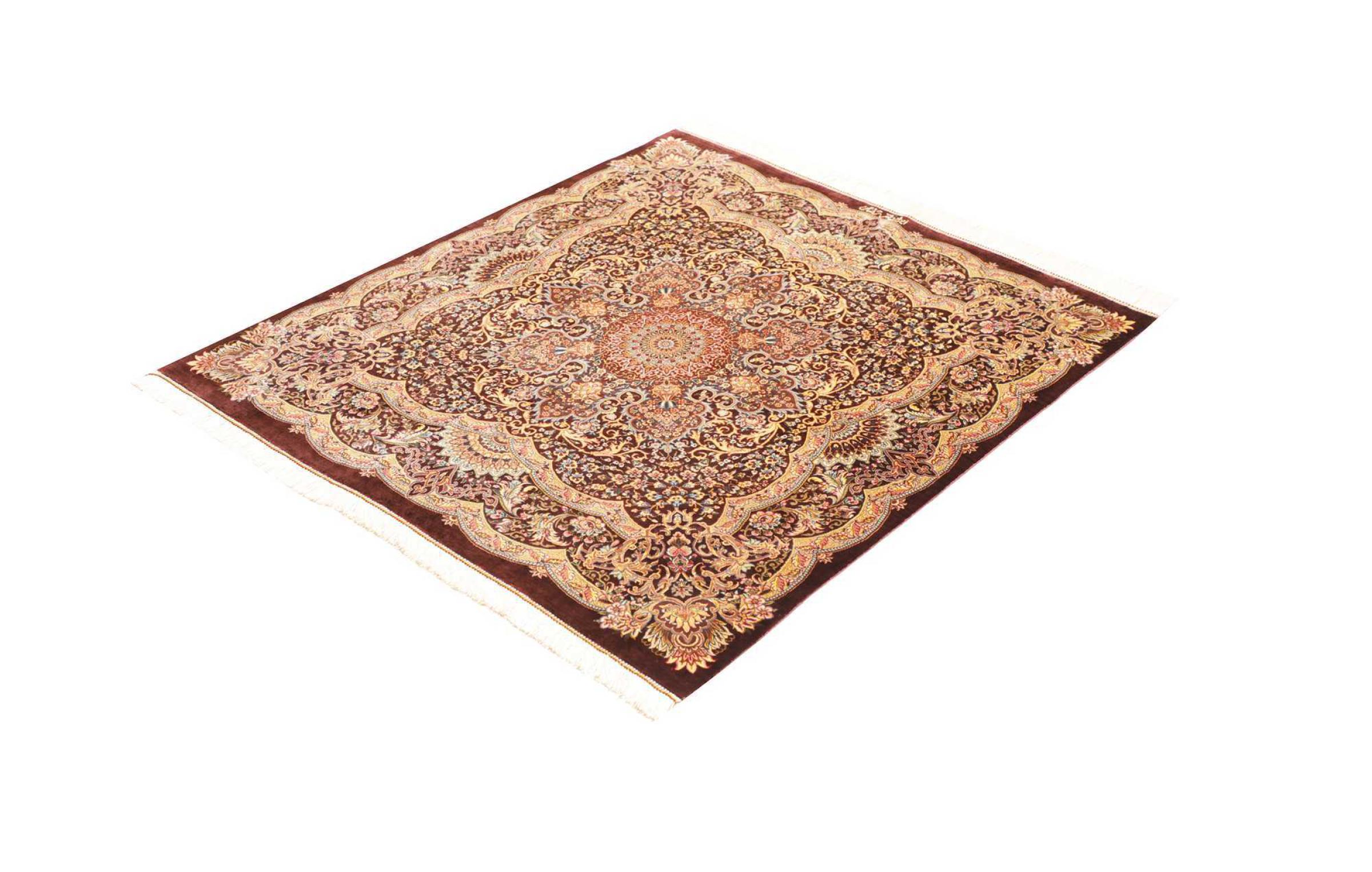 Tæppe-nr.: 252800006953323 Størrelse: 109x97 cm Tykkelse: ca. 3 mm Knuder: 1 000 000 / m² Forarbejdelse: Knyttet i hånden Luv: Silke Kæde: Silke Oprindelse: Persien / Iran Alder: Ny Vægt: ca. 2 kg Antal på lager: Unik - Kun 1 tilbage på lager