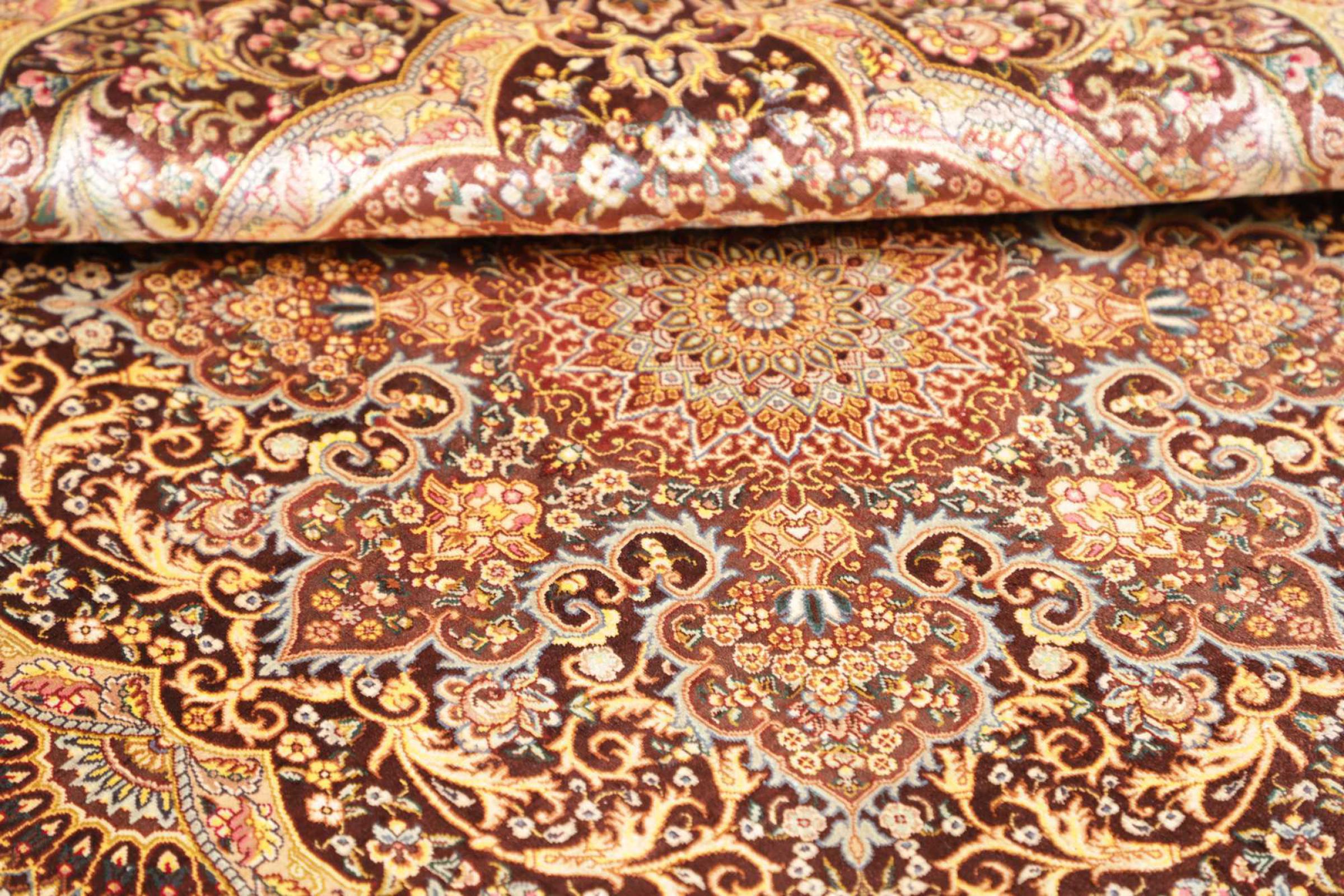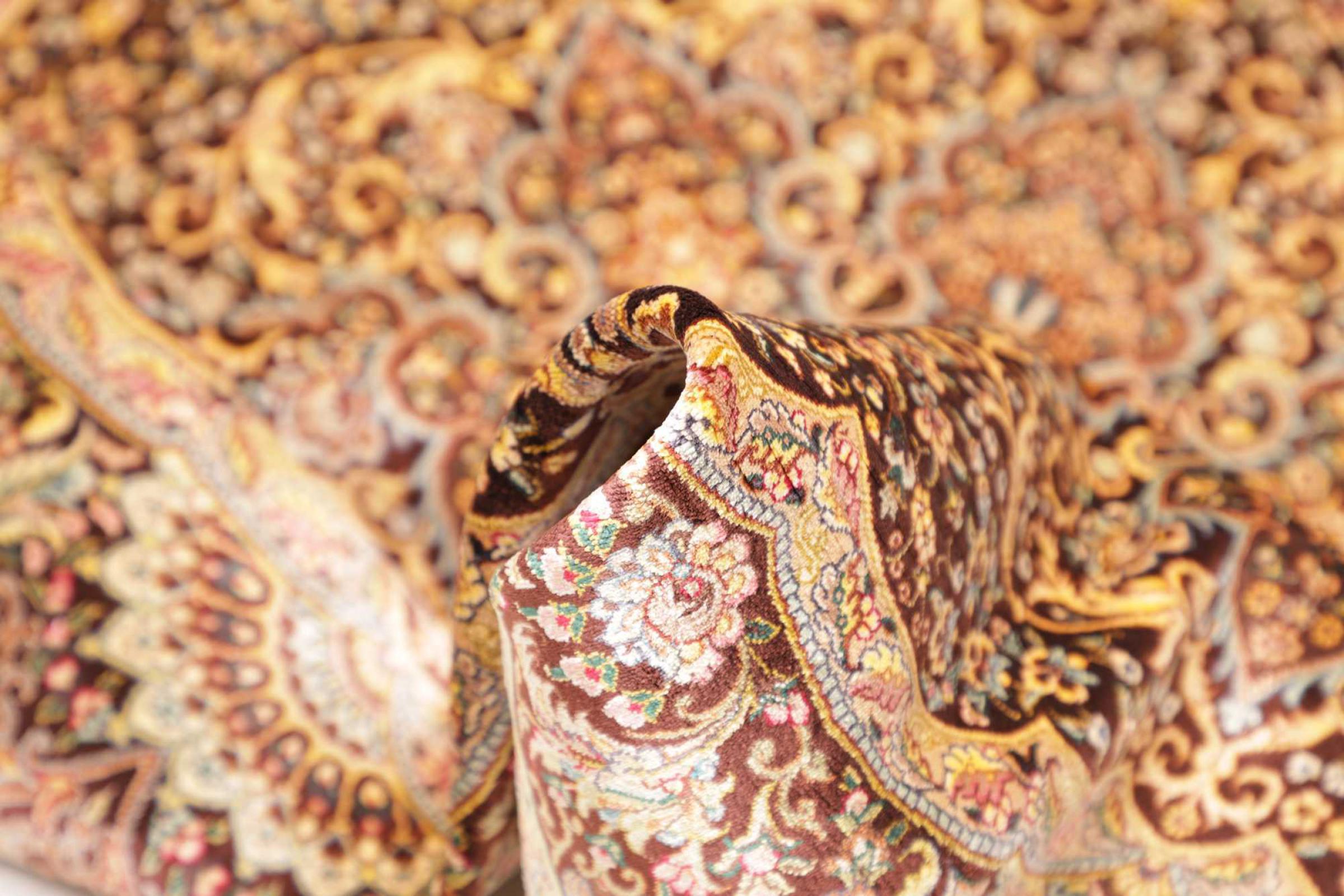 Dette Qum silketæppe er den rene luksus. Mønster og naturlige silke taler for sig selv. Orienten i perfektion til dit hjem. En silke tæppe fra Ghom opfylder endda ønsker fra elskere af den persisk tæppe kunst. Denne persisk tæppe er en blikfang og vil blive vist i ny pragt "hans" værelse.