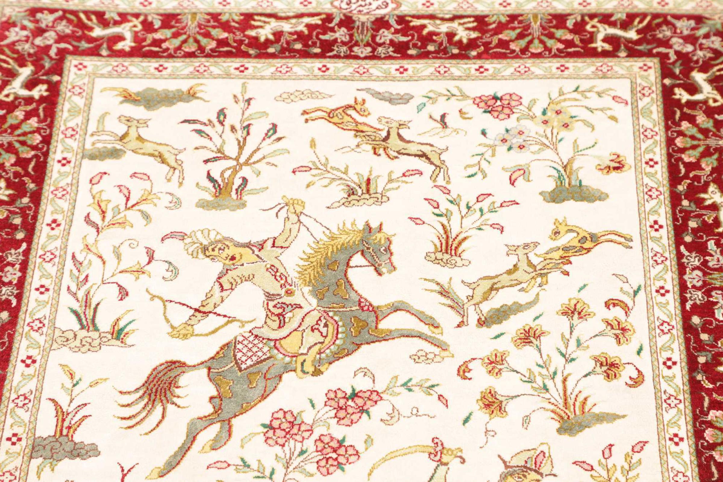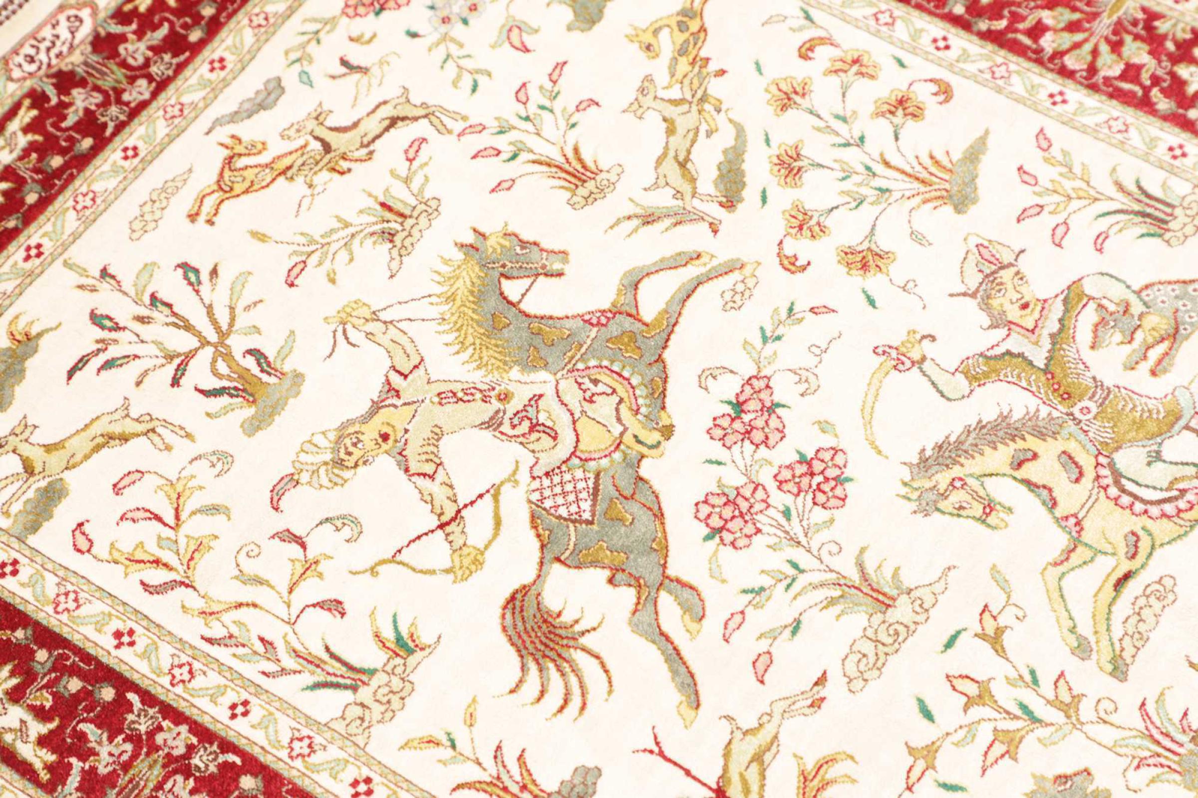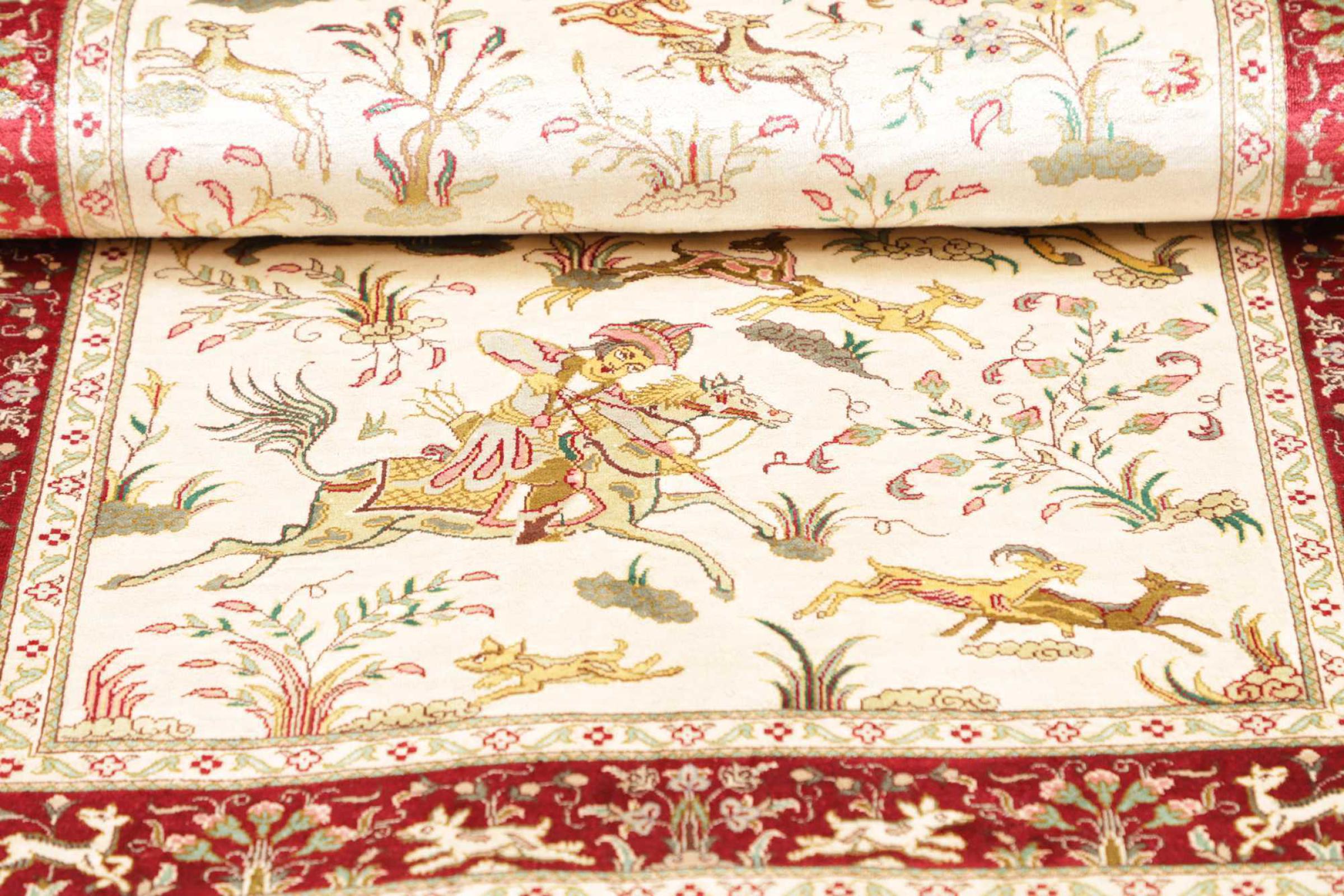 Dette Qum silketæppe er den rene luksus. Mønster og naturlige silke taler for sig selv. Orienten i perfektion til dit hjem. En silke tæppe fra Ghom opfylder endda ønsker fra elskere af den persisk tæppe kunst. Denne persisk tæppe er en blikfang og vil blive vist i ny pragt "hans" værelse.