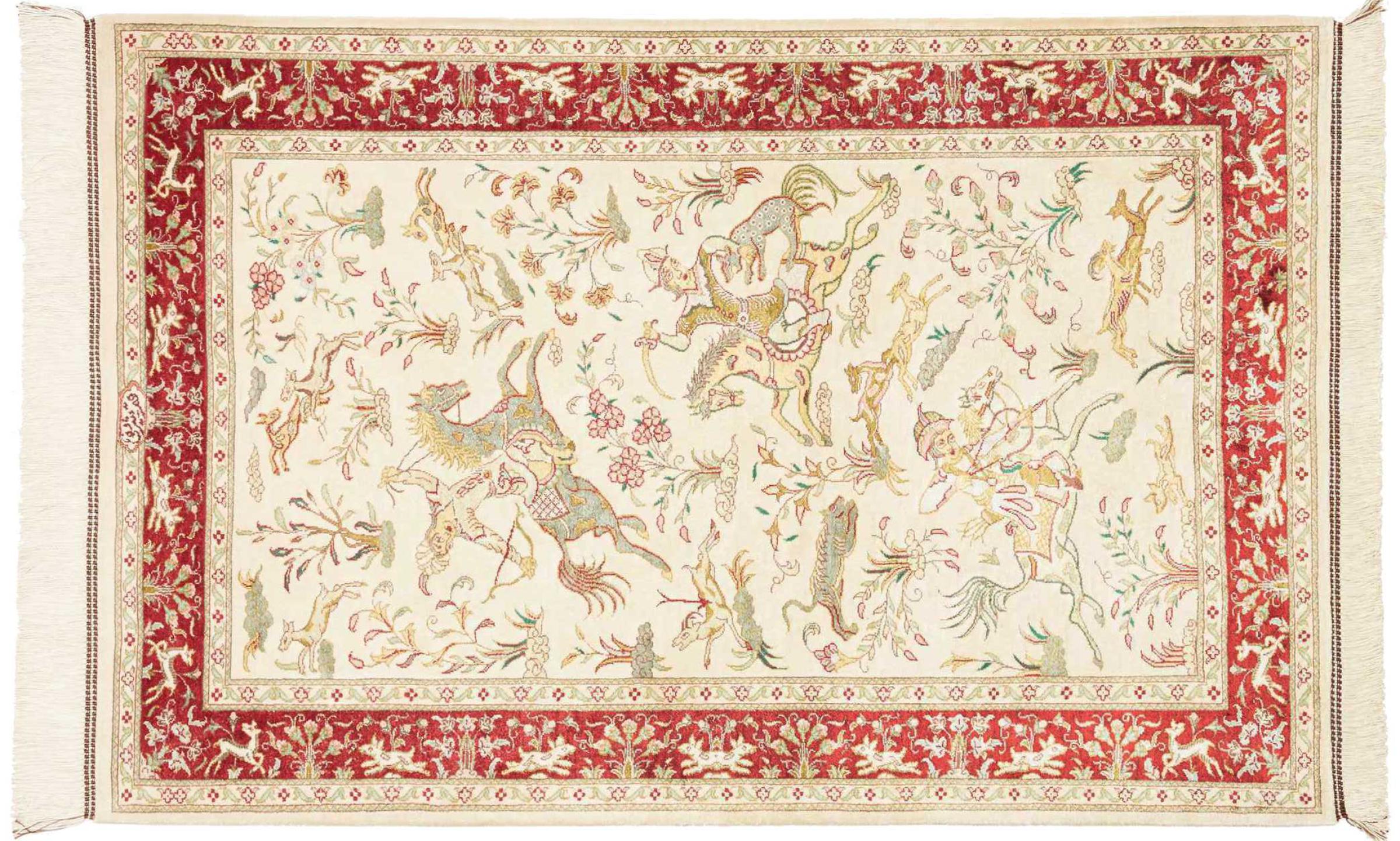 Dette tæppe kommer fra Iran (tidligere Persien) og er sandsynligvis det højeste ry blandt alle håndknyttede tæpper som persisk tæppe. Ingen region ser tilbage på en sammenlignelig lang tradition inden for vævning af tæpper end Iran. Sådan kommer de fineste og mest detaljerede tæpper her. Den persiske knudees robusthed, holdbarhed og kvalitet er uovertruffen i dag. Persiske tæpper er normalt opkaldt efter din oprindelsesregion. Så både et Nain, et Ghom og et Isfahan-tæppe kommer fra byen med samme navn i Iran.
