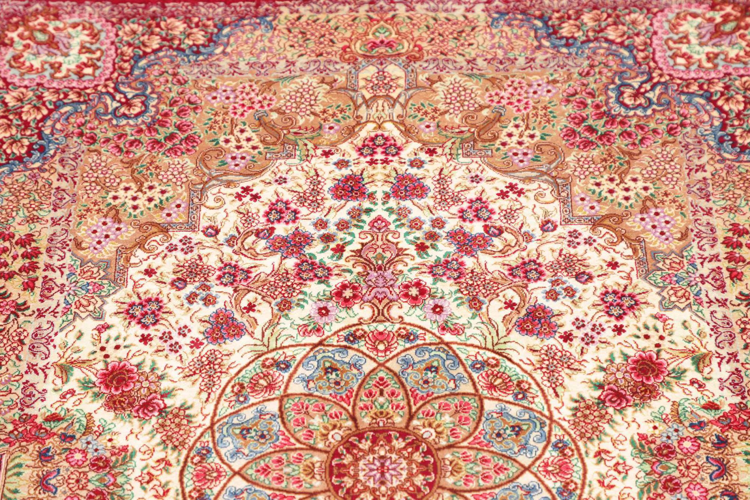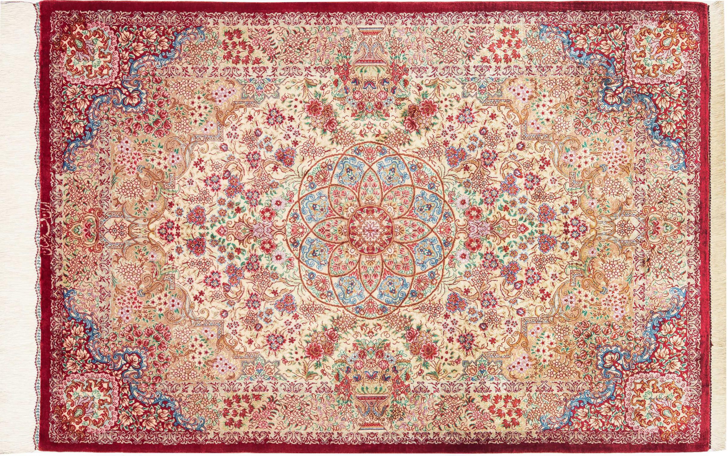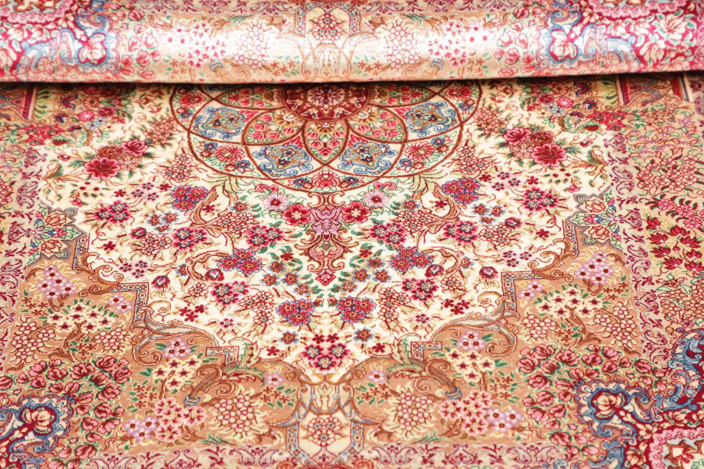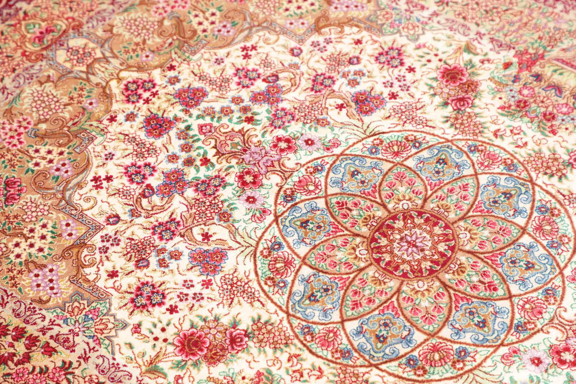 Dette Qum silketæppe er den rene luksus. Mønster og naturlige silke taler for sig selv. Orienten i perfektion til dit hjem. En silke tæppe fra Ghom opfylder endda ønsker fra elskere af den persisk tæppe kunst. Denne persisk tæppe er en blikfang og vil blive vist i ny pragt "hans" værelse.