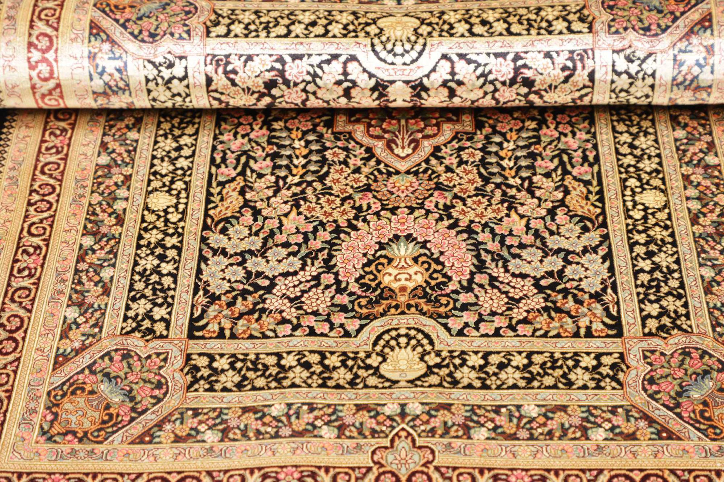 Dette Qum silketæppe er den rene luksus. Mønster og naturlige silke taler for sig selv. Orienten i perfektion til dit hjem. En silke tæppe fra Ghom opfylder endda ønsker fra elskere af den persisk tæppe kunst. Denne persisk tæppe er en blikfang og vil blive vist i ny pragt "hans" værelse.