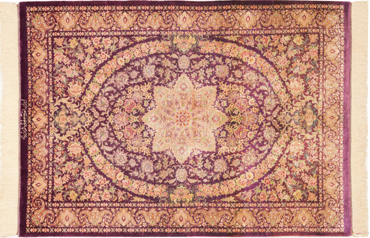 Tæppe-nr.: 247300001569504 Størrelse: 118x79 cm Tykkelse: ca. 3 mm Knuder: 1 000 000 / m² Forarbejdelse: Knyttet i hånden Luv: Silke Kæde: Silke Oprindelse: Persien / Iran Alder: Ny Vægt: ca. 2 kg Antal på lager: Unik - Kun 1 tilbage på lager